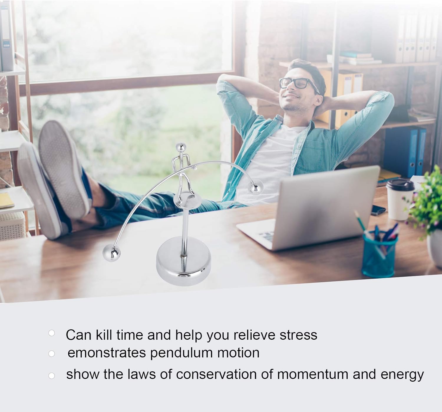 [ROTAZIONE LISCIA A 360°] Spingi delicatamente il sollevatore di pesi e guardalo eseguire un'affascinante rotazione di 360° sulla staffa centrale. Grazie all'aria e all'attrito, questo equilibrio dinamico continua a muoversi per due o tre minuti, mostrando i principi della fisica in azione. per alleviare lo stress o semplicemente per concentrare lo sguardo sul movimento calmante. [DUREVOLE E SOLLIEVO] Questo pendolo robusto e durevole è realizzato in metallo di alta qualità e progettato per un uso frequente. Il suo movimento fluido e la struttura robusta lo rendono un eccellente piccolo antistress e ti aiutano a rimanere concentrato e rilassato mentre lavori o studi. [ELEGANTE DECORAZIONE DA SCRIVANIA] Questa decorazione artistica da scrivania aggiungerà un tocco di raffinatezza a qualsiasi stanza. Ideale da posizionare sulla scrivania dell'ufficio, sullo spazio di lavoro di casa o anche come pezzo decorativo unico nel tuo soggiorno. Il suo elegante design in metallo e il movimento dinamico lo rendono un argomento di conversazione. [LAVORAZIONE EDUCATIVA E DI ALTA QUALITÀ] Sperimenta la legge di conservazione della quantità di moto e dell'energia con questo pendolo realizzato con precisione. L'eccellente lavorazione e l'eccellente torsione garantiscono un movimento fluido e coerente, rendendolo sia un display affascinante che uno strumento didattico per gli appassionati di fisica. [COMPATTO E PORTATILE] Con le sue dimensioni ridotte (circa 18 x 14,5 x 5,2 cm), questo pendolo è facile da trasportare e riporre. Che tu sia a casa, in ufficio o in viaggio, puoi goderti lo spettacolo in qualsiasi momento. Le sue dimensioni convenienti e la sua straordinaria funzionalità lo rendono perfetto per amici e familiari.