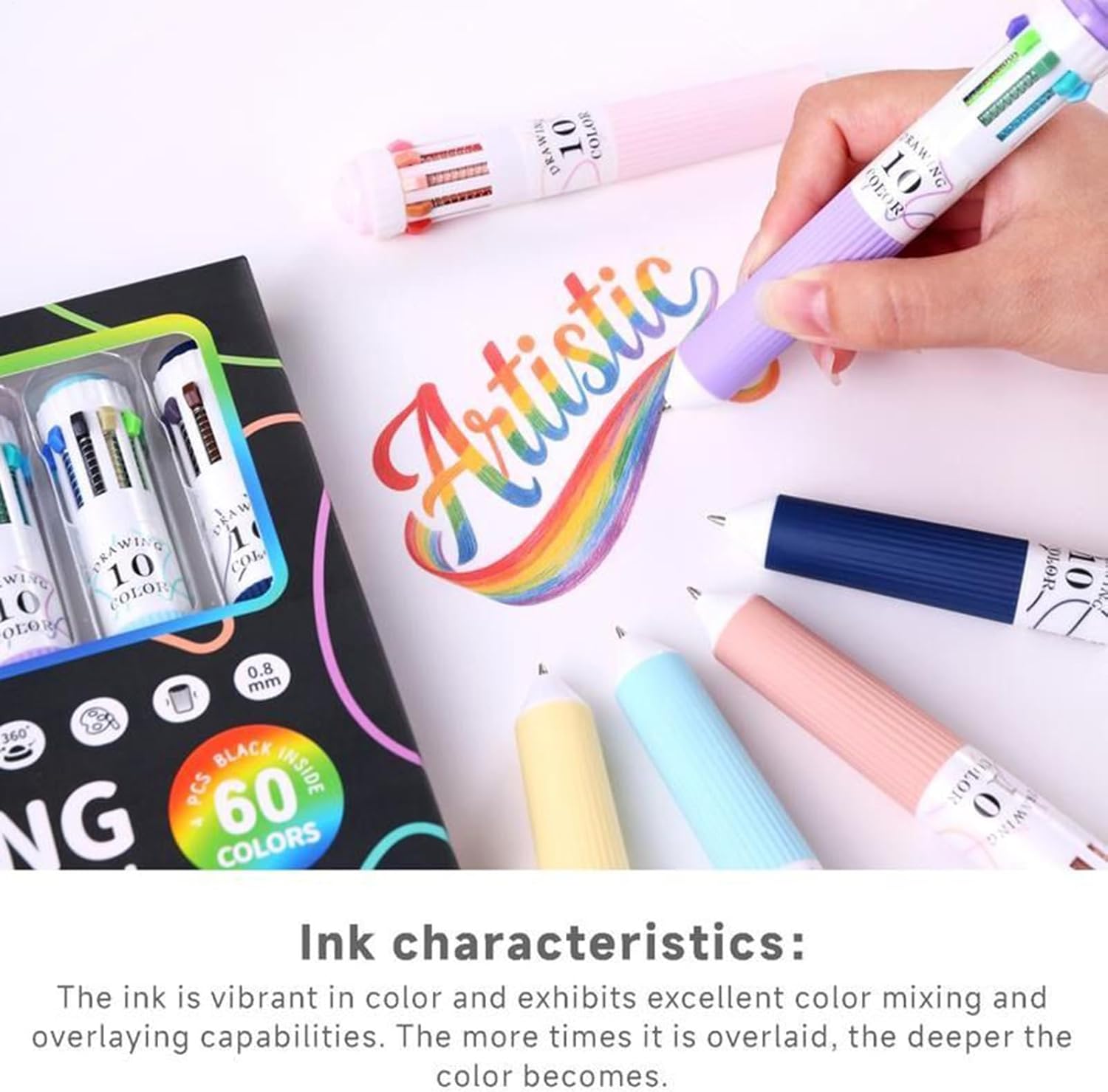 Supporto Scrittura Affidabile: Con design intuitivo, offrono una presa morbida comfortevole che promuove una gestione stabile e allevia la tensione muscolare, assistendo gli studenti in compiti, quiz o attività di gruppo con consistenza eccellente Applicazioni Estese: Progettate per esigenze diverse, queste penne a per scrittura offrono risultati vivaci in libri da colorare, planner e appunti scritti a mano, fornendo versatilità per professionisti, hobbisti e studenti senza sforzo Funzionalità Polivalente: La configurazione 10-in-1 con nero ossidiana e gamma cromatica estesa assicura copertura di tutte le necessità di colore per riunioni, artistici o ambienti scolastici. Strumenti scrittura adattabili per espressione creativa e applicazioni quotidiane. Scrittura Nitida e : Questa penna a produce tratti con inchiostro di alta qualità che previene sbavature e ostruzioni, offrendo una scrittura scorrevole e asciugatura rapida, ideale per prendere appunti, firmare documenti o scrivere senza interruzioni con risultati sempre impeccabili Funzionalità Interattiva: Il a rotolante e la caratteristica tattile del pulsante superiore un'esperienza di scrittura dinamica che aiuta a mantenere la focalizzazione in scenari ad alta distrazione come ufficio o o con movimenti mani produttivi