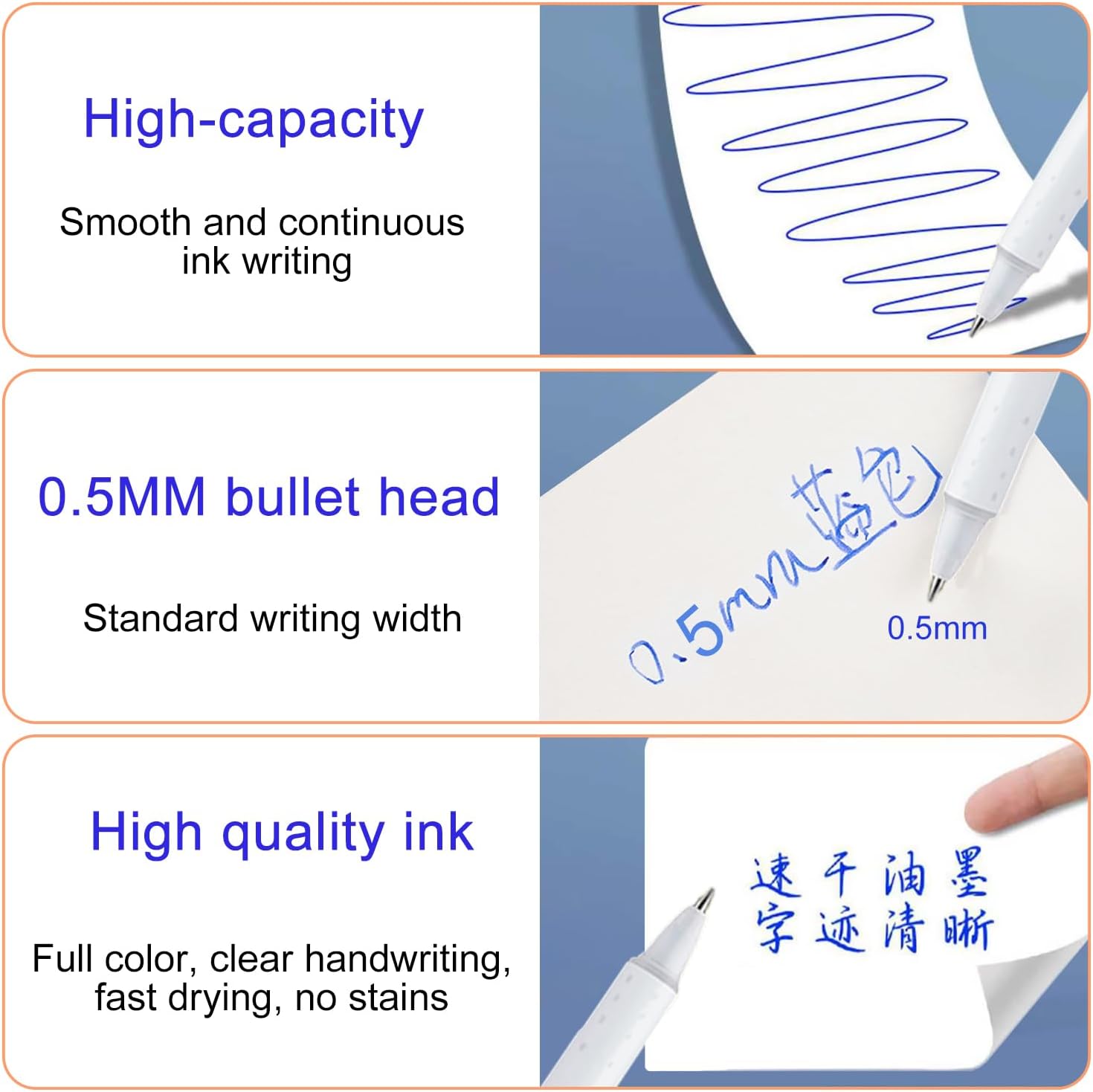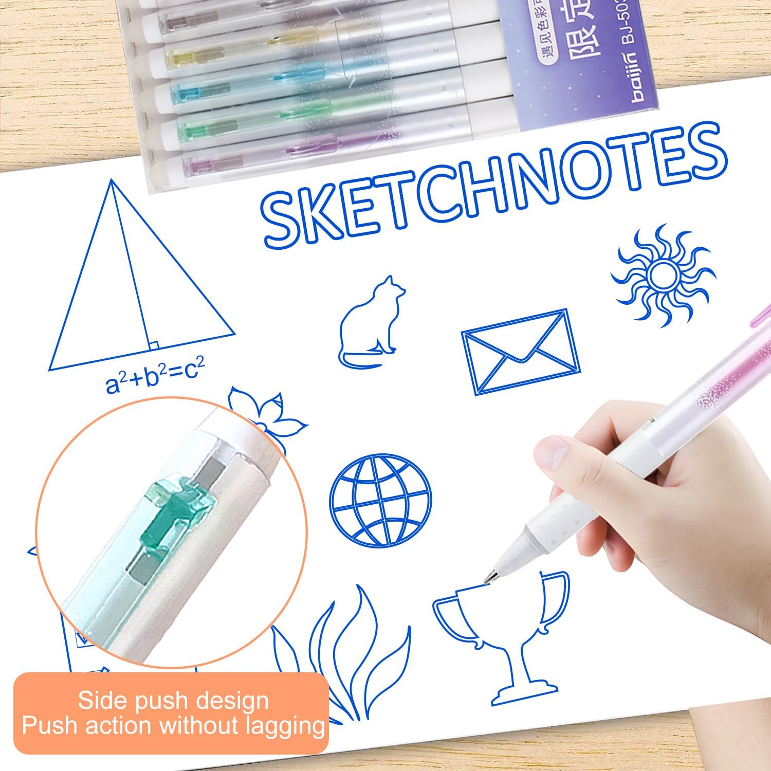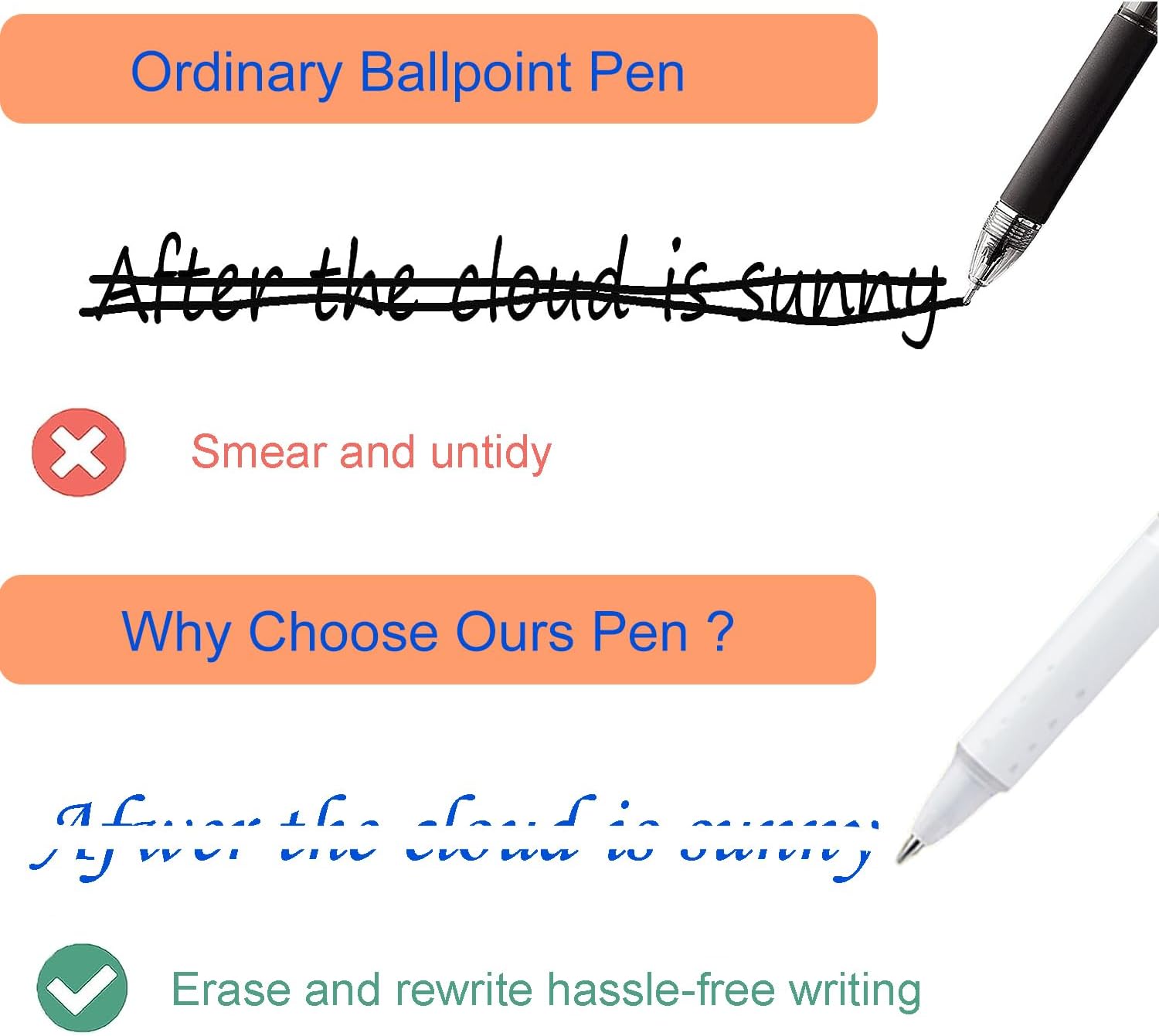 Penna cancellabile di alta qualità: questa penna cancellabile ha una morbida impugnatura in gomma per un maggiore comfort durante la scrittura e utilizza nuovi inchiostri termici per durabilità, adatto per scrivere, scarabocchiare, disegnare, colorare e altri materiali per la scuola di scrittura. Design pratico per scritture ripetute: Ogni penna cancellabile blu è dotata di una gomma ben progettata all'estremità, rendendo il processo di scrittura più conveniente. Puoi scrivere più e più volte e, quando commetti un errore, puoi cancellare facilmente la tua calligrafia senza danneggiare la carta. Scrittura liquida: 6 penne gel blu cancellabili da 0,7 mm, penna a sfera a punta liquida, asciugatura rapida, facile sostituzione della mina e il portapenne può essere riutilizzato a lungo. Retrattile e portatile: usiamo un design a clip retrattile per penna, le penne gel cancellabili possono essere ritratte semplicemente premendo il simpatico design del pulsante dei cartoni animati per ritrarre la penna, il design retrattile consente di evitare il rischio di perdere il coperchio. Regalo perfetto per studenti: Queste penne cancellabili esteticamente piacevoli sono ideali per il rientro a scuola, il Ringraziamento.