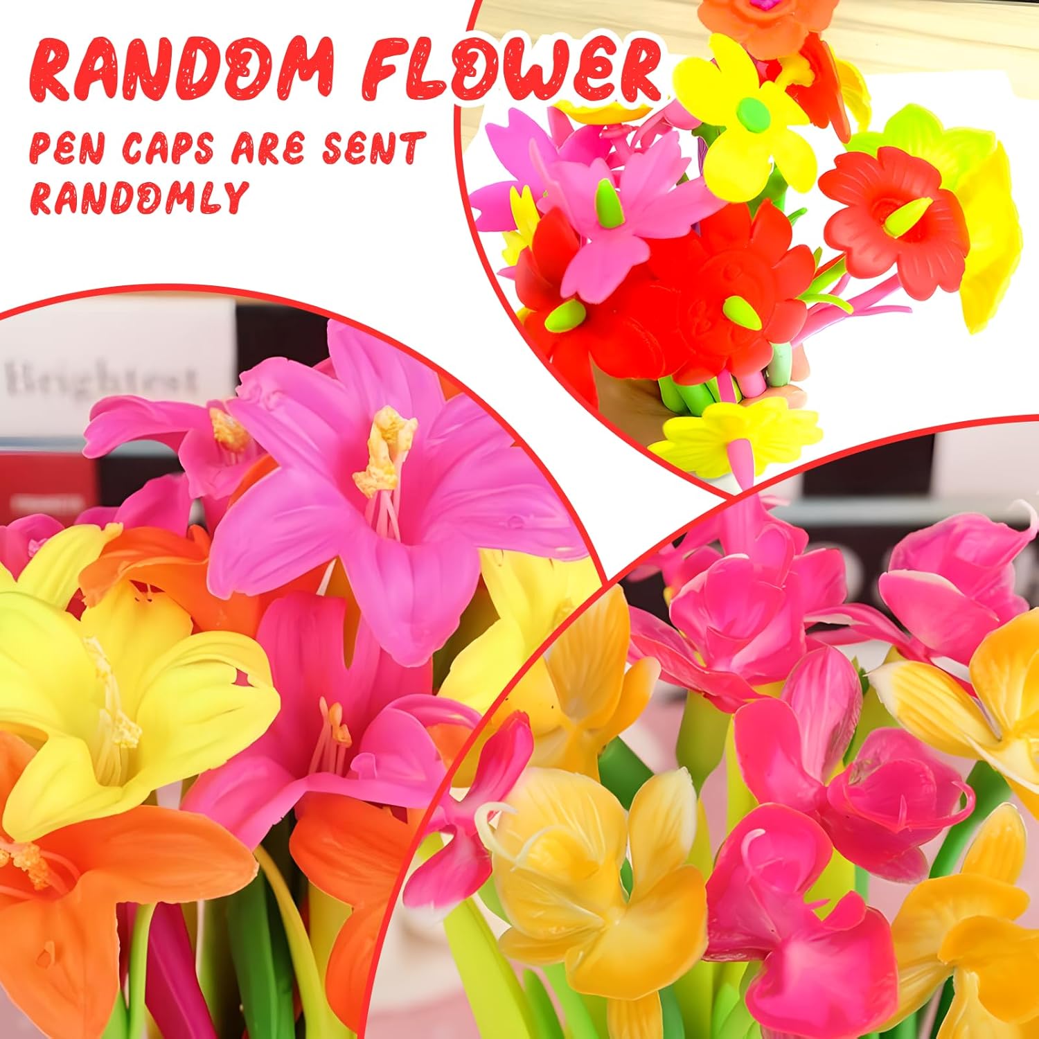 【Lunghezza penna】 21-23 cm; penne a sfera a punta fine da 0,38 mm. 【Materiale】 Realizzato in silicone di alta qualità e materiale plastico, sicuro e divertente. 【Fiore casuale】 Novità Bellissimi fiori e penna d'erba, inchiostro nero, scrittura liscia. 【Riciclaggio】 Ricambio sostituibile, riciclaggio, eco-compatibilità, colore, buona sensazione. 【Migliore regalo】 Miglior regalo per bambini, studenti, compagni di classe, scuola, casa o ufficio, affari, vacanze, compleanno, decorazione, ecc.