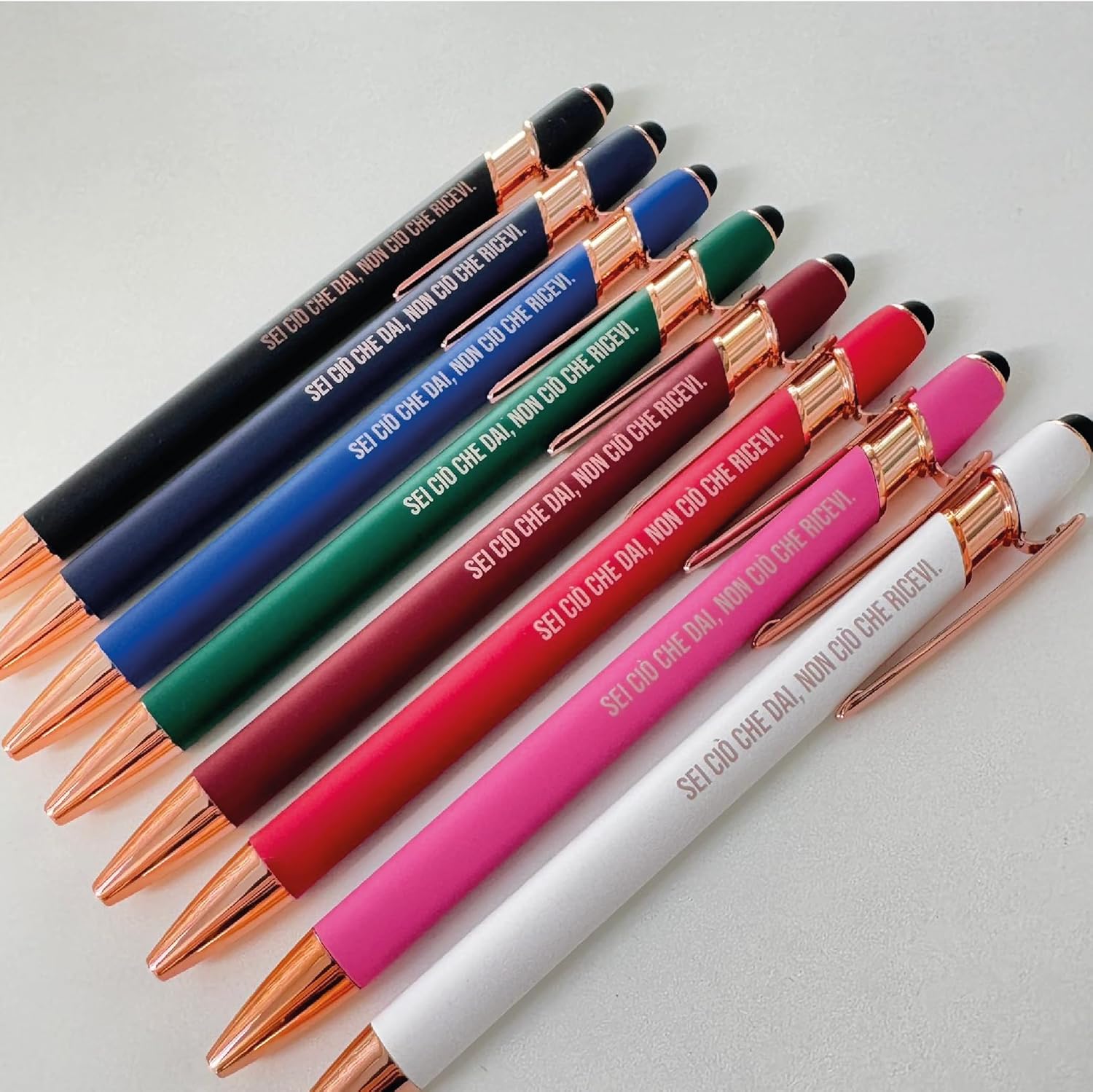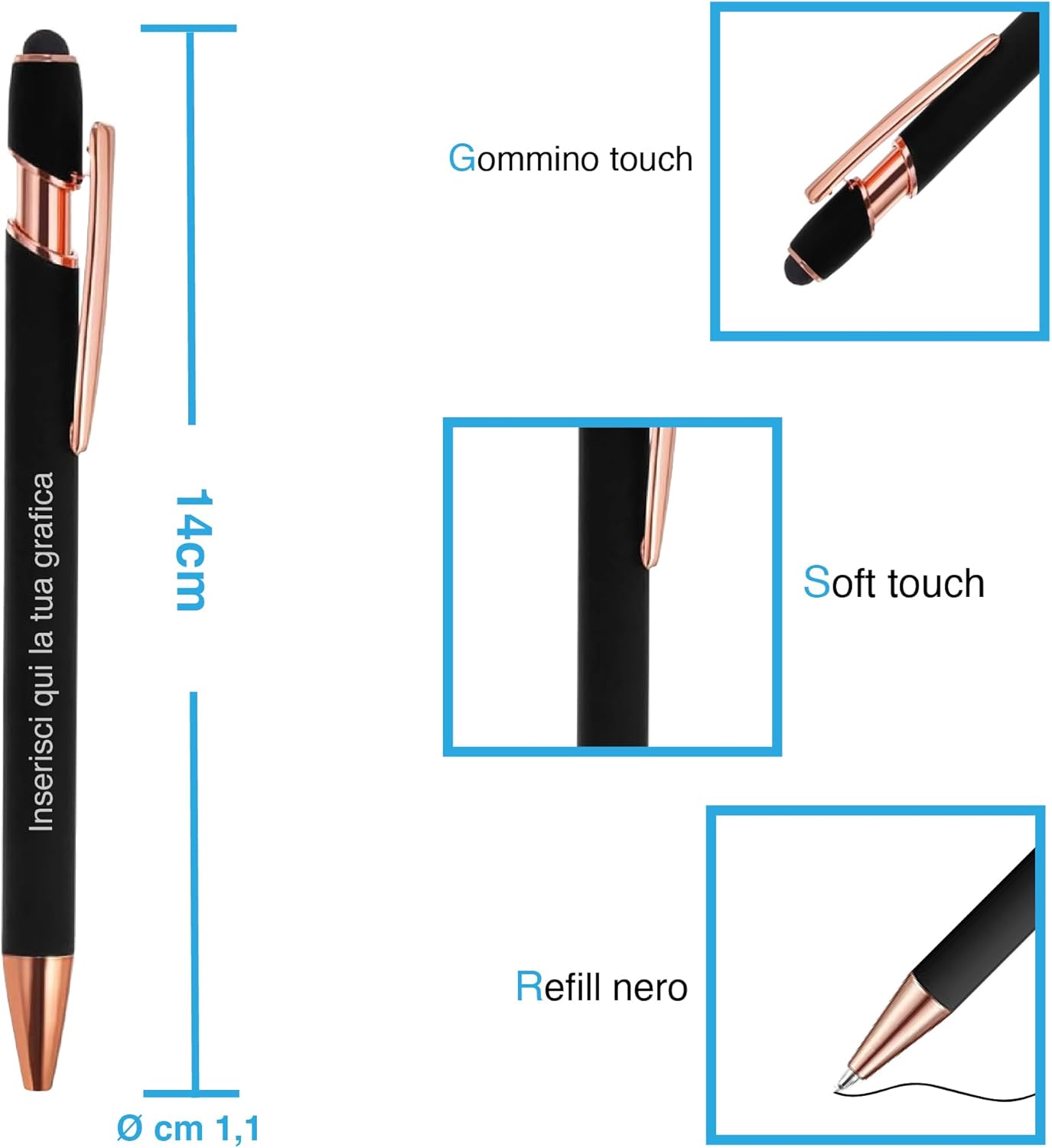 ✨ Eleganza e personalizzazione: Le nostre penne a sfera con punta a stilo combinano raffinatezza e un tocco personale. Ogni penna può essere incisa con nome o testo per renderla unica. ✒️✨ 🌟 Stile e praticità: Queste penne personalizzate, ideali sia per uomini che per donne, offrono una scrittura fluida e un design ergonomico, perfetto per un'immagine professionale ed elegante in ogni occasione, lavorativa o personale. 📲 Funzione 2 in 1: Dotate di testina touch screen, le penne permettono di passare facilmente dalla scrittura su carta all'uso su tablet e smartphone, ideali per l’era digitale. 📱📝 🎁 Scelta perfetta per ogni occasione: Ideali per insegnanti, studenti e professionisti, le nostre penne sono regali apprezzati con un messaggio di riconoscenza. Perfette anche per comunicare l’identità aziendale a partner e clienti. 🤗✨ 🎨 Personalizzazione completa: Offriamo 8 colori di penne tra cui scegliere per un tocco davvero unico!