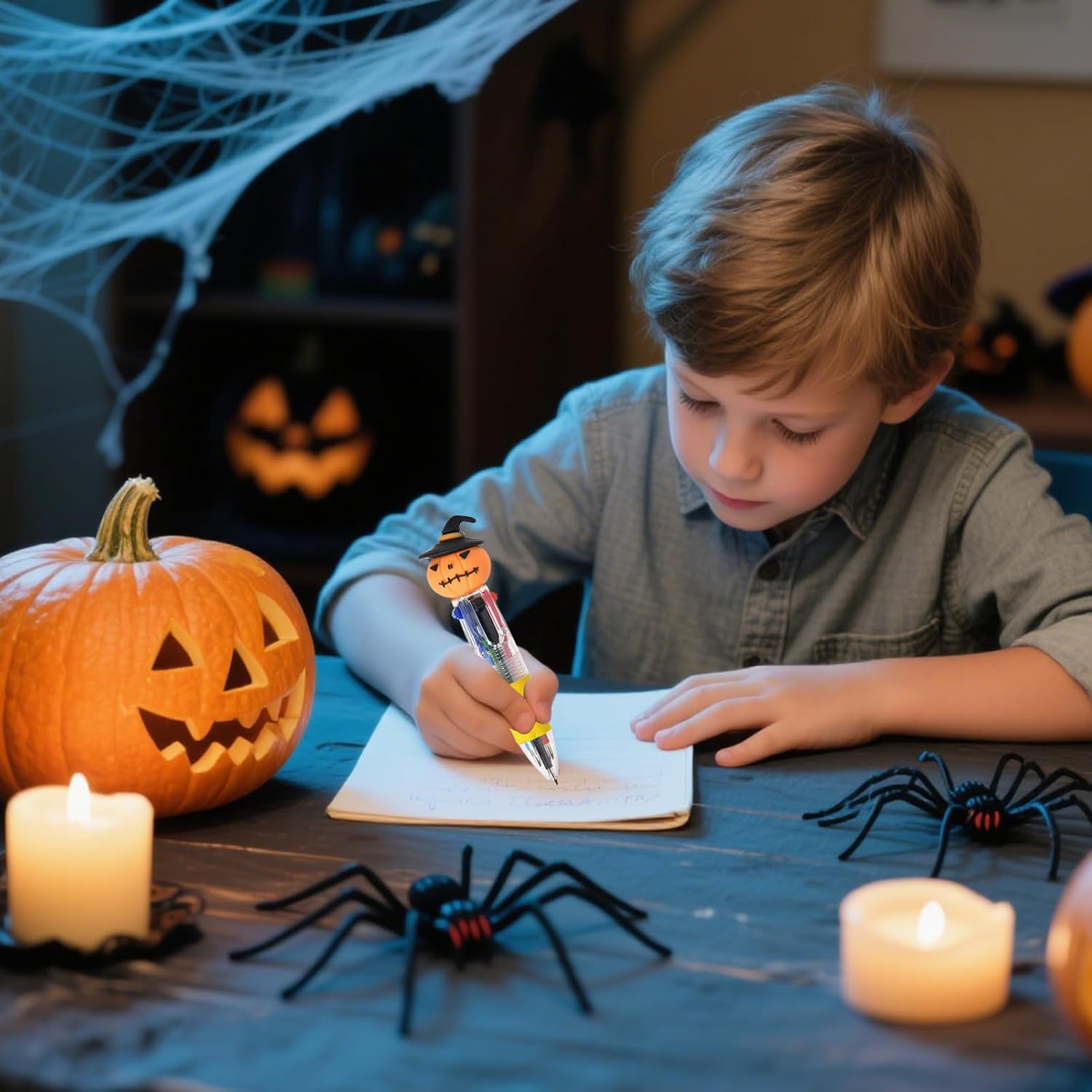 Penna creativa per Halloween: con motivi di zucca e fantasma in vivaci colori giocosi, questa penna multicolore cattura un'atmosfera festiva, rendendola un regalo delizioso per i bambini che amano la cancelleria creativa Penna a colori efficiente: ideale per scrivere e disegnare, questa penna 4 in 1 semplifica i cambi di colore, rendendola uno strumento multiuso efficiente per la creatività quotidiana Esperienza di scrittura migliorata: presenta una presa antiscivolo e una struttura ergonomica adatta ai bambini che promuove la corretta postura delle mani, garantendo meno sforzo e scrittura senza sforzo Maggiore durata: l'involucro rinforzato della penna garantisce una lunga durata, resistente agli urti e alla pressione, per una commutazione uniforme del colore durante l'uso intenso, pur mantenendo prestazioni di precisione del meccanismo a molla Scelta regalo significativa: ideale per fare regali, questa penna multicolore funge da regalo caldo e significativo, perfetta per compleanni, eventi scolastici o qualsiasi occasione che richieda un elegante design regalo ricordo che riflette cura e premurosità