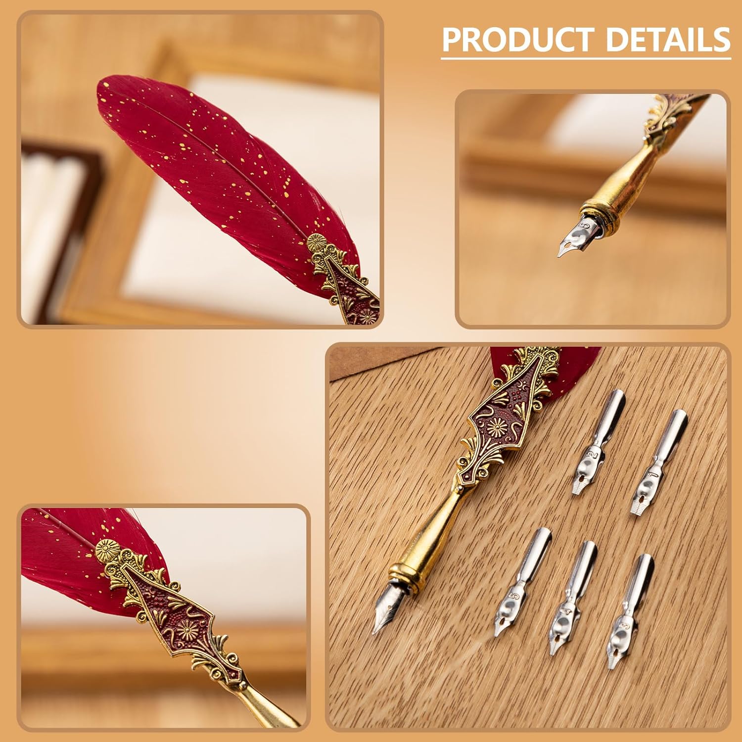 La confezione include un pennarello antico da 1 pezzo; 5 punte di ricambio per penna. Il set di penne professionali offre un'ottima esperienza di scrittura, adatto a principianti, artisti, bambini e adulti Punte in metallo legato, lisce per scrivere, resistenti all'usura e non facili da rompere. Asta della penna accuratamente progettata, leggera, comoda da tenere Squisito regalo di festa per amici, famiglia, principianti, scrittori, bambini, artisti, compleanni, Natale, Ringraziamento, San Valentino, Festa della mamma, Festa dei bambini, Anniversario 5 diverse punte della penna per diversi stili di scrittura. Ottimo per la scrittura artistica a mano, la scrittura di lettere, le illustrazioni artistiche, la firma di inviti di nozze, la pratica di scrittura. Adatto per firmare inviti a feste, scrivere lettere, diari, diari, biglietti di apprezzamento, pratiche artistiche scritte a mano. Si prega di lavare la penna a inchiostro dopo aver scritto in modo da poter scrivere tutto in modo fluido e confortevole per il momento