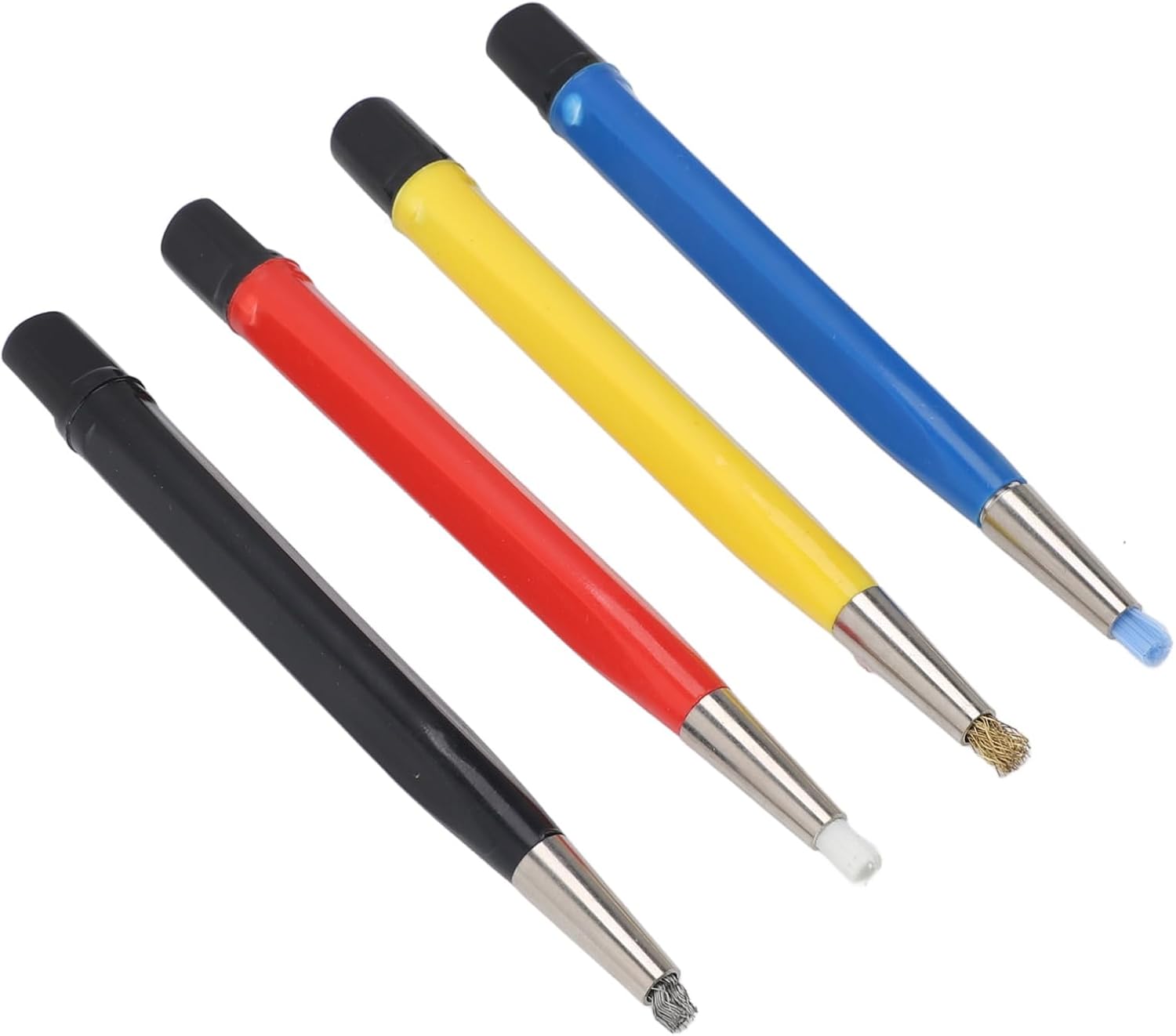 【Applicazioni altamente versatili】 I nostri kit di pulizia sono ideali per molteplici usi come dettagli di circuiti stampati, eliminazione di auto, lucidatura di orologi e gioielli e rimozione di graffi. Sono una buona scelta per qualsiasi hobbista o professionista che desidera affrontare sfide specifiche di pulizia. 【Lunghezza punta regolabile】 Con il suo design intuitivo, il dispositivo per la rimozione dei graffi dell'orologio consente una regolazione semplice della lunghezza e della durezza delle setole. Basta ruotare il cappuccio terminale per personalizzare l'efficacia della pulizia per varie applicazioni, offrendo una precisione di spazzolatura su misura. 【Durabilità al suo meglio】 La spazzola per la pulizia dei gioielli è realizzata con materiali di alta qualità tra cui fibra di vetro, nylon, acciaio e ottone. Ciò garantisce una lunga durata e affidabilità. La punta in fibra di vetro eccelle nella riparazione dei graffi sulla vernice e nella manutenzione dei terminali. 【Kit di pulizia completo】 La penna per la pulizia dei gioielli è progettata come un kit di strumenti multifunzionale, tra cui una penna per raschiare in fibra di vetro, una penna a spazzola in ottone, uno strumento con setole in acciaio e uno strumento con punta in nylon. Questo set fornisce soluzioni di pulizia versatili per tutte le attività di pulizia, garantendo che ogni tipo di materiale venga rimosso in modo efficiente. Comoda soluzione per riporre gli oggetti: dotato di una pratica custodia in plastica, il pulitore mantiene gli strumenti di pulizia organizzati e facilmente accessibili. Il suo design compatto garantisce che il kit possa essere facilmente riposto in qualsiasi cassetta degli attrezzi o cassetto.