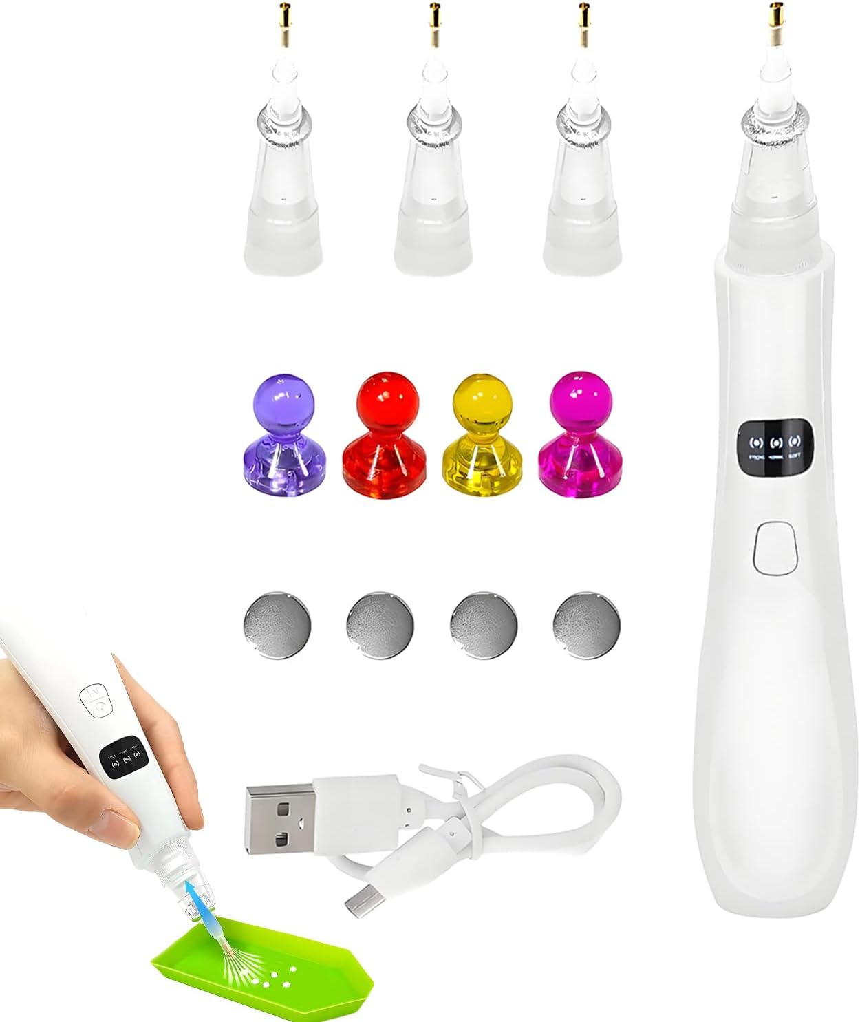 Prestazioni di precisione migliorate: la tecnologia del vuoto garantisce Versatilità creativa wireless: goditi la libertà senza fili con una batteria ricaricabile per una lunga vita Strumento di artigianato antiaderente: questo strumento con consigli sulla sostanza senza interruzioni e una testa in silicone antiaderente assicura Prestazioni artigianali adattabili: questo strumento è progettato con tecnologia di aspirazione intelligente e 3 impostazioni e si adatta saldamente alle punte da 2,5 a 5 mm e si adatta perfettamente a tutte le forme di strass per disegni precisi e creativi Soluzione artigianale senza sforzo: combina un set realizzato con un kit completo di 4 guide di ricambio e ricarica di tipo C per prestazioni coerenti e buone