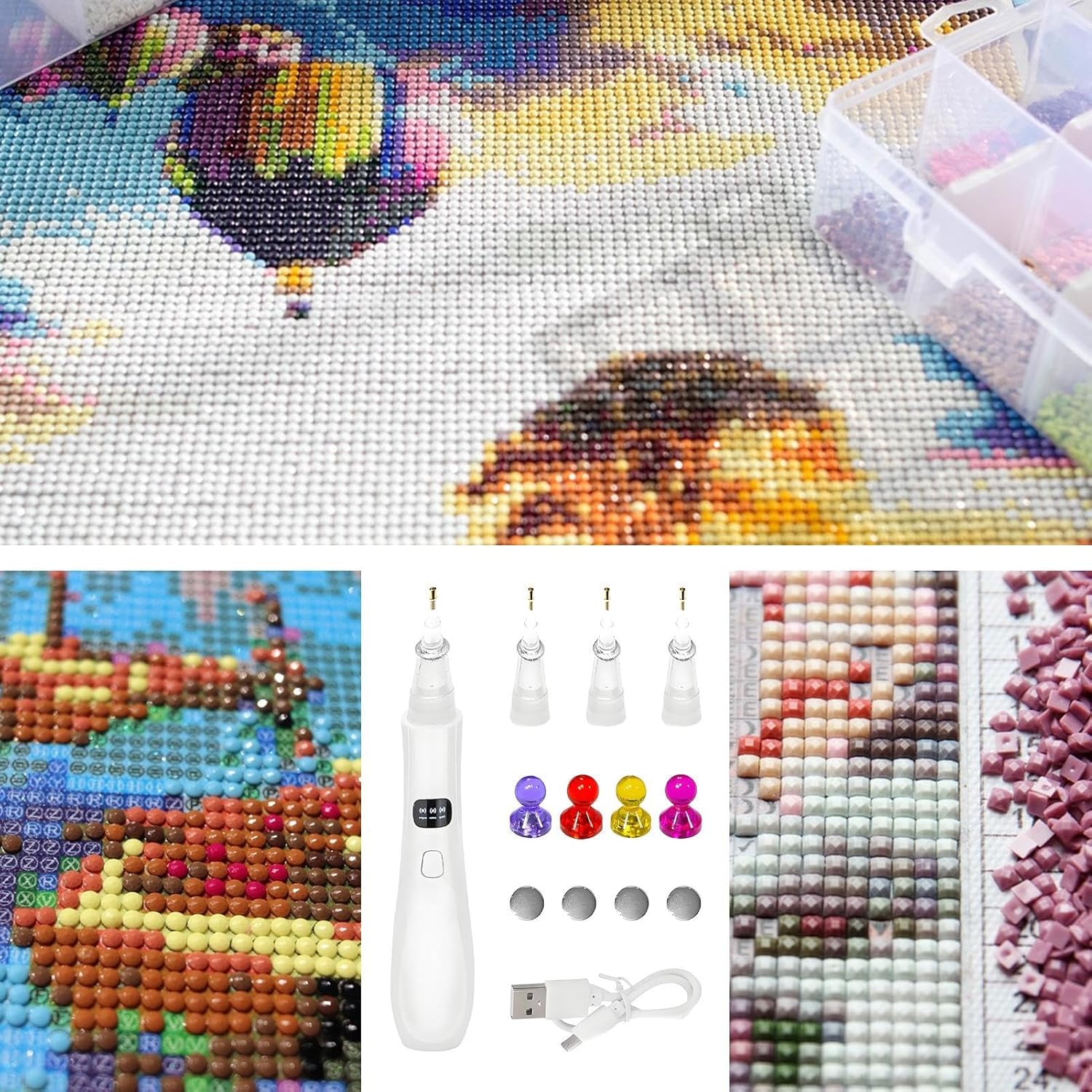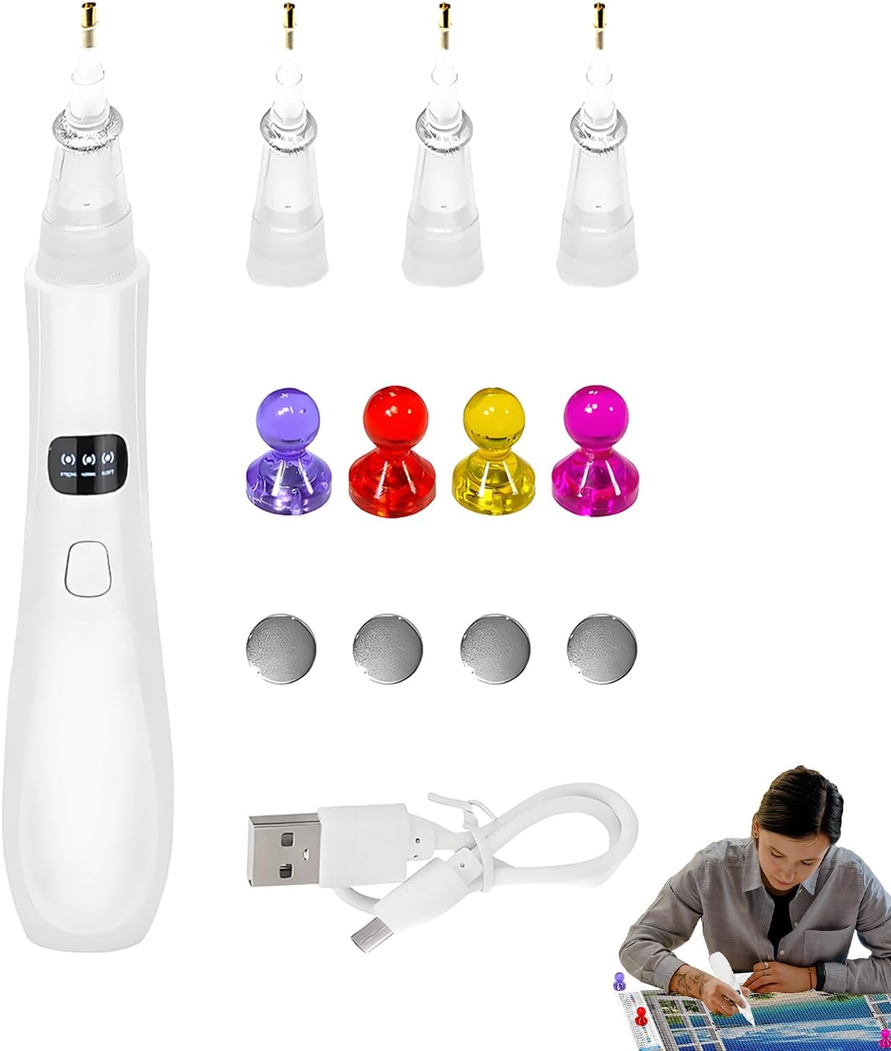 Set Completo : Include 1 punta di ricambio, cavo di ricarica rapida USB-C e 4 strumenti di allineamento. Questo kit completo offre tutto il necessario per progetti creativi efficienti senza interruzioni, ideale per applicazioni strass precise. Controllo Assoluto: Lavora con sicurezza: questo strumento elimina scivolamenti e disallineamenti, supportato dalla tecnologia a suzione sottovuoto che aumenta l'efficienza del 20% e offre una precisione di perforazione costantemente triplicata. Praticità Avanzata: Offre controllo aspirazione intelligente e 3 modalità distinte, strumento universale per tutti i progetti con strass rotondi e quadrati per una creatività senza sforzo. Precisione : Il pennello per strass garantisce utilizzo pulito senza sostanze appiccicose, con punta in silicone per maneggevolezza scorrevole e cristallina trasparenza durante l'applicazione, migliorando la precisione creativa senza sforzo Versatilità Senza Fili:ovunque sorga l'ispirazione - casa, esterni o viaggi - potenziata dalla batteria ricaricabile per utilizzo senza cavi che supporta la creatività in ogni contesto