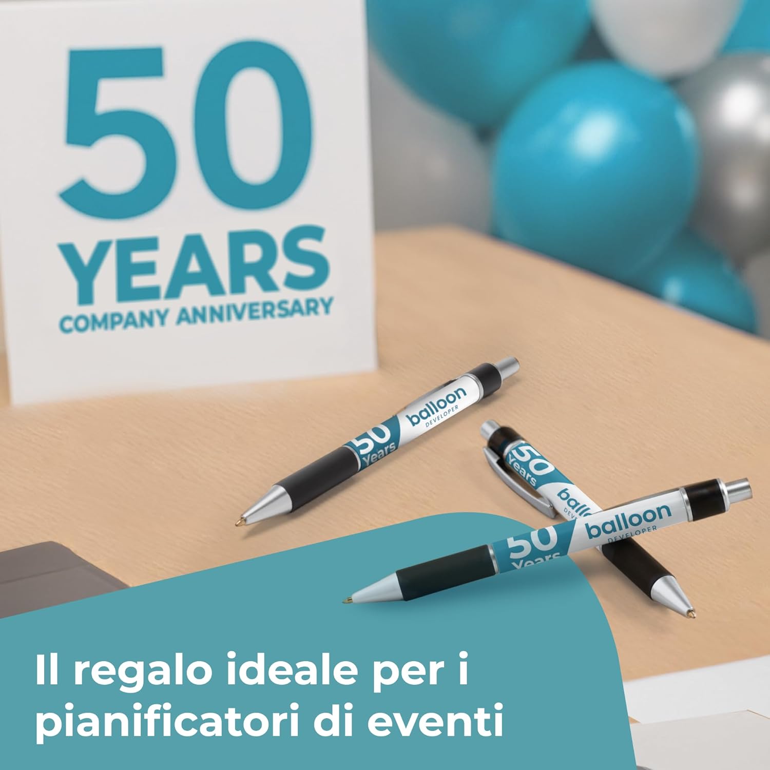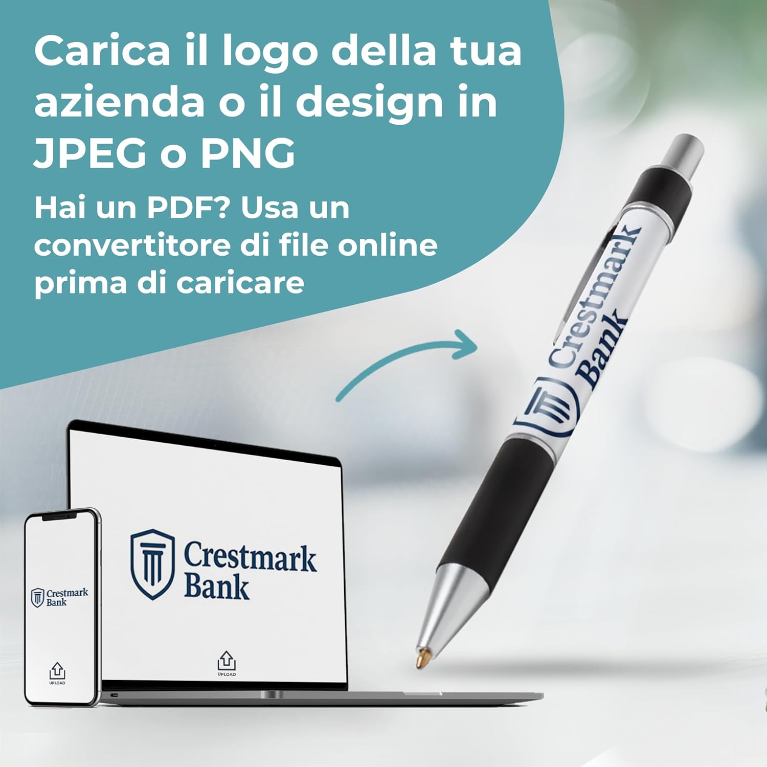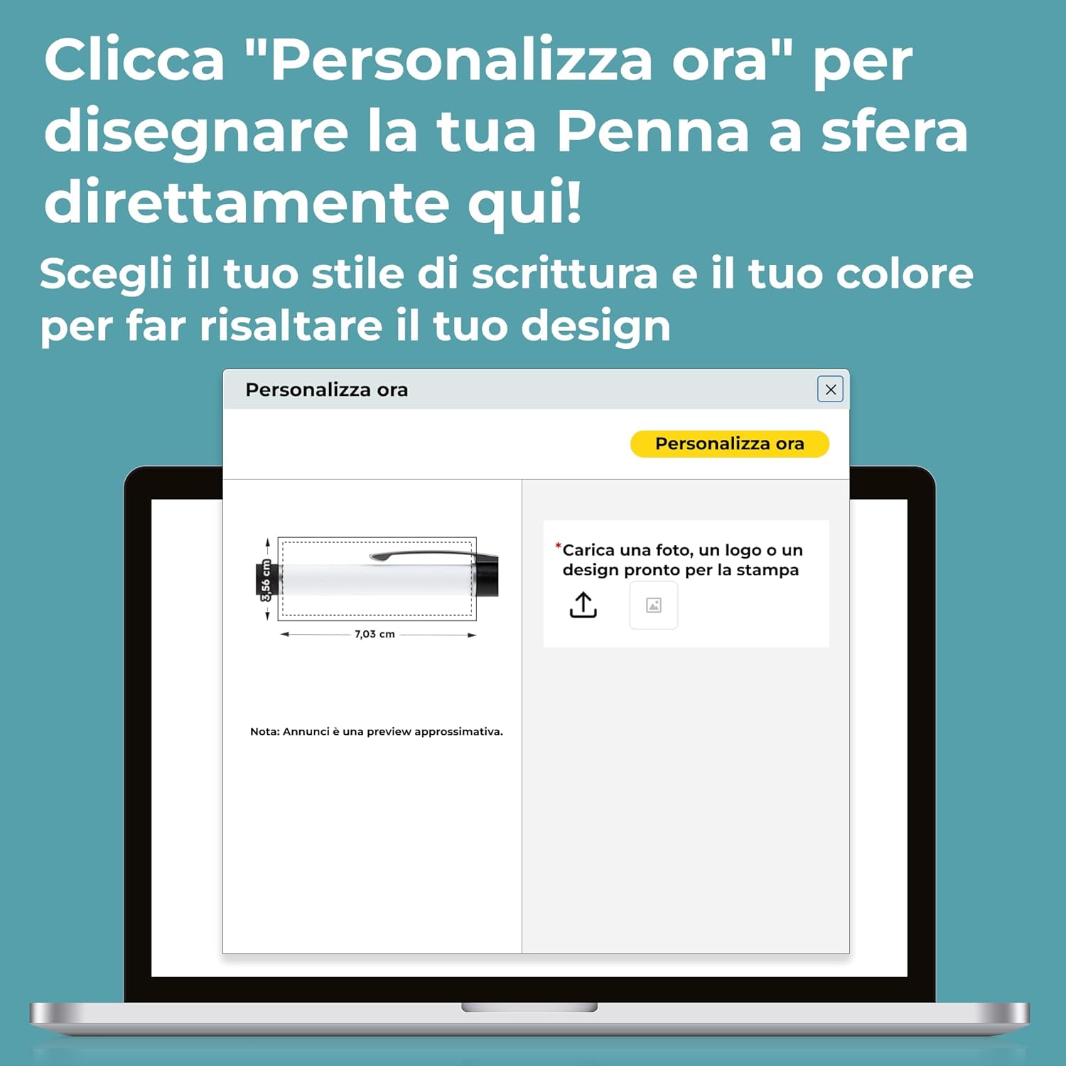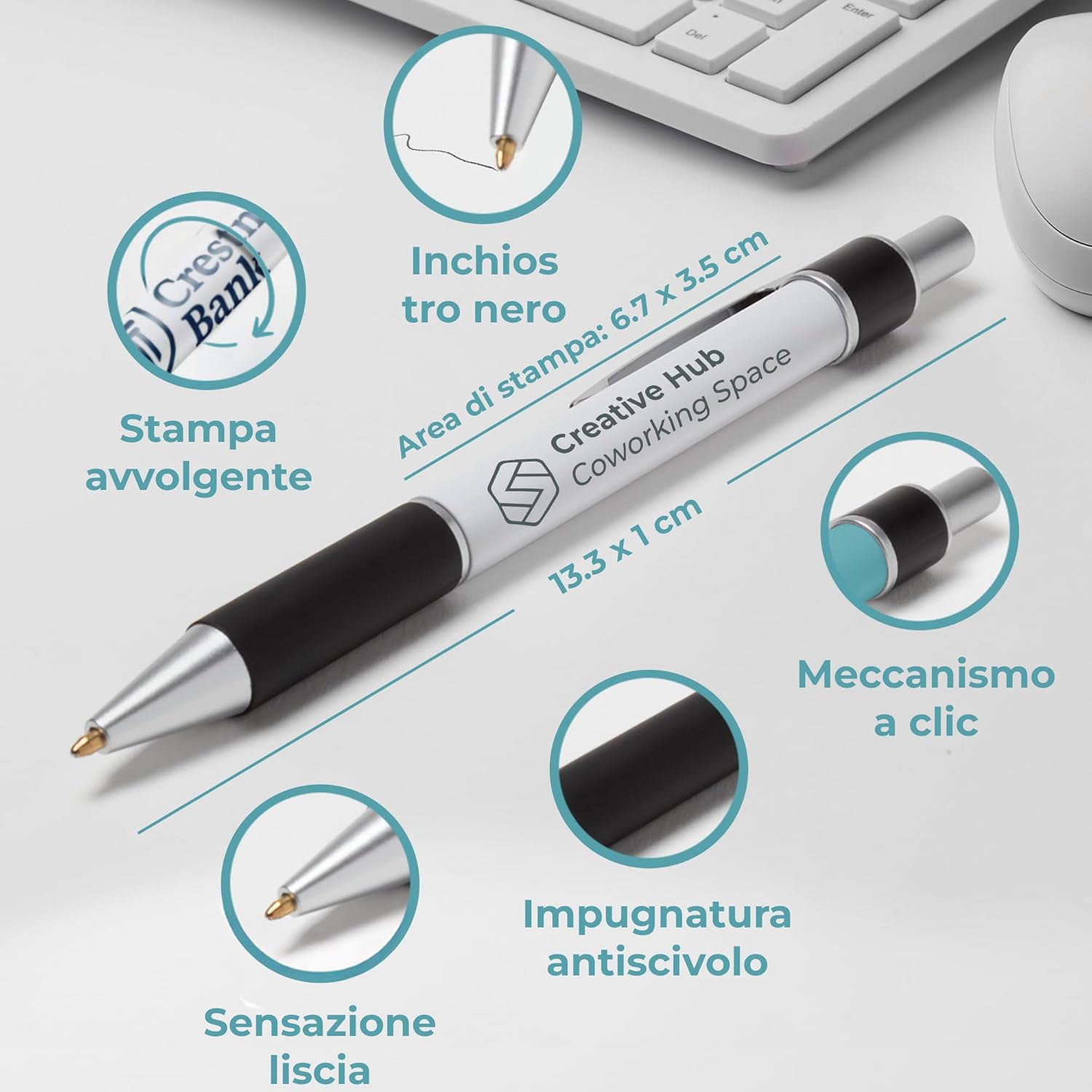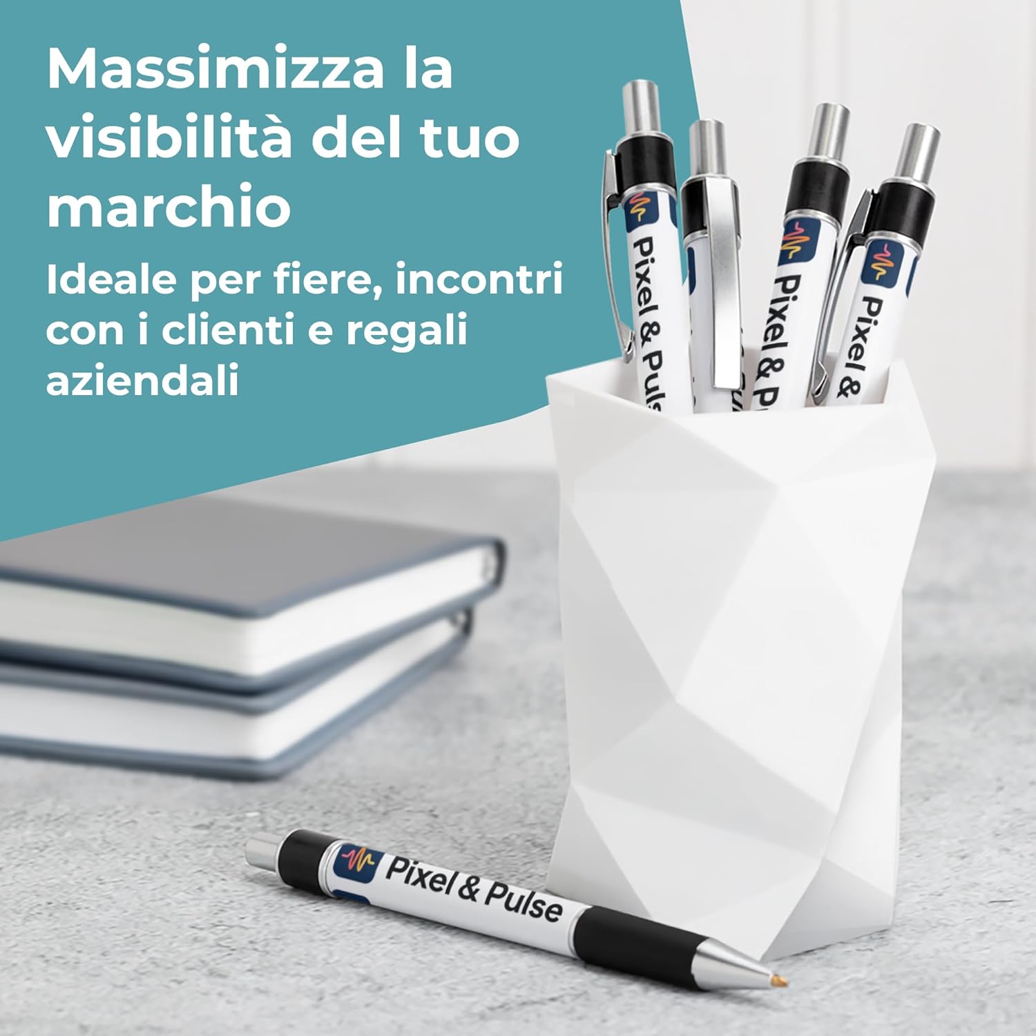 𝐏𝐞𝐧𝐧𝐚 𝐮𝐧𝐢𝐜𝐚 𝐩𝐞𝐫 𝐨𝐠𝐧𝐢 𝐨𝐜𝐜𝐚𝐬𝐢𝐨𝐧𝐞: Personalizzabile con nome, logo o messaggio. Ideale per compleanni, eventi aziendali o momenti speciali. Clicca su “Personalizza ora” per iniziare a progettare la tua penna personalizzata. 𝐏𝐞𝐫𝐟𝐞𝐭𝐭𝐚 𝐩𝐞𝐫 𝐥’𝐮𝐬𝐨 𝐪𝐮𝐨𝐭𝐢𝐝𝐢𝐚𝐧𝐨: Struttura solida in plastica, inchiostro nero e impugnatura ergonomica per una scrittura piacevole in ufficio, scuola o casa. Misura 13,3 x 1 cm. Disponibile in confezioni da 1, 10, 25, 50, 100 e 250. 𝐑𝐞𝐧𝐝𝐢 𝐮𝐧𝐢𝐭𝐨 𝐢𝐥 𝐭𝐮𝐨 𝐭𝐞𝐚𝐦: Un'idea funzionale e coordinata per rafforzare l’identità interna. Ideale per ambienti professionali, onboarding, training o riconoscimenti tra team. 𝐒𝐭𝐚𝐧𝐝 𝐞𝐟𝐟𝐢𝐜𝐚𝐜𝐢 𝐚𝐢 𝐜𝐨𝐧𝐠𝐫𝐞𝐬𝐬𝐢: Ideale per fiere, congressi o reception. Aumenta la visibilità del marchio con un gadget utile e personalizzabile sempre a portata di mano. 𝐏𝐮𝐥𝐢𝐭𝐚 𝐞 𝐝𝐮𝐫𝐞𝐯𝐨𝐥𝐞 𝐧𝐞𝐥 𝐭𝐞𝐦𝐩𝐨: Inchiostro che non macchia, scrittura uniforme, stampa resistente. Penna pronta all’uso che mantiene visibilità e qualità anche dopo molteplici utilizzi.