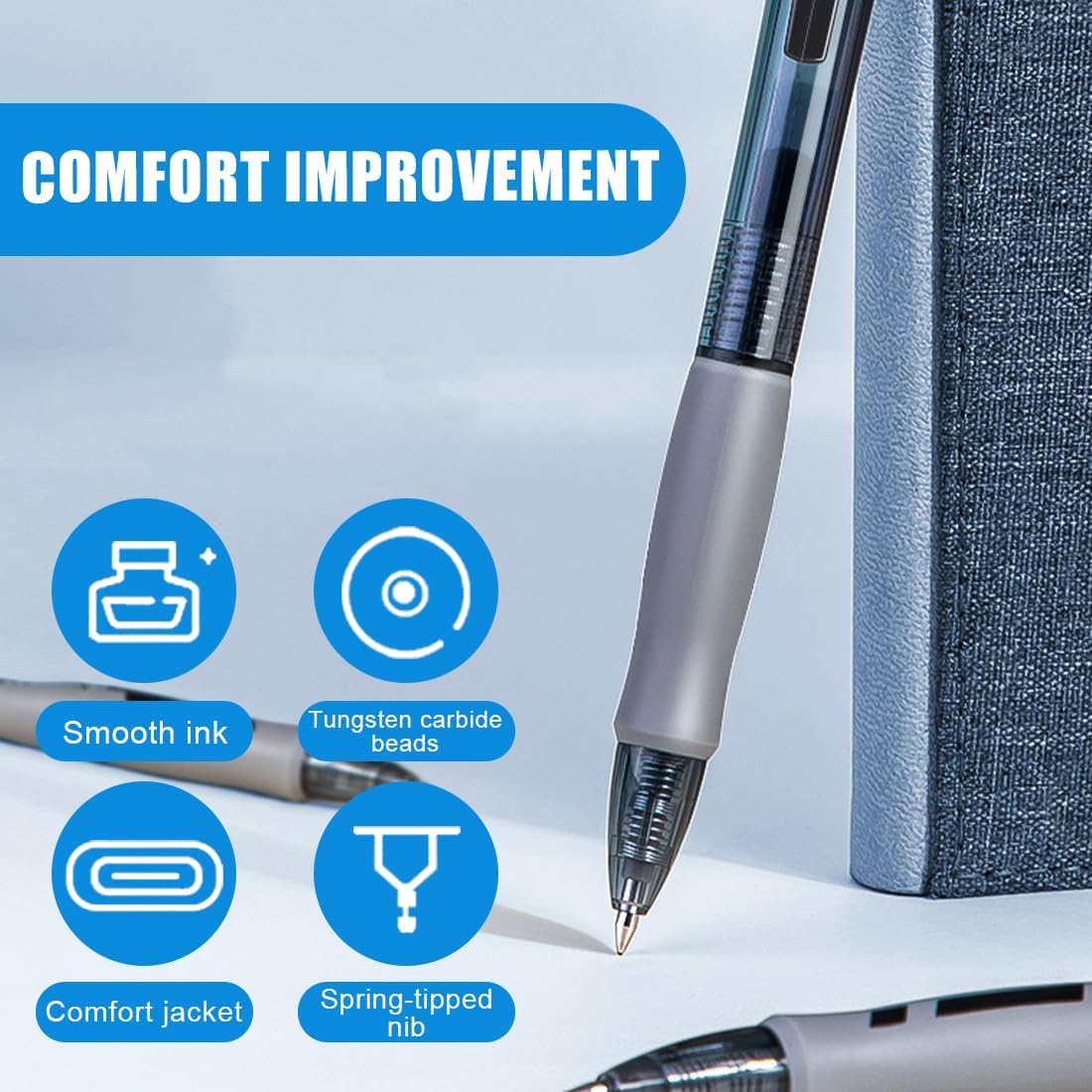La penna a inchiostro gel più venduta: la punta in acciaio inossidabile resiste alla pressione e la sfera in carburo di tungsteno mantiene la forma ed è estremamente resistente. Non ti pianterà mai in asso Comoda e versatile: la penna roller a punta media (0,7 mm) scorre velocemente e senza intoppi sulla carta erogando una linea di inchiostro vivace e nitida fino all’ultima goccia. Penna retrattile gel ideale per prendere note, per lavorare a progetti creativi e per compilare documenti ufficiali La penna gel ricaricabile amica dell’ambiente: prodotta per il 70% in plastica riciclata, ricaricabile con appositi refill. Pratica penna retrattile : dimenticati dei cappucci persi e dei segni lasciati dalle penne a sfera in fondo alle tue tasche, le pennesi ritirano con un semplice clic e sono sempre pronte per prendere appunti Impugnatura ergonomica in gomma per maggior comfort e controlloclip da taschino, che consente di agganciare la penna anche al taccuino