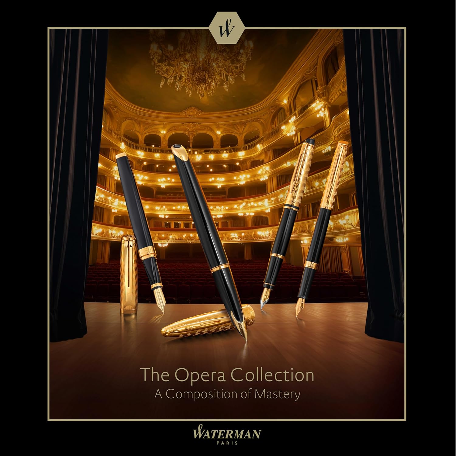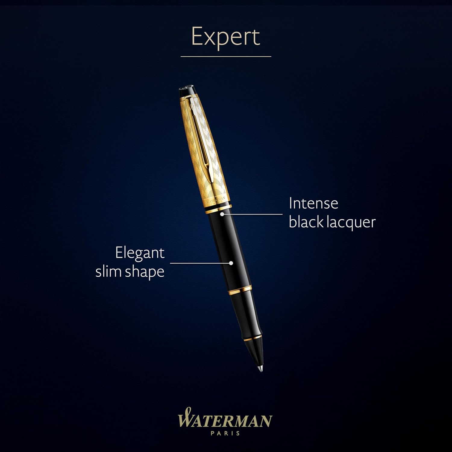 L’elegante forma affusolata della penna Expert, unita al suo fusto con laccatura nero intenso, si abbina perfettamente al suo lussuoso puntale con finiture placcate in oro e al cappuccio finemente lavorato. L’elegante cappuccio placcato in oro, impreziosito da un elaborato motivo inciso ispirato alla tradizione, richiama la bellezza senza tempo e la ricercata raffinatezza artistica dell’opera. La punta a sfera sapientemente costruita unisce la tradizione dell’inchiostro liquido al comfort e alla praticità, esaltando l’eleganza sofisticata della penna. Meticolosamente realizzata e assemblata a mano in Francia, ogni penna della The Opera Collection vanta 140 anni di maestria artigianale ed esperienza nella creazione di penne a punta fine, mettendo in evidenza il savoir-faire francese di Waterman. Splendidamente presentata in una confezione regalo Waterman Prestige con il caratteristico motivo cesellato Waterman per completare questa lussuosa collezione.