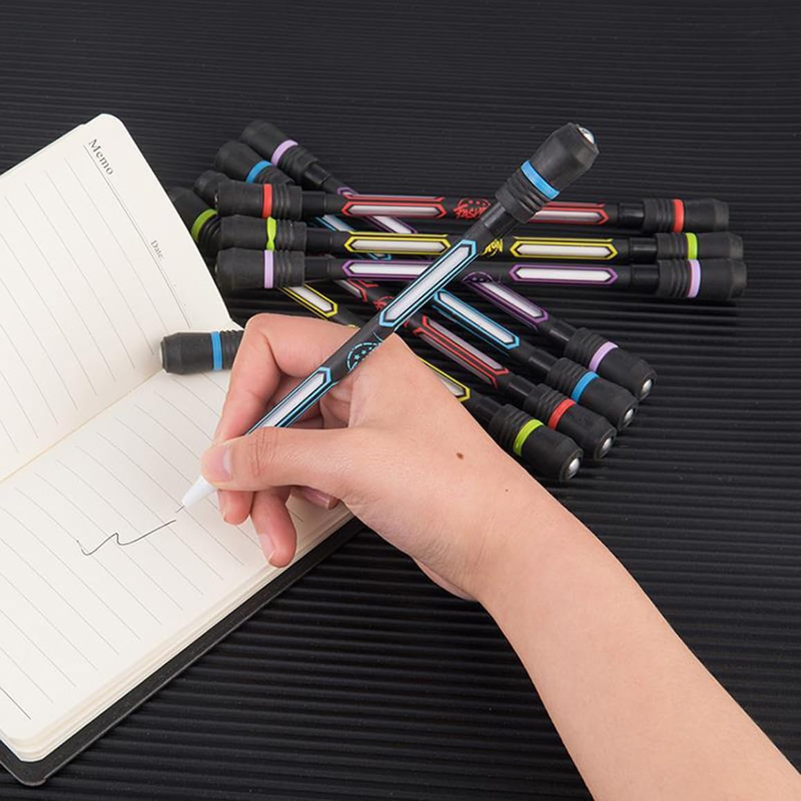 Usa la funzione: giocare con una penna rotante promuove il pensiero, l'apprendimento e il alleviazione delle paure, ti aiuta a sbarazzarti della pressione del lavoro e della vita e portare più divertimento nella tua vita. Materiale di alta qualità: la svolta dell'abbazia entrambi i lati sono realizzati in materiale elastico a silicone morbido per evitare che la tensione cada o si rompa. Il nucleo interno in metallo a sfera di metallo è stretto. Design intelligente e piacevole da mantenere, con un rivestimento resistente all'usura Design: Penspinning Stift ha un design simmetrico, le due estremità della penna rotante sono ponderate per raggiungere il punto di bilanciamento dorato e per migliorare la flessibilità dell'uso. Design intelligente e piacevole da mantenere, con un rivestimento resistente all'usura. Facile da trasportare: e la dimensione della penna rotante è di 19 cm, che può essere facilmente rimossa e utilizzata ovunque. Si prega di notare che questa ricarica della penna con 0,5 mm, può essere utilizzata come penna per la scrittura. Pacchetto incluso: riceverai 8 pezzi di penna a penna, 4 diversi colori di penne rotanti dal pacchetto, tra cui blu, viola, rosso e verde, con quantità e stile sufficienti per l'uso quotidiano.