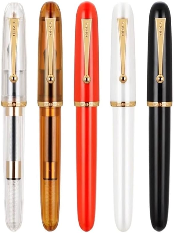 Qualità straordinaria e brillante: questa penna stilografica mostra la sua brillantezza attraverso un corpo acrilico trasparente, fornendo una sensazione lussuosa alla tua esperienza di scrittura. Varie opzioni di colore che esprimono individualità: scegli tra cinque colori di tendenza: nero, rosso-arancio, bianco porcellana, caffè trasparente e trasparente trasparente per abbinarli al tuo stile e personalità. Meccanismo di rotazione robusto e sicuro: il meccanismo di rotazione realizzato con precisione garantisce una vestibilità salda e sicura tra il corpo della penna e il cappuccio per evitare scivolamenti o perdite accidentali. Grande capacità di inchiostro per una scrittura ininterrotta: con un serbatoio di inchiostro ad alta capacità, questa penna riduce al minimo la necessità di ricariche frequenti, consentendoti di scrivere più a lungo e in modo più efficiente. Design compatto ed elegante: Rispetto alla serie 9019, la serie 9016 offre un design più compatto e sofisticato, perfetto per chi apprezza l'attenzione ai dettagli e la qualità artigianale.