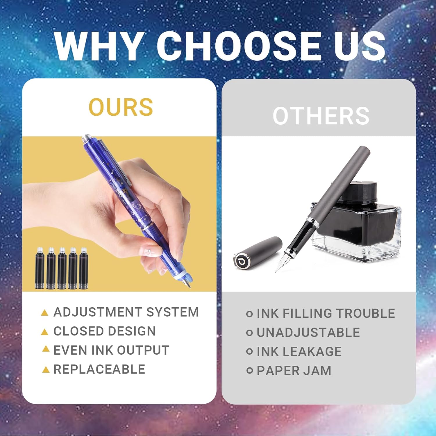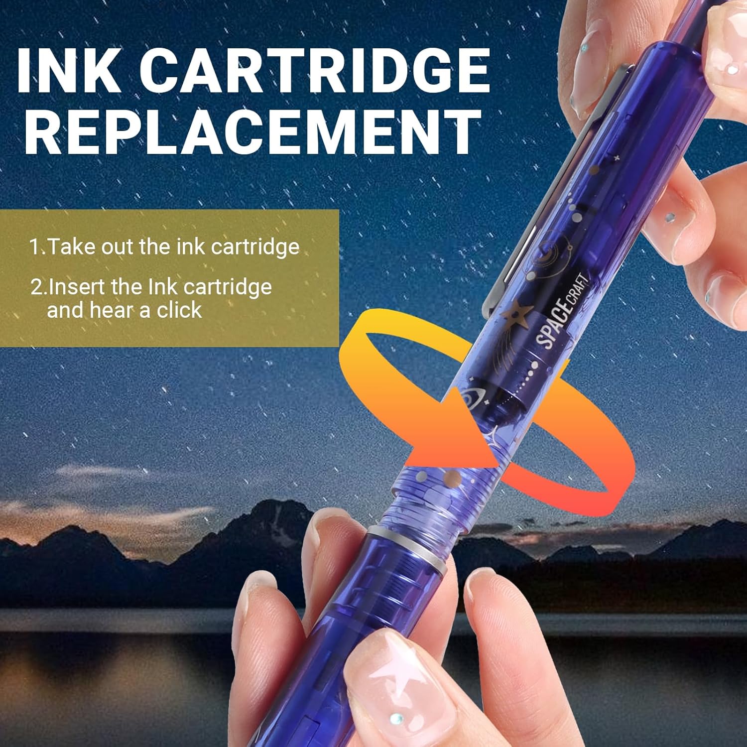 Retractable fountain pen with refills and a case. Inexpensive gift for fountain pen lovers.