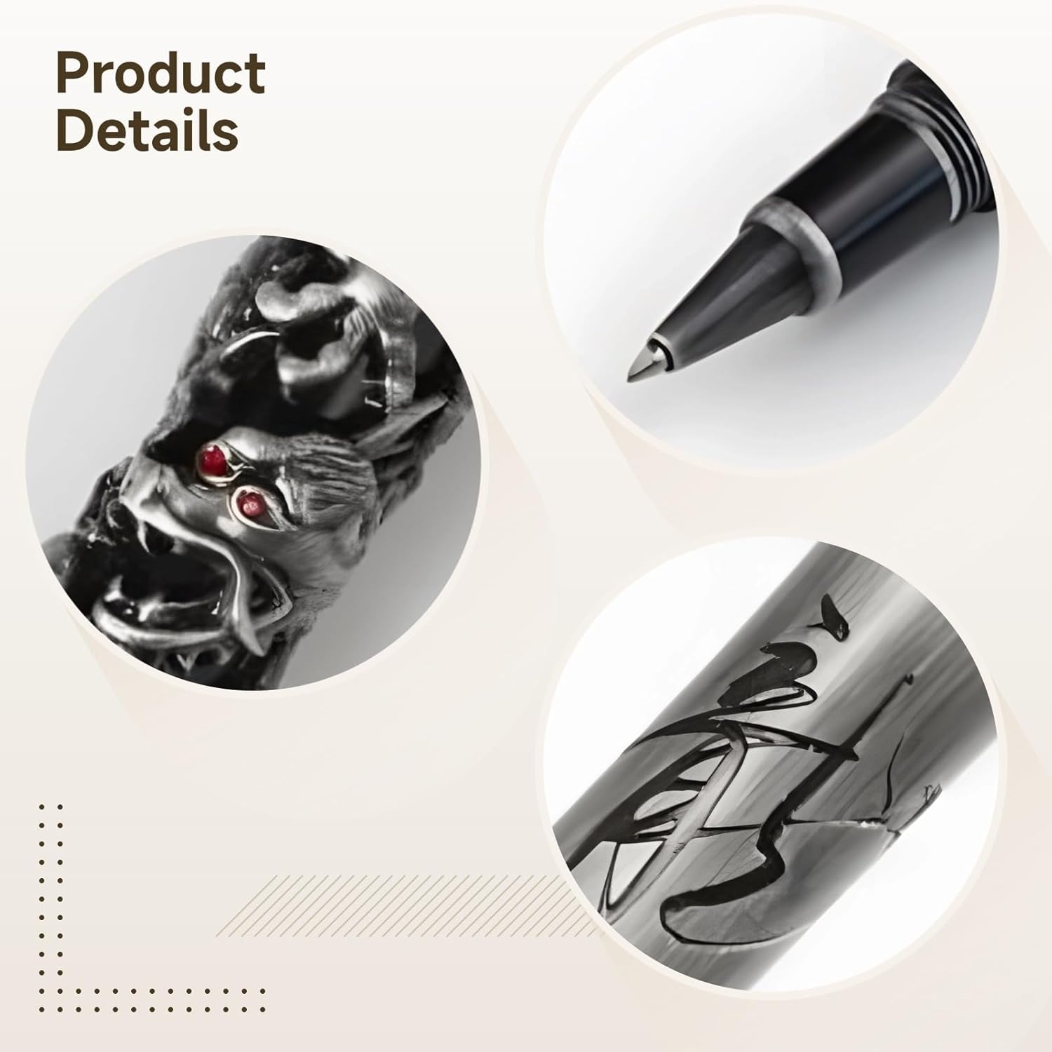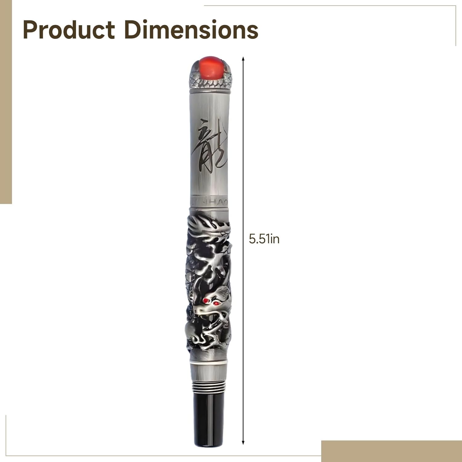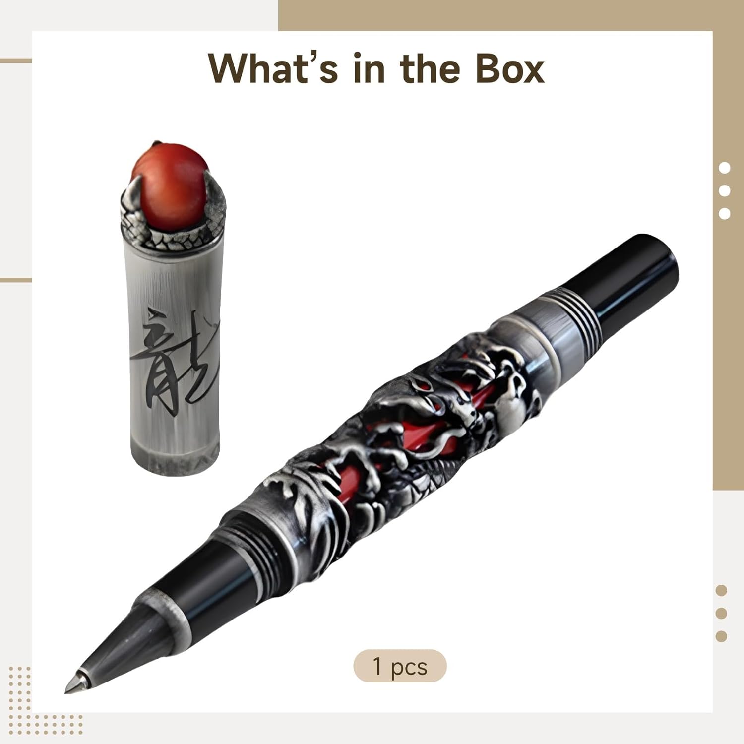 Intricata grafica del drago: presenta un drago 3D splendidamente dettagliato in grigio antico con una perla artificiale di agata rossa, che simboleggia la ricerca della saggezza del mitico drago cinese. meeting di alto profilo o cerimonie di premiazione, il suo peso garantisce comfort e allo stesso tempo una chiara dichiarazione di professionalità Perfetto per la calligrafia: adatto per diari, firme o come ottimo regalo per collezionisti, professionisti e amanti dell'arte