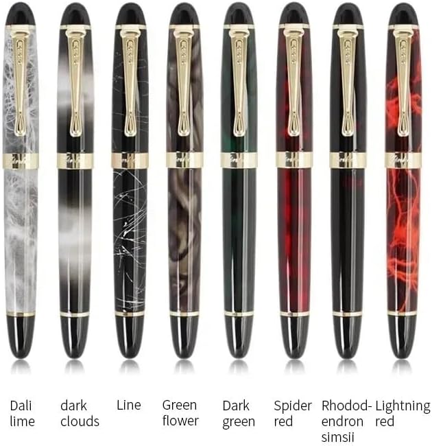 【Esperienza di scrittura fluida】 Questa penna è dotata di una punta in iridio da 18KGP, che garantisce una scrittura fluida e senza interruzioni, permettendoti di goderti la gioia di scrivere senza sforzo. 【Design bicolore e motivi incisi】 Il corpo della penna mostra un design bicolore con un look alla moda, mentre i motivi incisi aggiungono un tocco di eleganza per riflettere il tuo gusto unico. 【Fusto della penna liscio e finitura laccata per pianoforte】 Il fusto della penna è realizzato con una finitura laccata simile a un pianoforte che si adatta perfettamente alle tue dita, garantendo un'esperienza di scrittura più fluida e naturale. Diversi colori alla moda tra cui scegliere: con una gamma di opzioni di colore disponibili, questa penna ti consente di esprimere la tua individualità e il tuo stile, sia per uso aziendale che personale. 【Dettagli incisi e garanzia del marchio】Il corpo della penna mostra dettagli incisi, mentre il logo del marchio aggiunge un tocco di qualità e sicurezza alla tua scrittura.