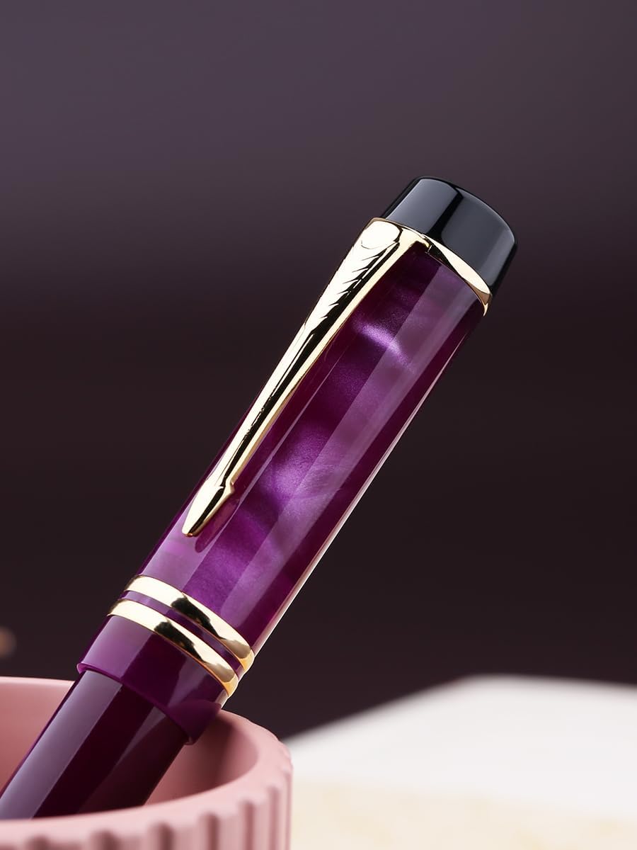 I materiali dell'impugnatura della penna sono importati, il che la rende leggera e super liscia. Questa penna utilizza una punta in iridio 35#. Può offrirti un'esperienza di scrittura perfetta, molto fluida e durevole. Design alla moda e raffinato, bellissimi colori ti danno una nuova visione. Garanzia di qualità, buon rapporto qualità prezzo. Regalo perfetto da scegliere. Lascia che accompagni la persona amata in ogni momento prezioso.