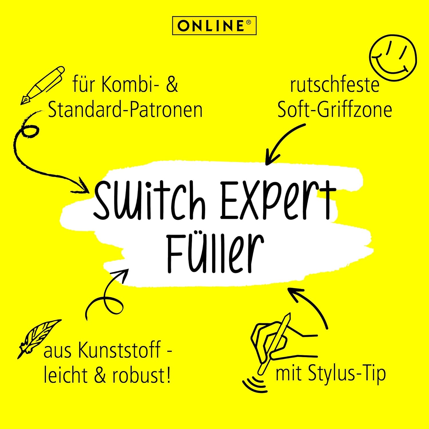 ANALOGICA E DIGITALE: Penne stilografiche scolastiche per tutte le occasioni. La pratica penna stilografica a cartuccia per scrivere su carta è dotata sul retro di una punta stilo con la quale potrai scrivere e lavorare sui display di smartphone e tablet INOLTRE PER STUDENTI: L'impugnatura è ergonomica. Insieme al pennino in iridio di alta qualità nella misura M, garantisce un'esperienza di scrittura particolarmente fluida. La penna stilografica scolastica è ideale anche per imparare a scrivere. DESIGN RIDOTTO: La penna stilografica a cartuccia è semplice e volutamente priva di clip. Ciò semplifica il passaggio tra le due funzioni. CARTUCCE STANDARD: lo strumento di scrittura multifunzione è adatto a tutte le cartucce d'inchiostro standard. Consigliamo le cartucce d'inchiostro combinate online di grande formato, compatibili anche con le penne stilografiche Lamy. MARCHIO DI QUALITÀ ONLINE: Online è un'azienda tedesca dal 1991 specializzata in strumenti di scrittura, set per calligrafia, custodie e molto altro