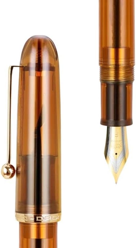 Qualità straordinaria e brillante: questa penna stilografica mostra la sua brillantezza attraverso un corpo acrilico trasparente, fornendo una sensazione lussuosa alla tua esperienza di scrittura. Varie opzioni di colore che esprimono individualità: scegli tra cinque colori di tendenza: nero, rosso-arancio, bianco porcellana, caffè trasparente e trasparente trasparente per abbinarli al tuo stile e personalità. Meccanismo di rotazione robusto e sicuro: il meccanismo di rotazione realizzato con precisione garantisce una vestibilità salda e sicura tra il corpo della penna e il cappuccio per evitare scivolamenti o perdite accidentali. Grande capacità di inchiostro per una scrittura ininterrotta: con un serbatoio di inchiostro ad alta capacità, questa penna riduce al minimo la necessità di ricariche frequenti, consentendoti di scrivere più a lungo e in modo più efficiente. Design compatto ed elegante: Rispetto alla serie 9019, la serie 9016 offre un design più compatto e sofisticato, perfetto per chi apprezza l'attenzione ai dettagli e la qualità artigianale.