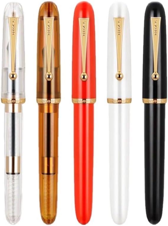 Qualità straordinaria e brillante: questa penna stilografica mostra la sua brillantezza attraverso un corpo acrilico trasparente, fornendo una sensazione lussuosa alla tua esperienza di scrittura. Varie opzioni di colore che esprimono individualità: scegli tra cinque colori di tendenza: nero, rosso-arancio, bianco porcellana, caffè trasparente e trasparente trasparente per abbinarli al tuo stile e personalità. Meccanismo di rotazione robusto e sicuro: il meccanismo di rotazione realizzato con precisione garantisce una vestibilità salda e sicura tra il corpo della penna e il cappuccio per evitare scivolamenti o perdite accidentali. Grande capacità di inchiostro per una scrittura ininterrotta: con un serbatoio di inchiostro ad alta capacità, questa penna riduce al minimo la necessità di ricariche frequenti, consentendoti di scrivere più a lungo e in modo più efficiente. Design compatto ed elegante: Rispetto alla serie 9019, la serie 9016 offre un design più compatto e sofisticato, perfetto per chi apprezza l'attenzione ai dettagli e la qualità artigianale.