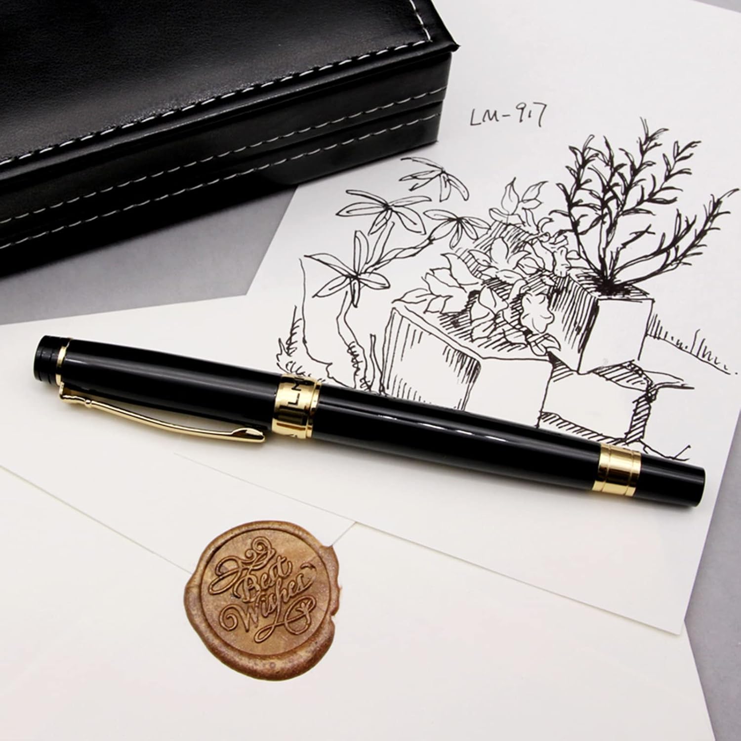 Design riempito a pistone. Design migliorato, cartuccia riempita con pistone, facilmente ricaricabile premendo/tirando il pulsante. Grande capacità di stoccaggio. Questo convertitore per penna stilografica è rimovibile per la ricarica con cartucce. Le cartucce non sono incluse. Regalo eccellente. Elegante custodia per studenti, principianti di calligrafia, scrittori, giornalisti per il Ringraziamento, Natale, Capodanno, compleanno, anniversario. La penna stilografica con riempimento a pistone ha una comoda impugnatura in metallo, punta della penna in acciaio, scrive in modo fluido, leggera ed è ideale per studenti, bambini, adulti e principianti, pratica calligrafia con punta F da 0,5 mm. Robusta punta della penna in ottone, scrive in modo fluido e continuo. Il corpo della penna lungo e ben bilanciato offre un controllo eccellente e un materiale di scrittura confortevole con una robusta clip in metallo per poterla attaccare a tasca, taccuino, blocco note. Penna da scrittura versatile. Si consiglia di abbinarli con inchiostri colorati per diari, scrapbooking, appunti, disegno, scrittura, schizzi, design artistico, firme artistiche, caratteri cinesi