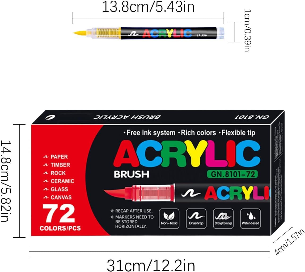 Semplice da usare: garantire una distribuzione uniforme dell'inchiostro agitare delicatamente prima dell'uso. Regola facilmente lo spessore del disegno utilizzando il nostro design a punta morbida per una vivacità del colore senza soluzione di continu Comodo da pulire: progettati per una comoda pulizia, questi pennarelli consentono di risparmiare tempo e fatica, risciacquando comodamente con acqua per la manutenzione quotidiana Ampia gamma di applicazioni: accedi a una vasta gamma di tonalità per una vivace creatività su tela, legno, pietra e artigianato, adatto a tutti i livelli di abilità di artisti Materiale a prova di sbiadimento: infusi con materiali di alta qualità, i nostri pennarelli acrilici vantano inchiostro impermeabile e resistente al sole per sostenere tonalità vivaci che non sbiadiscono facilmente Ottieni arti colorate: migliora le tue creazioni con colori vivaci che offrono una copertura forte, stratificazione senza sforzo e un effetto di colore naturale per opere d'arte incredibilmente realistiche