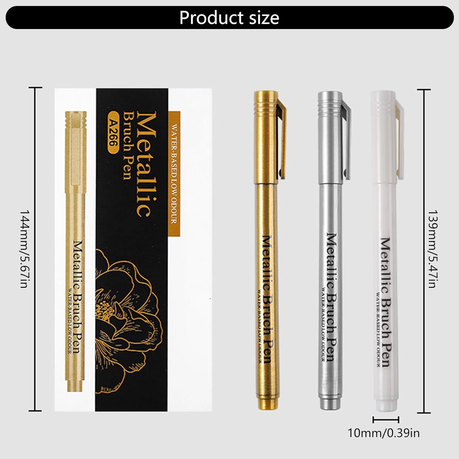 Realizzato con inchiostro colorato a base d'acqua. Questo pennarello metallico offre linee resistenti allo sbiadimento rinforzate con particelle che riflettono la luce Ampiamente usato per scrapbooking, confezioni regalo, pittura su carta, tela, tessuto, pelle, legno, vetro, pietra, con accattivante finitura metallica in studi, aule o uffici domestici Adatto per artisti, studenti, bambini, adulti e professionisti in ufficio che cercano un evidenziatore impermeabile per progetti creativi, prendere appunti o scrivere decorative L'impugnatura ergonomica e gli inchiostri ad asciugatura rapida rendono questo pennarello multiuso a vernice metallica comodo per un uso prolungato e sicuro per i bambini Vernice metallizzata scintillante penna con inchiostro resistente all'acqua e scintillanti finiture oro e argento, ideale per effetti di luce scintillanti su agende, opere d'arte, biglietti d'invito e documenti