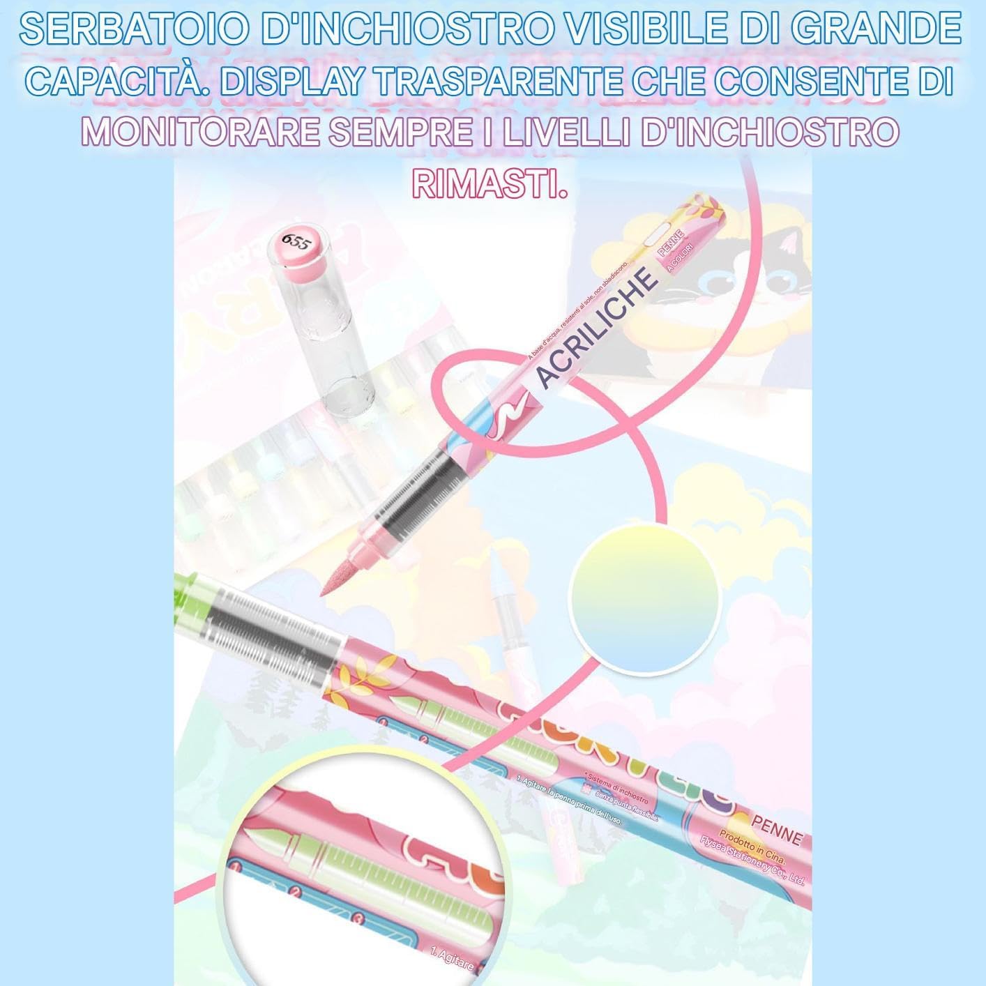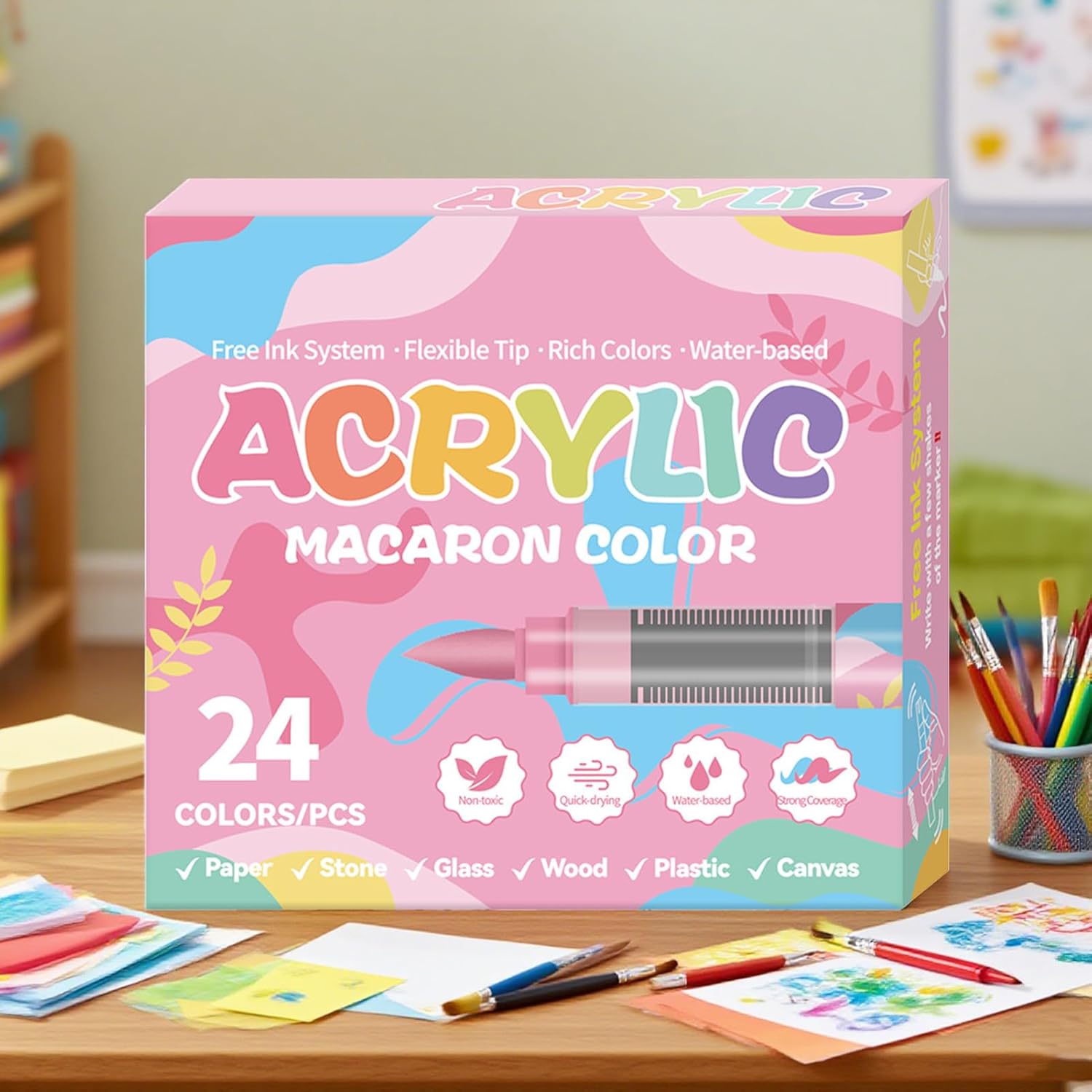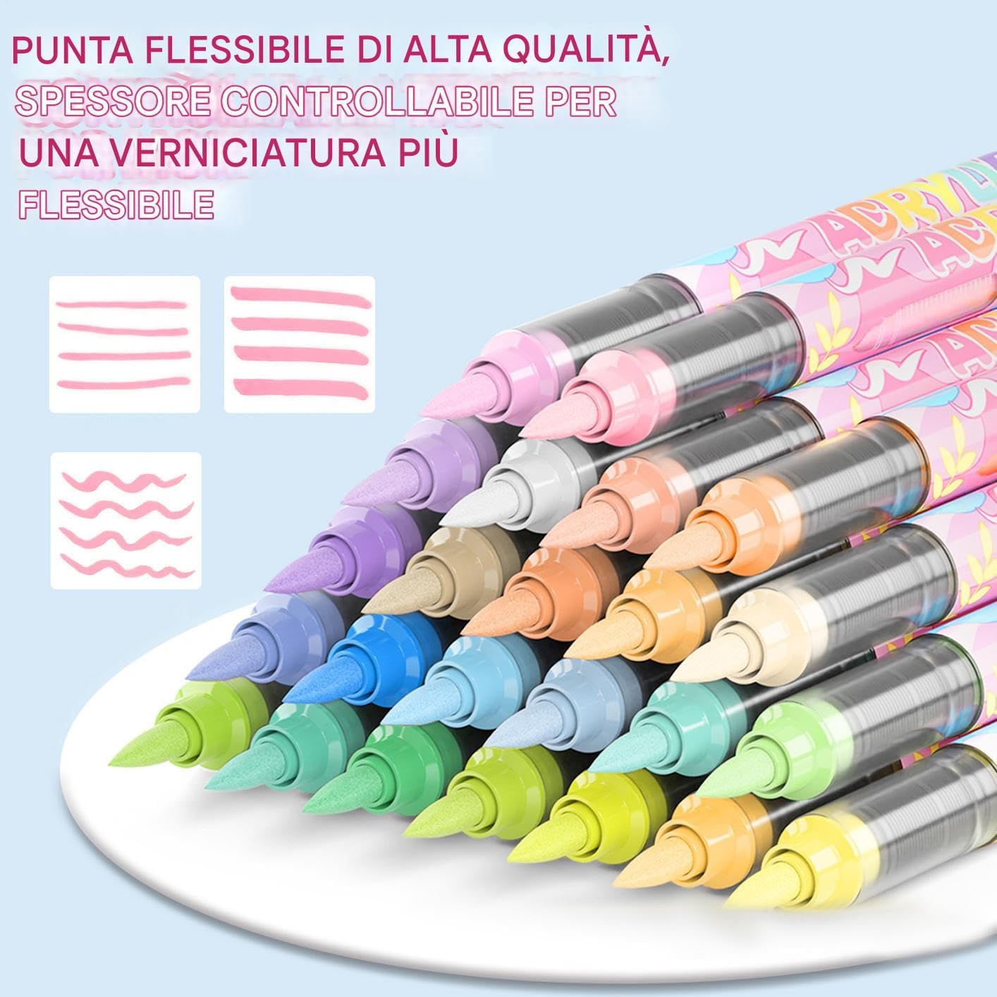 Flusso Costante: avanzato di erogazione inchiostro garantisce tratto uniforme per pennarelli acrilici, ideale per progetti creativi con massima fluidità e precisione in ogni tratto Varietà Cromatica: 24 colori acrilici intensi con toni caldi e freddi per creare perfette e transizioni graduali tramite miscelazione dei marcatori pittorici Competenze Artistiche: Eccellenti per varie attività creative, questi marcatori acrilici migliorano la percezione cromatica mentre coltivano lo sviluppo di capacità creative e potenziano la fantasia artistica naturalmente durante l'uso Adattabilità Tecnica: Gestisci spessori variabili con punta elastica e punta morbida per tecniche avanzate. Garantisce applicazione uniforme e controllo costante in ogni fase del lavoro artistico. Versatilità Multimateriale: Offrono adesione intensa su varie superfici assicurando preservazione delle opere e performance costante per progetti creativi su diversi materiali con facilità