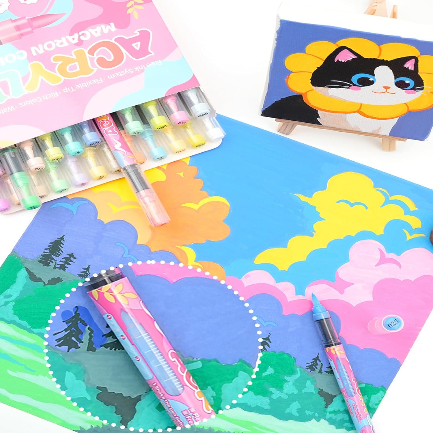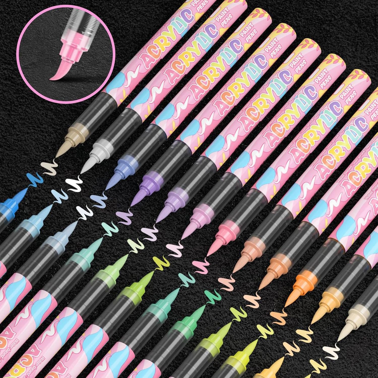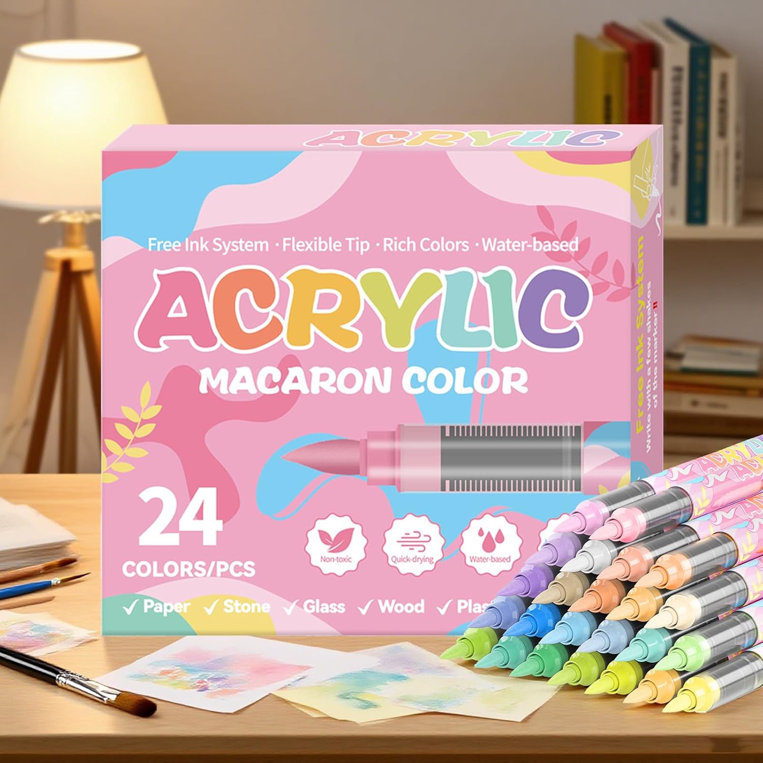 Flusso Costante: avanzato di erogazione inchiostro garantisce tratto uniforme per pennarelli acrilici, ideale per progetti creativi con massima fluidità e precisione in ogni tratto Varietà Cromatica: 24 colori acrilici intensi con toni caldi e freddi per creare perfette e transizioni graduali tramite miscelazione dei marcatori pittorici Competenze Artistiche: Eccellenti per varie attività creative, questi marcatori acrilici migliorano la percezione cromatica mentre coltivano lo sviluppo di capacità creative e potenziano la fantasia artistica naturalmente durante l'uso Adattabilità Tecnica: Gestisci spessori variabili con punta elastica e punta morbida per tecniche avanzate. Garantisce applicazione uniforme e controllo costante in ogni fase del lavoro artistico. Versatilità Multimateriale: Offrono adesione intensa su varie superfici assicurando preservazione delle opere e performance costante per progetti creativi su diversi materiali con facilità