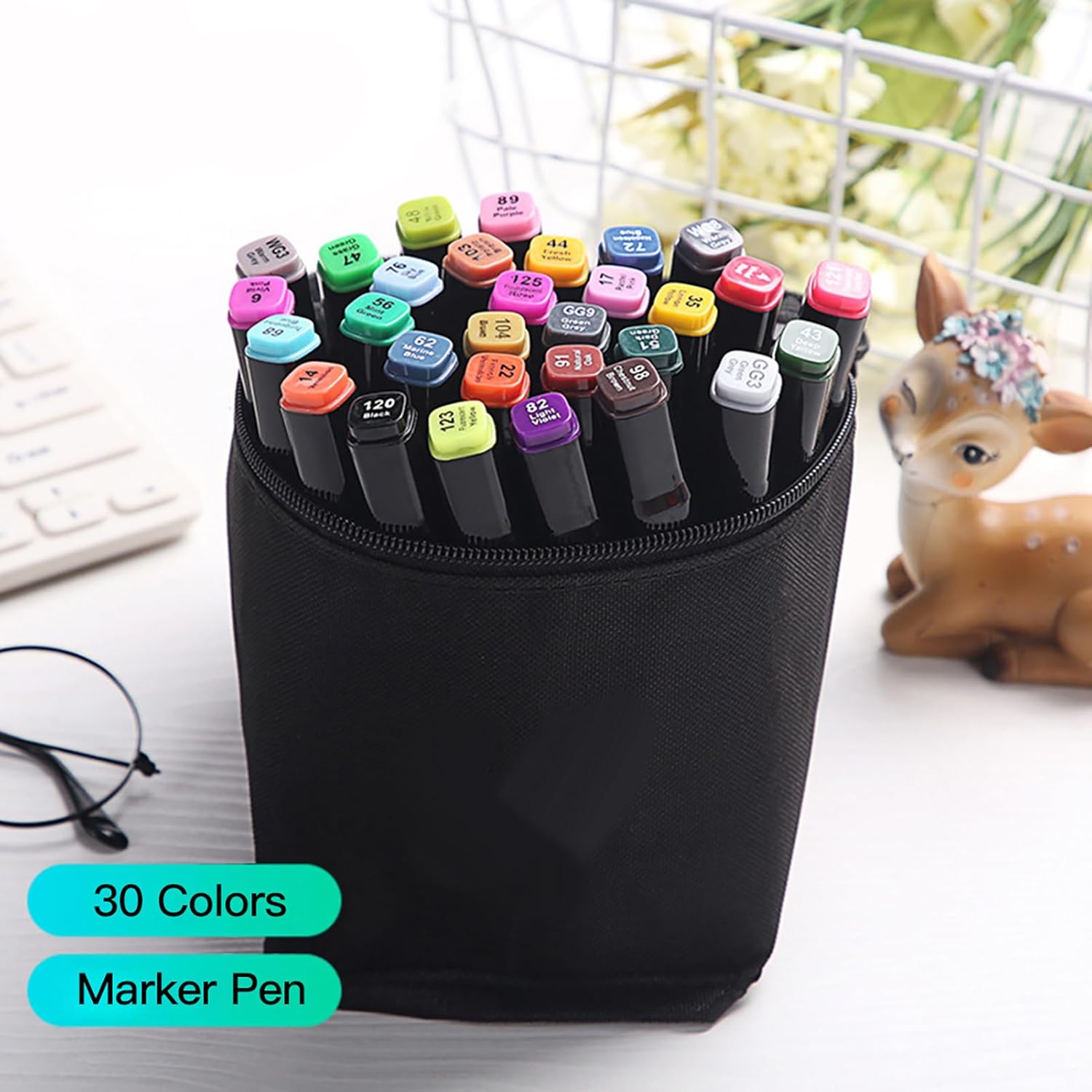 [Mescola l'inchiostro e crea facilmente effetti uniformi, colori brillanti e duraturi. [Varie opzioni di colore] 60 colori vivaci senza duplicazioni, ideali per un'ampia gamma di progetti artistici. [Uso versatile] Adatto a vari sforzi creativi come animazione, architettura, design di abbigliamento, ecc. [Design a doppia punta] Punte ampie e fini per dettagli precisi e colorazione su ampie aree. [Design ergonomico] Comodo da tenere in mano per un uso prolungato, ideale per artisti, studenti e principianti.