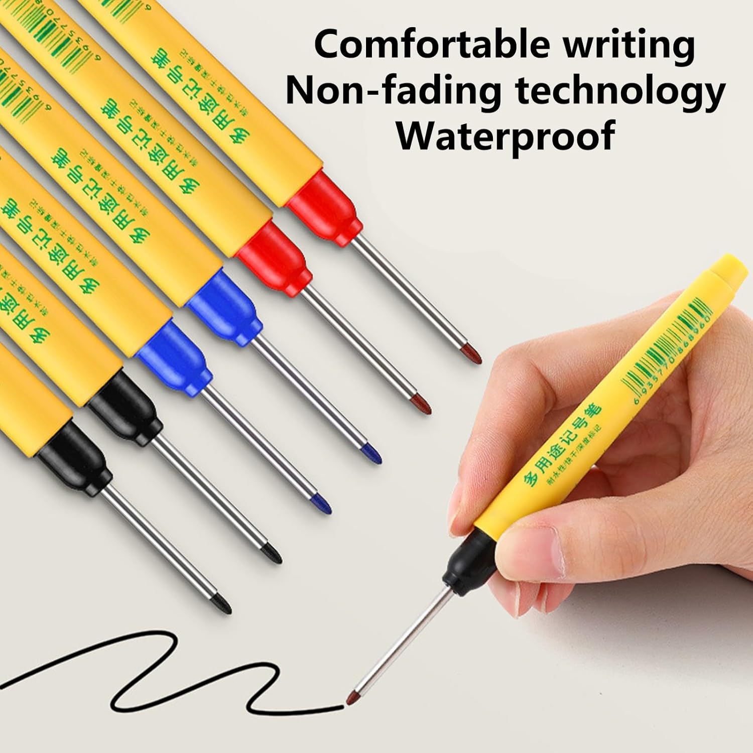 Questo marcatore pennini lunghi è asciugatura rapida e può essere applicato per varie superfici come legno, metallo, vetro e plastica Questa penna per la lavorazione del legno profondamente buca migliorerà l'efficienza del loro lavoro Penna per pennarello impermeabile con pennini lunghi 33 mm, che possono essere applicati marcatore profondamente o ovunque difficile da raggiungere La penna a base olio multifunzionale è adatta per la decorazione mobili, scaffale libri, posizione del per per segno La penna marcatura a testa lunga fornisce ai carpenteri molta più comodità