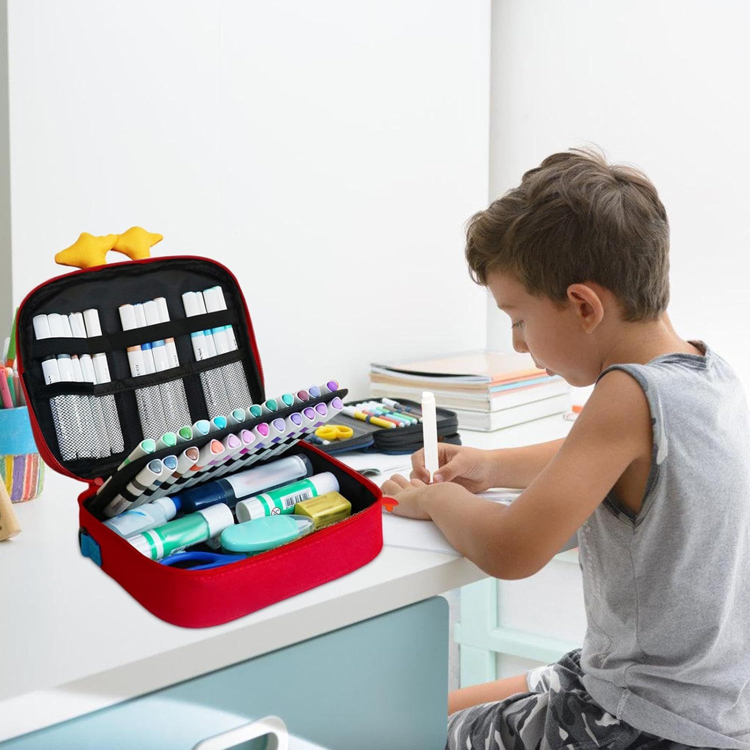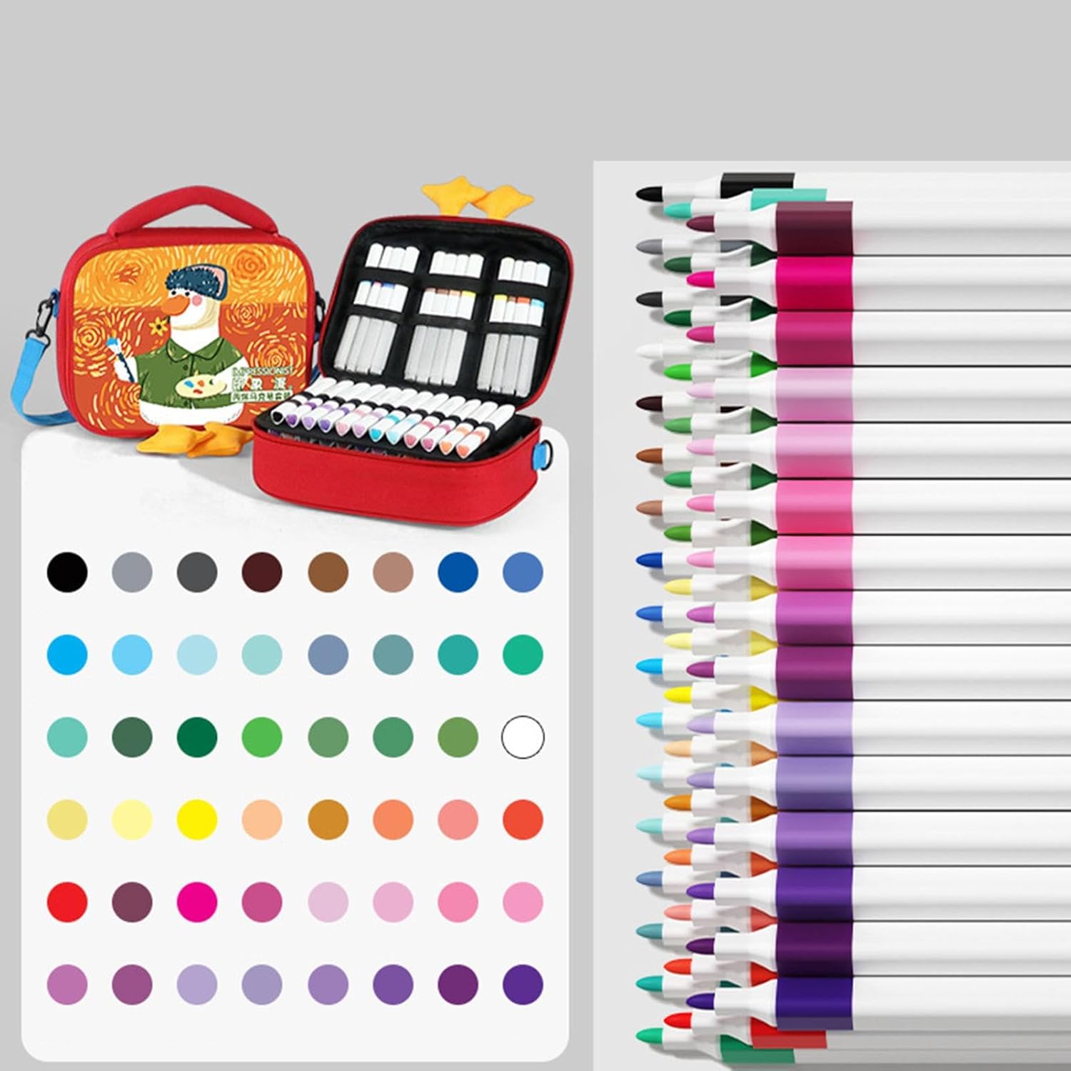 Materiale sicuro: ottieni una colorazione impeccabile con pennarelli che forniscono un buon effetto di sovrapposizione del colore, realizzati in materiale di alta qualità e riempiti con inchiostro acrilico sicuro, innocuo e di lunga durata. Design divertente: migliora la creatività dei tuoi bambini con il nostro set di pennarelli che vanta un design unico ispirato all'anatra. L'approccio divertente e creativo di questo set attirerà sicuramente l'attenzione del tuo bambino. Comodo da trasportare: la confezione portatile assicura che tutti gli strumenti da disegno siano organizzati e facilmente disponibili, rendendo la creatività all'aperto senza sforzo per i tuoi bambini. Ampiamente usato: il set di pennarelli include pennarelli con più colori, fornendo una vasta gamma di scelte di colore per le tue esigenze creative. Perfetto per vari mezzi, lascia che la tua immaginazione migliori. Regalo pratico: è il regalo perfetto per compleanni o vacanze, ispirando infinite ore di immaginazione e apprendimento coltivando le loro abilità artistiche.