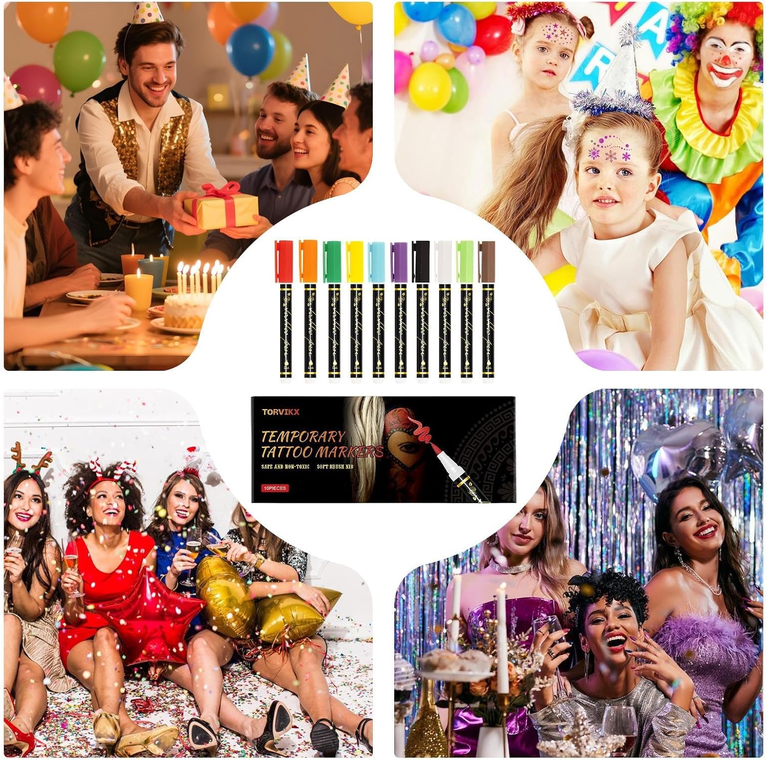 Palette Vivace: La gamma di colori vibranti del Body Marker si adatta perfettamente alle esigenze del cosplay, consentendo di generare motivi rapidi e sorprendenti che l'autenticità del personaggio con tonalità intense e di grande effetto Funzione di Miglioramento 'Atmosfera: I body marker offrono colori vivaci e saturi insieme a una riproduzione e texture, creando un'atmosfera coinvolgente durante eventi tematici e assicurando un effetto decorativo visivamente sorprendente e di qualità superiore Risparmio temporale: La progettazione user-friendly e le prestazioni affidabili accelerano il processo creativo, permettendo di completare progetti pittorici dettagliati più velocemente senza compromettere la qualità per risultati DIY ottimali Accessibilità compatta: I body marker per la pelle includono un pratico astuccio integrato che massimizza l'efficienza o spazio, garantendo portabilità per l'utilizzo in diverse situazioni e rendendo semplice organizzare e raggiungere i propri marker ovunque ci si trovi Comfort Ottimale: Realizzati con materiali ipoallergenici e delicati sulla pelle, questi pennarelli riducono il rischio di irritazioni e offrono un'applicazione facile e sicura per bambini, perfetti per creare design creativi con massima serenità durante il gioco e le occasioni speciali