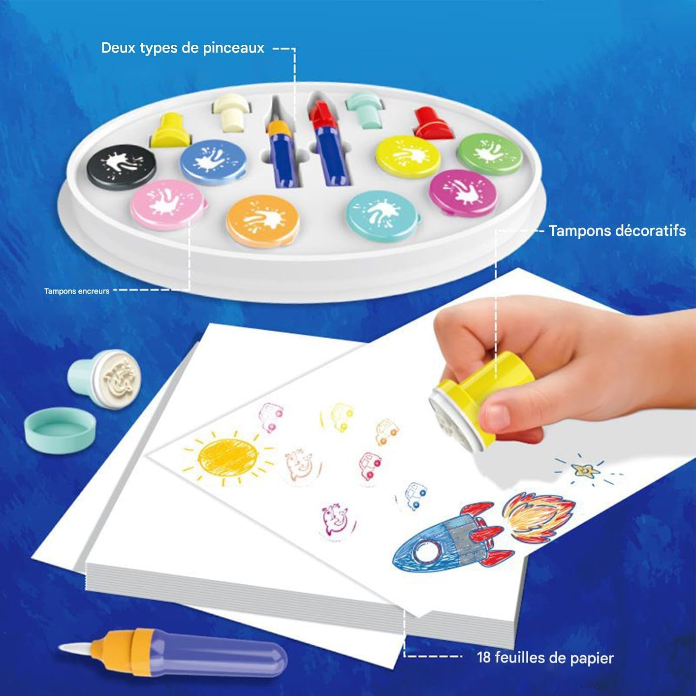 Resa cromatica perfetta: penne ad acquerello a sviluppo automatico del colore, compatibili con carte da disegno speciali sensibili alla luce o alla pressione per risultati vibranti e omogenei ad ogni utilizzo. Set creativo versatile: con le sue penne ad acquerello, pennelli colorati, custodia, set di timbri e taccuino da colorare, questo kit artistico stimola l'immaginazione e sviluppa le abilità creative in modo intuitivo e completo. Flessibilità creativa: combina la precisione della punta sottile alla libertà del pennello largo. Esplora varie tecniche facilmente con pennelli sostituibili un'espressione artistica duratura. Versatilità artistica: padroneggia diversi stili artistici grazie ai disegni spontanei, ai timbri giocosi e alle molteplici opzioni di colore dei pennarelli acquerellabili Sicurezza avanzata: queste penne a pigmenti solidi idrosolubili prevengono perdite di inchiostro, offrendo un'esperienza creativa fluida dando priorità alla protezione dell'utente durante i progetti artistici