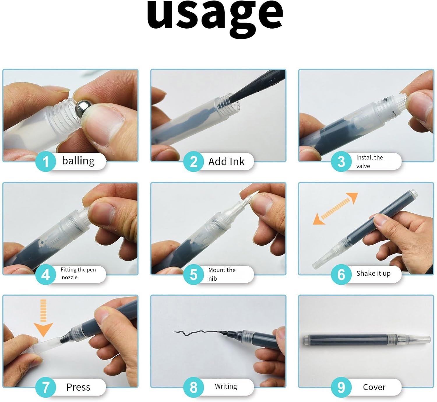 Ricarica facile. Basta rimuovere la punta della penna per riempire la vernice acrilica, la pittura ad acquerello o l'inchiostro liquido e rimettere a posto la punta della penna. Potresti iniziare a dipingere. All'interno della penna sono presenti sfere in acciaio per miscelare gli inchiostri per evitare la solidificazione dell'acquerello o della vernice. Realizzato in polipropilene, scrive senza intoppi, non si rompe o deforma facilmente, lunga durata. Punta morbida del pennello che garantisce scrittura e disegno fluidi. Tubo della penna trasparente per controllare la quantità di inchiostro e ricaricarlo in tempo Ideale per artisti professionisti, insegnanti, studenti, impiegati e hobbisti che necessitano di uno strumento di scrittura e disegno multifunzionale per le loro attività creative e professionali Molto adatto per scrivere, diario, creazione di biglietti, scrapbooking, pittura acrilica, pittura ad acquerello, creazione di poster o disegno artistico. Versatile per scuola, ufficio, studi d'arte, scuola a casa, scuola materna Scopri la versatilità del nostro pennarello pennarello vuoto ricaricabile, molto adatto per creare opere d'arte uniche su carta, legno, abbigliamento, tessuto, pelle, tela, metallo, ceramica, vetro, pietra e altro ancora