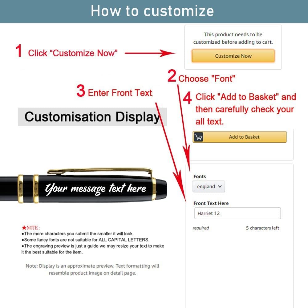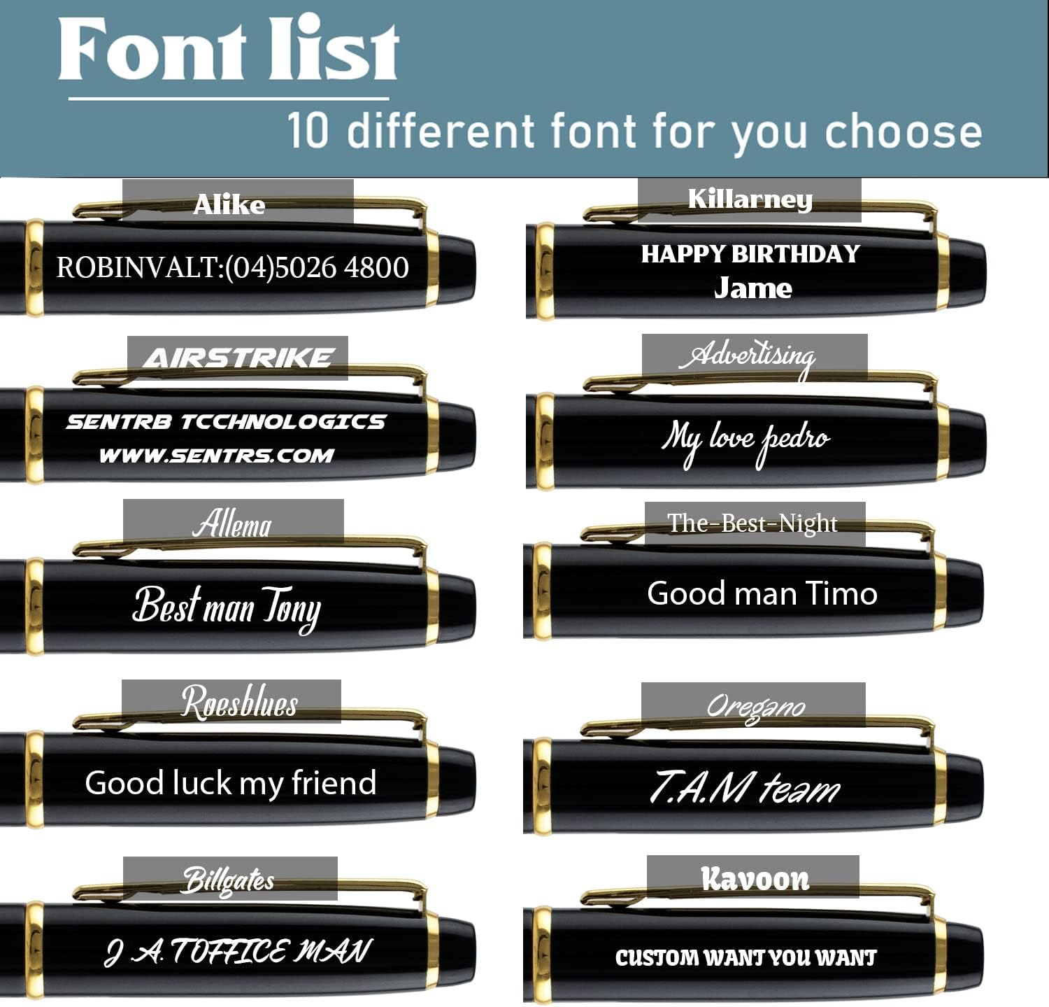 Penne a sfera moderne ★ Personalizziamo ogni ordine di penna in casa. Tutte le nostre penne sono garantite per scrivere bene e avere un bell'aspetto. Le penne personalizzate metalliche Legacy lasceranno sicuramente un'impressione duratura su coloro che le ricevono; bel regalo per il nostro capo, famiglia, amici, marito o moglie. Ogni penna ha un'azione a clip reattiva, una canna con finitura brillante e un inchiostro nero ultra liscio. Personalizzazione gratuita ★ Puoi avere fino a 50 caratteri (compresi gli spazi) su ogni linea, fino a 2 linee personalizzate sono gratuite. usiamo la tecnologia dell'incisione laser per incidere il testo sulla penna senza sbiadire. Finché fai clic sull'opzione "Personalizza", puoi personalizzarla facilmente. Bellissimo aspetto, adatto come regalo. Fantastico regalo: questa penna è perfetta per ogni occasione, festa o evento. Fai un ottimo regalo accattivante per i tuoi colleghi, le tue infermiere, tua moglie, tua figlia, convenzioni e molto altro ancora. Corpo in metallo di qualità Moderno, di classe e funzionale. Cartuccia di scrittura a inchiostro nero ultra liscia garantita con una struttura in metallo resistente, finitura luminosa e colorata. Ottieni la nostra penna in metallo resistente con un prezzo economico. Servizio clienti★ Spediremo le penne entro un giorno lavorativo dalla ricezione dell'ordine. Il tempo di consegna è di 8 -14 giorni. Se la penna è danneggiata durante il trasporto o ha problemi di qualità. Ci contatti per favore. Risolveremo il problema per te il prima possibile finché non sarai soddisfatto.