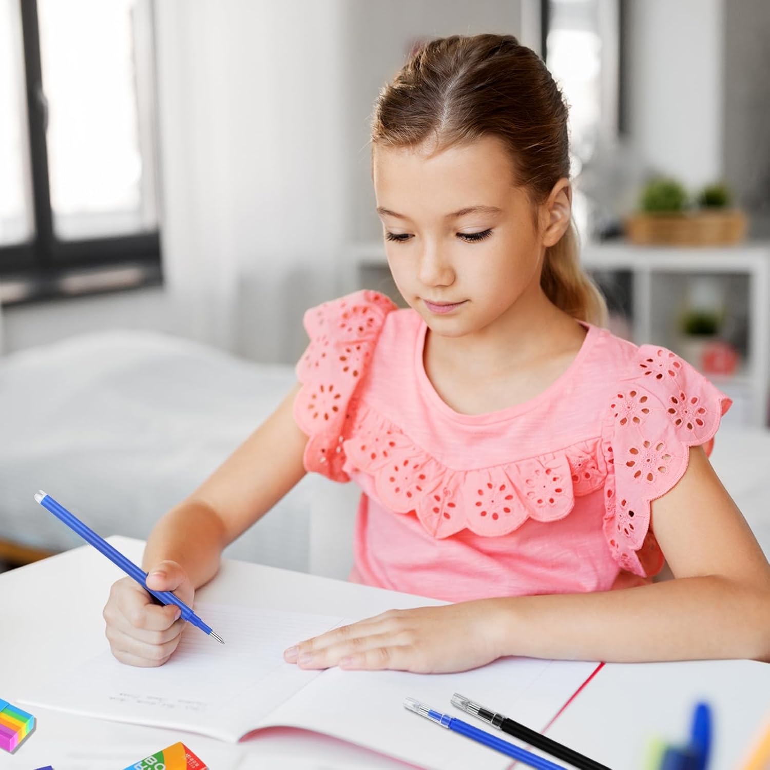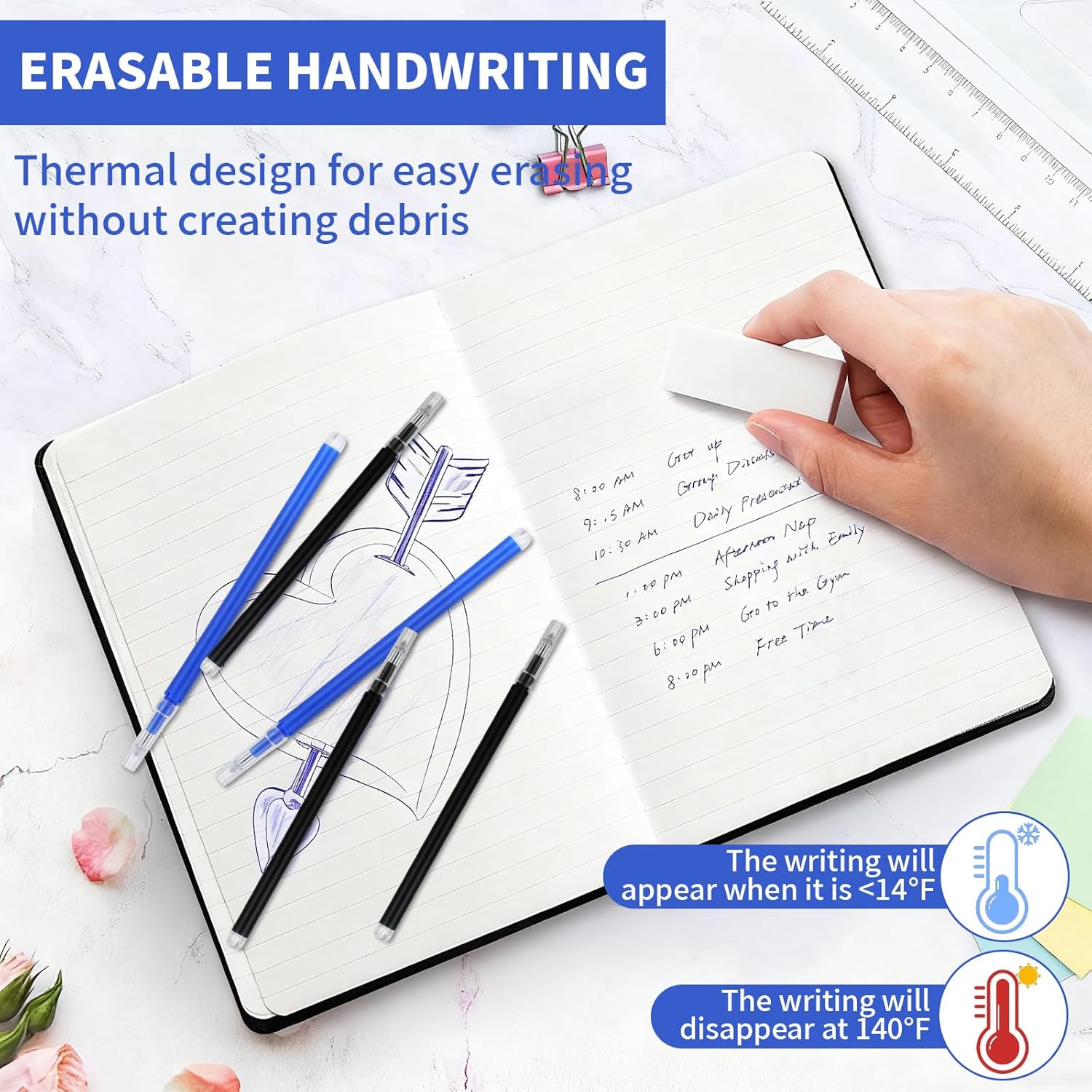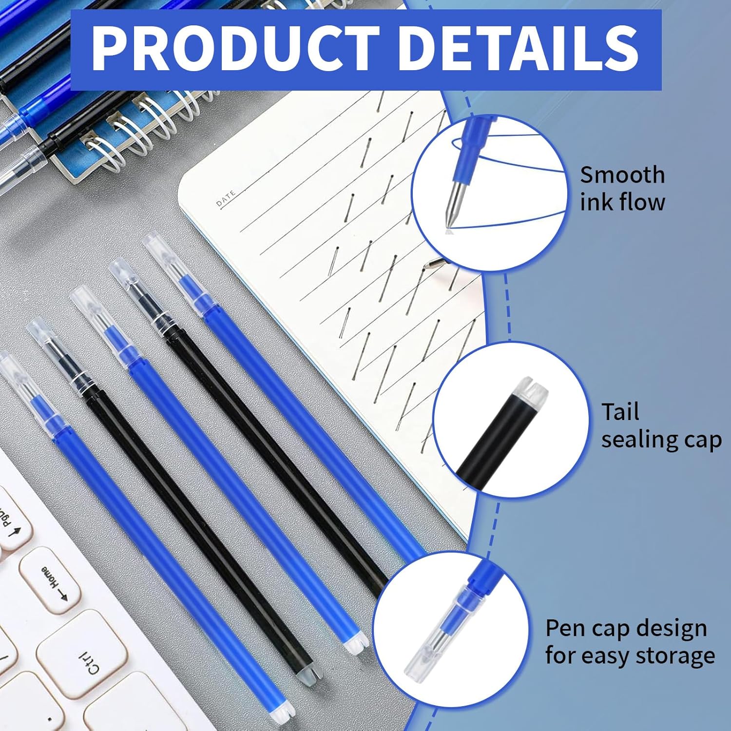 Ecologico ed Economico: Ricariche cancellabili è realizzato in plastica. Guscio in plastica della ricarica deve possedere un certo livello di resistenza meccanica per proteggere la struttura dell'inchiostro al suo interno. Ricariche è progettato per resistere alla pressione e agli urti dell'uso quotidiano, come lo schiacciamento contro altri articoli di cancelleria in borsa o cadute accidentali, senza rompersi o perdere. Inoltre, la sua adeguata durezza impedisce alla ricarica di deformarsi a causa della forza esercitata durante la presa sul fusto della penna, garantendone così il normale utilizzo e la lunga durata Scrittura Fluida: Ricariche cancellabili offre un'esperienza di scrittura eccellente. La fluidità dell'inchiostro è moderata, garantendo un flusso uniforme senza rotture o accumuli. Che si scriva quotidianamente, prendendo appunti velocemente o per periodi prolungati, mantiene un'esperienza di scrittura fluida. Anche il pennino di ricarica penna è accuratamente lucidato, garantendo un attrito perfetto con la carta, garantendo una scrittura fluida e confortevole, senza affaticamento anche dopo un uso prolungato Vari Colori: Refill per penna gel cancellabile è disponibile in una varietà di colori. Dai comuni nero, blu e rosso a colori vivaci come verde, viola e arancione, le cartucce d'inchiostro refill penne a sfera possono soddisfare le esigenze di diversi utenti e situazioni. Per gli studenti che prendono appunti, l'utilizzo di colori diversi per evidenziare i punti chiave e distinguere le diverse aree tematiche rende gli appunti più chiari e organizzati. I designer possono anche utilizzare le cartucce riutilizzabili multicolore per esprimere al meglio le proprie idee progettuali durante schizzi e annotazioni di dettagli, semplificando la modifica e il perfezionamento dei progetti Facile da Cancellare: le scritte su penne gel cancellabili sono facilmente cancellabili. Questo grazie alla speciale formula dell'inchiostro, che scompare rapidamente utilizzando la gomma o lo strumento abrasivo inclusi. Ad esempio, nel lavoro d'ufficio quotidiano, dati errati o proposte riviste possono essere facilmente cancellati e riscritti, eliminando la necessità di antiestetiche sovrapposizioni e correttori liquidi, che possono danneggiare la carta. Penne con cartuccia cancella senza danneggiare la carta, rendendolo comodo e pratico Compatibile: Penne cancelline offre un'eccellente compatibilità. Può essere installato con una varietà di fusti di penna, da quelli in plastica semplice a quelli in metallo di alta qualità. Purché le dimensioni siano adatte, può essere installata e utilizzata. È possibile utilizzare penne cancellabili di marche diverse, purché le specifiche siano conformi agli standard. Questa ampia adattabilità consente di scegliere il corpo della penna in base alle proprie preferenze, senza preoccuparsi che la ricarica acquistata non sia utilizzabile, il che aumenta la flessibilità e la praticità d'uso