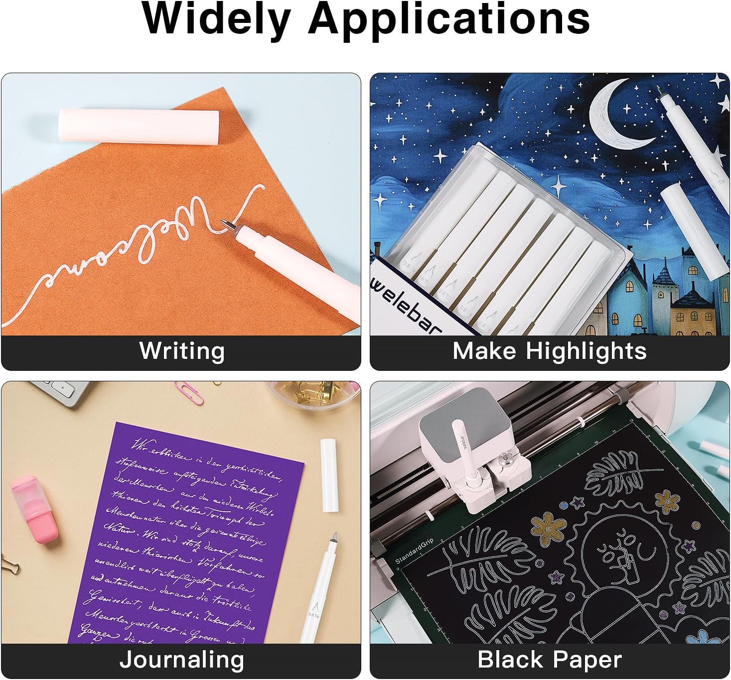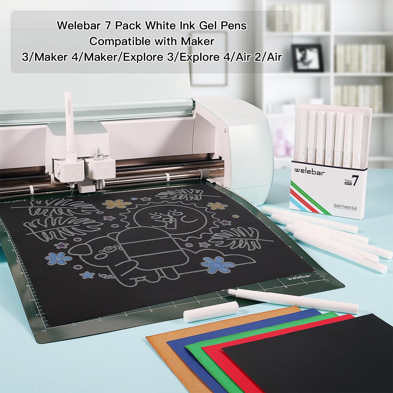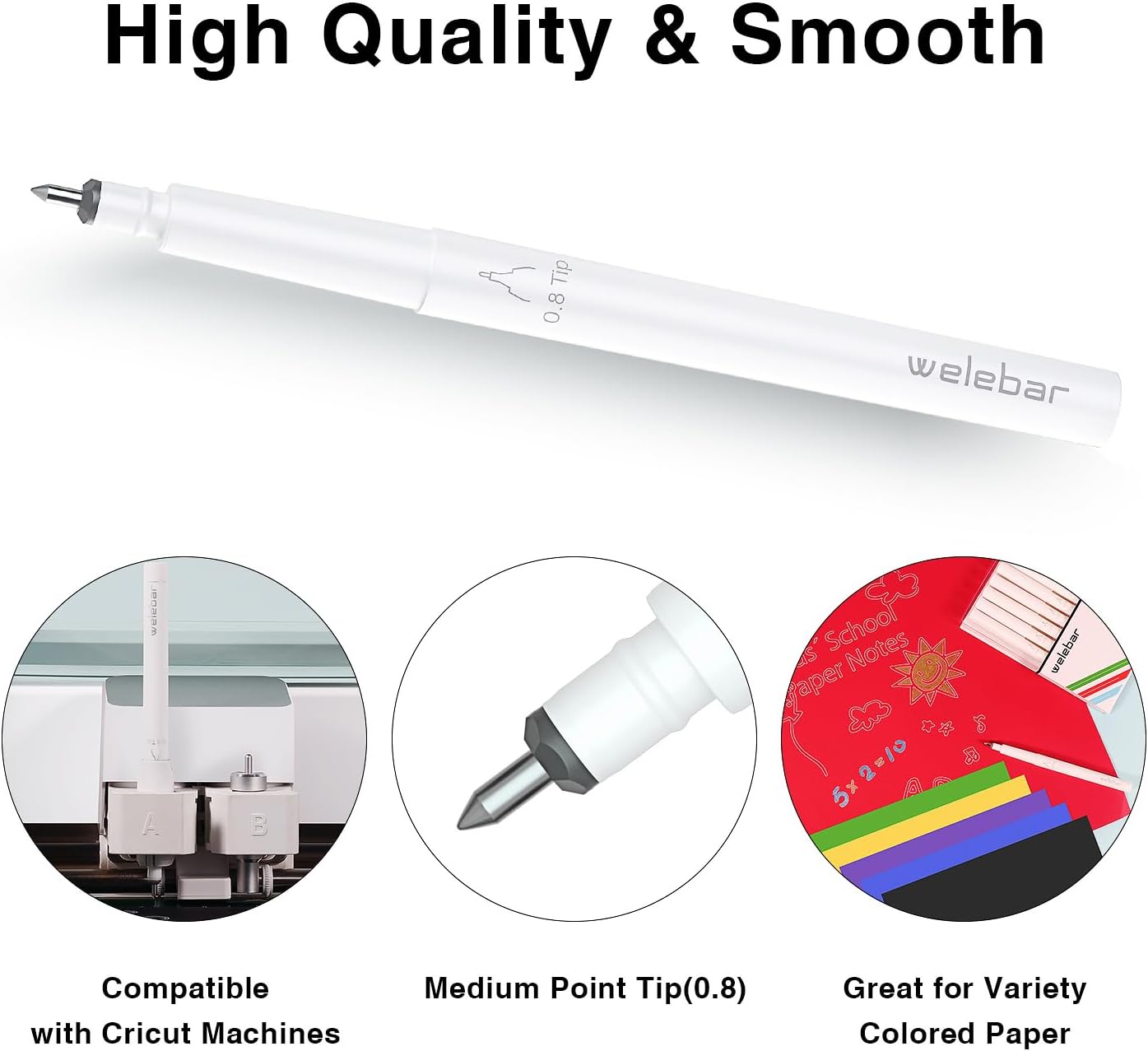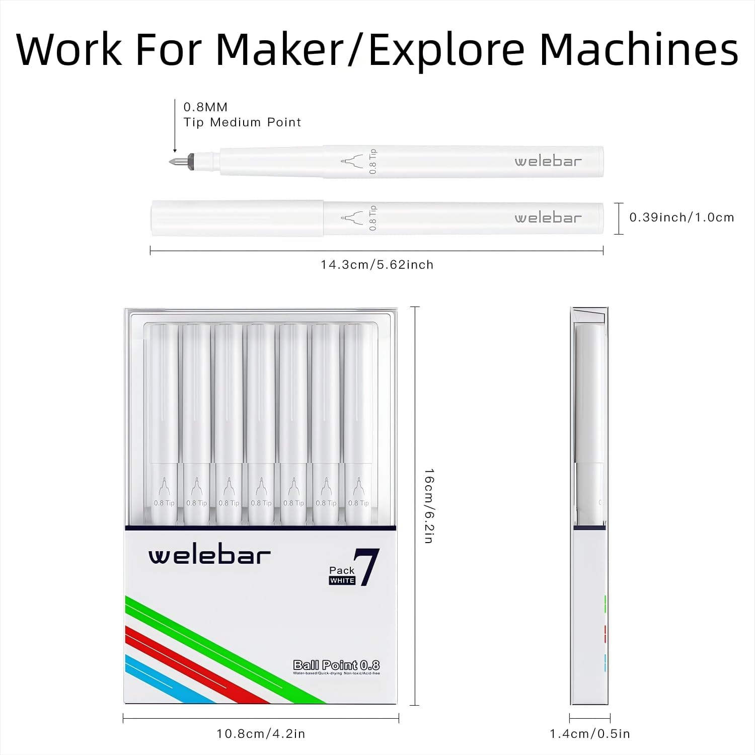 Penne gel bianche di alta qualità per CRICUT: Welebar offre una confezione da 7 penne gel con punta da 0,8 mm, con colori vivaci, perfettamente adatte per Cricut Maker 3, Maker, Explore 3, Air 2 e Air. Punta versatile da 0,8 mm: progettata per precisione e adattabilità, questa confezione da 7 penne a inchiostro bianco di alta qualità presenta una punta da 0,8 mm che offre linee nitide e incontaminate. Ideali per disegni intricati, ortografia precisa e progetti di evidenziazione, queste penne forniscono il controllo e la coerenza necessari. Inchiostro bianco vivace: il sorprendente inchiostro bianco è progettato per distinguersi su sfondi scuri e colorati, creando un contrasto audace che migliora l'aspetto estetico del tuo lavoro. Compatibilità senza sforzo: ogni penna è perfettamente compatibile con le macchine Cricut, eliminando la necessità di adattatori. Utilizza queste penne per calligrafia, disegno manuale e illustrazione per aggiungere punti salienti accattivanti e dettagli intricati. Comoda soluzione di conservazione: la confezione da 7 penne a inchiostro bianco a punta media Welebar è ben confezionata in scatole di plastica, ideali per l'uso quotidiano e il trasporto. Suggerimento: per prolungare la durata delle penne, assicurarsi che la punta sia coperta con il cappuccio quando non in uso.