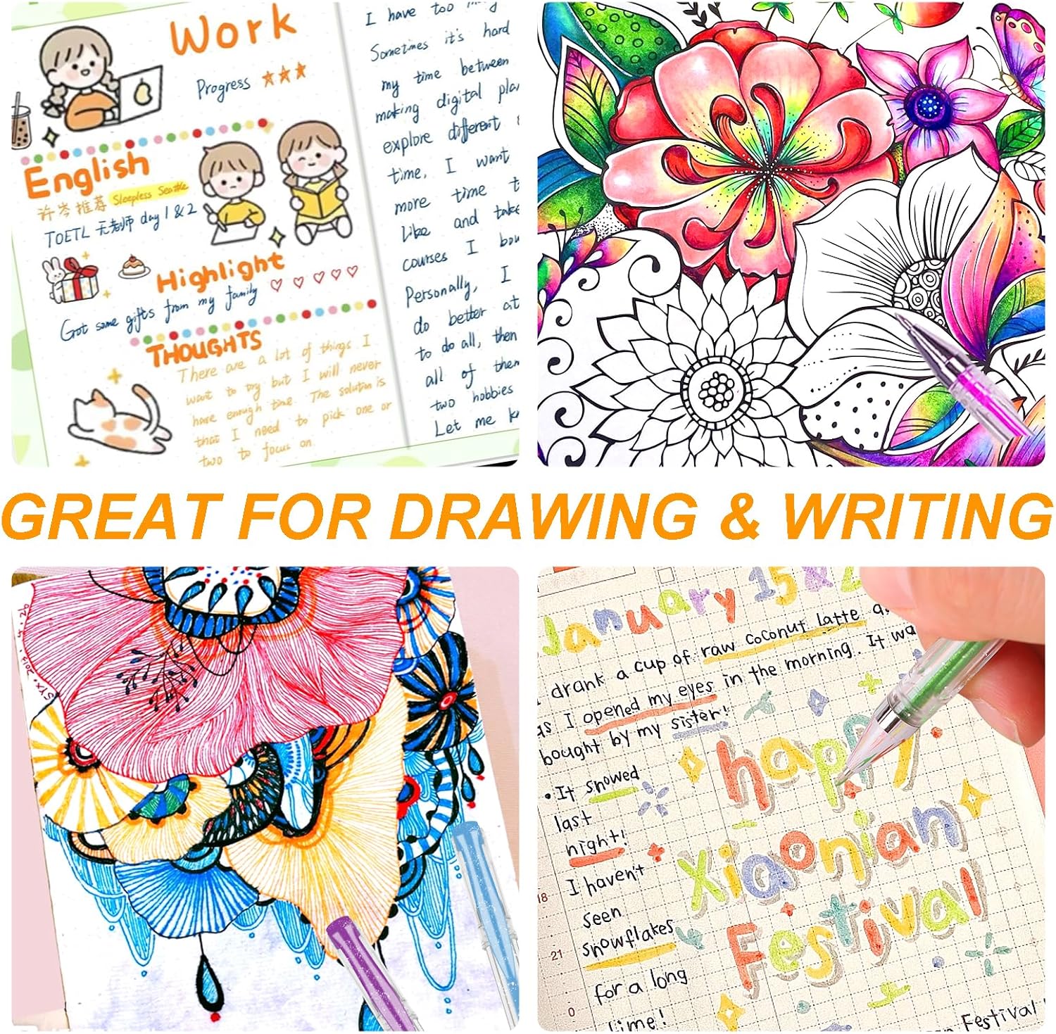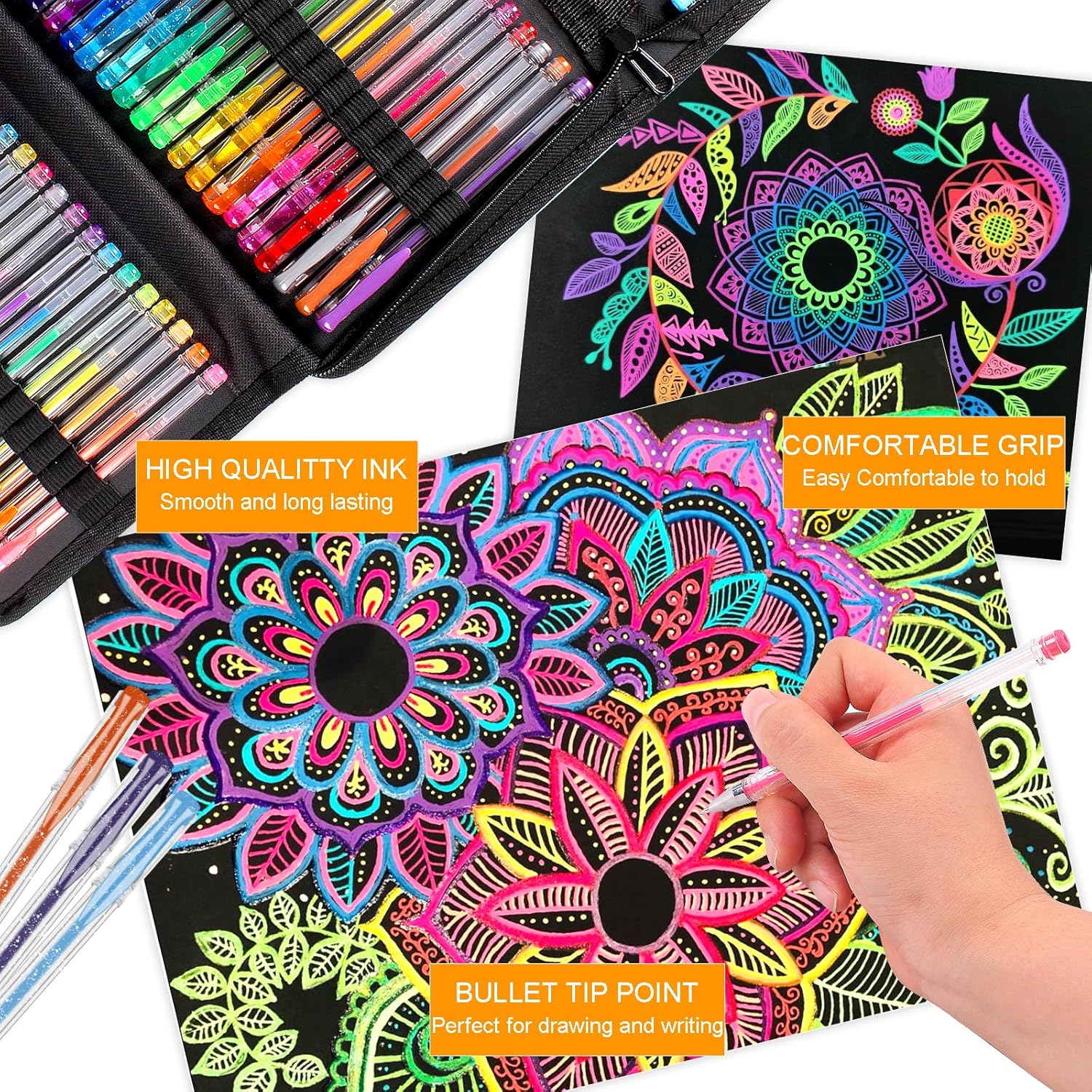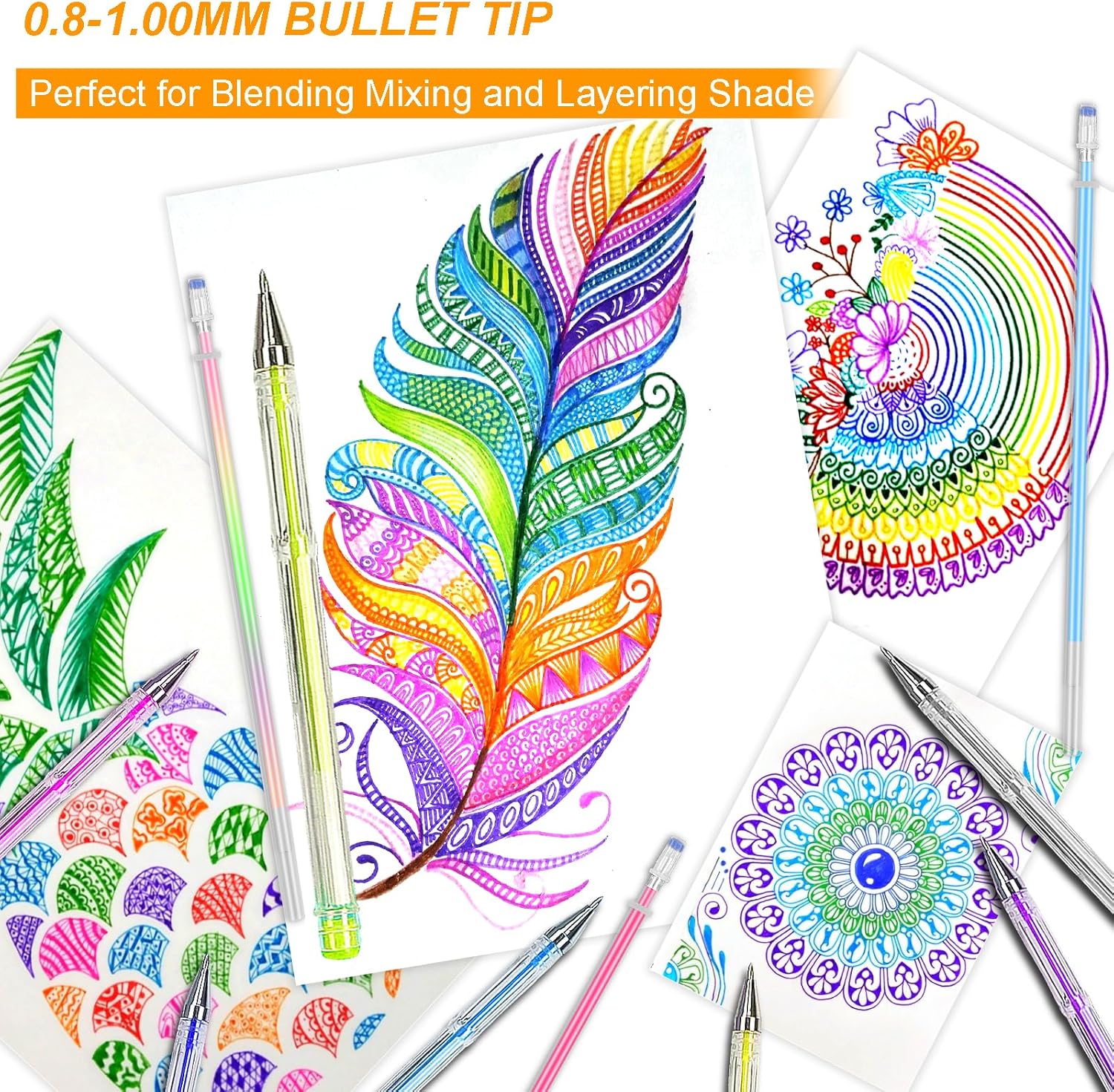 ✿160 Set Penne Colorate: Il nostro penne gel colorate comprende 80 gel pen e 80 ricariche, tra cui inchiostro glitterato, metallizzato, pastello e neon, offrendo una gamma completa per designer, artisti, sognatori e amanti del fai da te. Le penne colorate gel sono dotate anche di un libro da colorare per un uso prolungato e divertente. ✿Scrittura Fluida & Precisa: Con punte a sfera da 0,8 mm a 1,0 mm, le penne colorate glitter offrono un'esperienza di scrittura fluida e accurata senza sbavature, colature o macchie. Le penne colorate gel gel faranno risaltare il tuo diario, disegni e libri da colorare. ✿Inchiostro di Alta Qualità & Lunga Durata: Le penne gel contengono il 15% di inchiostro in più rispetto alla maggior parte delle penne gel colorate, garantendo sessioni creative durature.Set penne colorate sono conformi alla norma ASTM-D4236 e l'inchiostro è atossico, privo di acidi e ad asciugatura rapida, rendendolo perfetto per bambini, adulti e vari progetti di artigianato. ✿Applicazioni Versatili: Le penne colorate gel possono essere utilizzate su varie superfici come carta, cartoncino e persino tessuti. Le penne glitterate colorate sono perfette per diverse applicazioni artistiche, tra cui bullet journaling, schizzi, disegni, libri da colorare, scrapbooking, progetti scolastici, decorazioni fai-da-te e altro ancora. ✿Impugnatura Confortevole & Confezionamento Premium: Ogni penne gel colorate è dotata di un'impugnatura confortevole per un uso senza sforzo durante lunghe sessioni creative.Set penne colorate viene fornito in una custodia nera impermeabile, rendendolo un ottimo regalo per artisti, studenti e appassionati di artigianato, e adatto per l'uso a casa, a scuola o in viaggio.