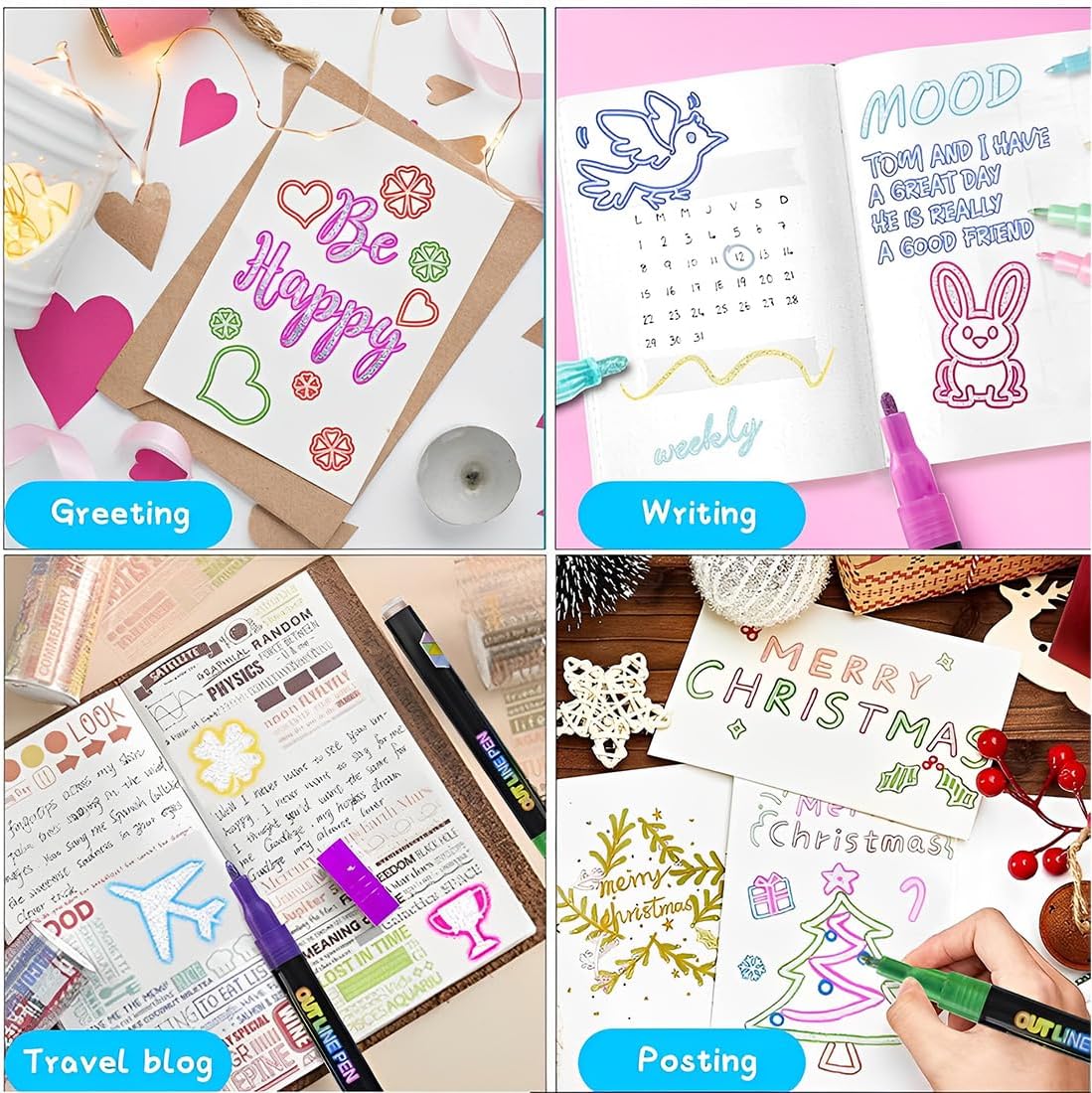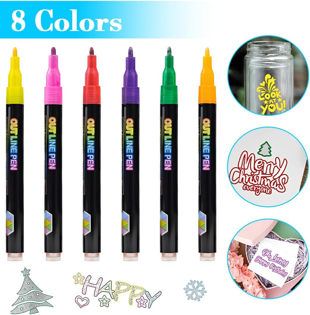 🎨 [ Idee Regalo Bambina ] - XURJUMI Penne Glitterate Colorate sono il miglior regalo per bambini. Idea regalo ideale per Regalo Pasqua, ingresso scolastico, festa dei bambini, Regali Natale, regalo compleanno per bambini e calendari dell'avvento per ragazze! I bambini adoreranno disegnare con le matite XURJUMI Glitter, creano sempre incredibili opere d'arte con le matite colorate. 🎨 [ Tre effetti di scrittura ] - Le nostre penne magiche hanno un'esclusiva funzione automatica a doppia linea. Scrivendo su carta leggera e bianca, puoi disegnare due linee contemporaneamente, argento metallizzato e colorate. Dipingi su carta scura/nera, mostra solo colori argento. Se dipingi su una superficie liscia, mostrerà solo la vernice colorata. 🎨 [ Contorno metallico unico ] - 8 colori brillanti con doppia linea ed effetto glitter. Tutti i colori scivolano dolcemente sulle penne con punta in fibra doppia linea. La tecnologia unica crea automaticamente i contorni, puoi vedere il vibrante argento metallico circondato da frange colorate per creare un bellissimo effetto bicolore. 🎨 [ Ampiamente usato ] - Le penne magiche sono adatte per l'artigianato fai-da-te come album fotografici, album di ritagli, biglietti di Natale, carte regalo di nozze, scrapbooking, anche per quasi tutte le superfici come pietra, legno, vetro, metallo, plastica, lavagna e ceramica. Questi 8 pennarelli aggiungono un brillante abbellimento a vari mestieri. 🎨 [ Sicure e non tossiche ] - Le nostre penne glitter sono realizzate con inchiostro a base d'acqua, appositamente progettato con pennino in nylon ultra fine che è extra resistente all'usura e alla pressione, consentendo una scrittura fluida. Privo di acidi, atossico, impermeabile, ecologico, asciuga rapidamente e ha una finitura lucida. Adulti e bambini possono usarlo con sicurezza.