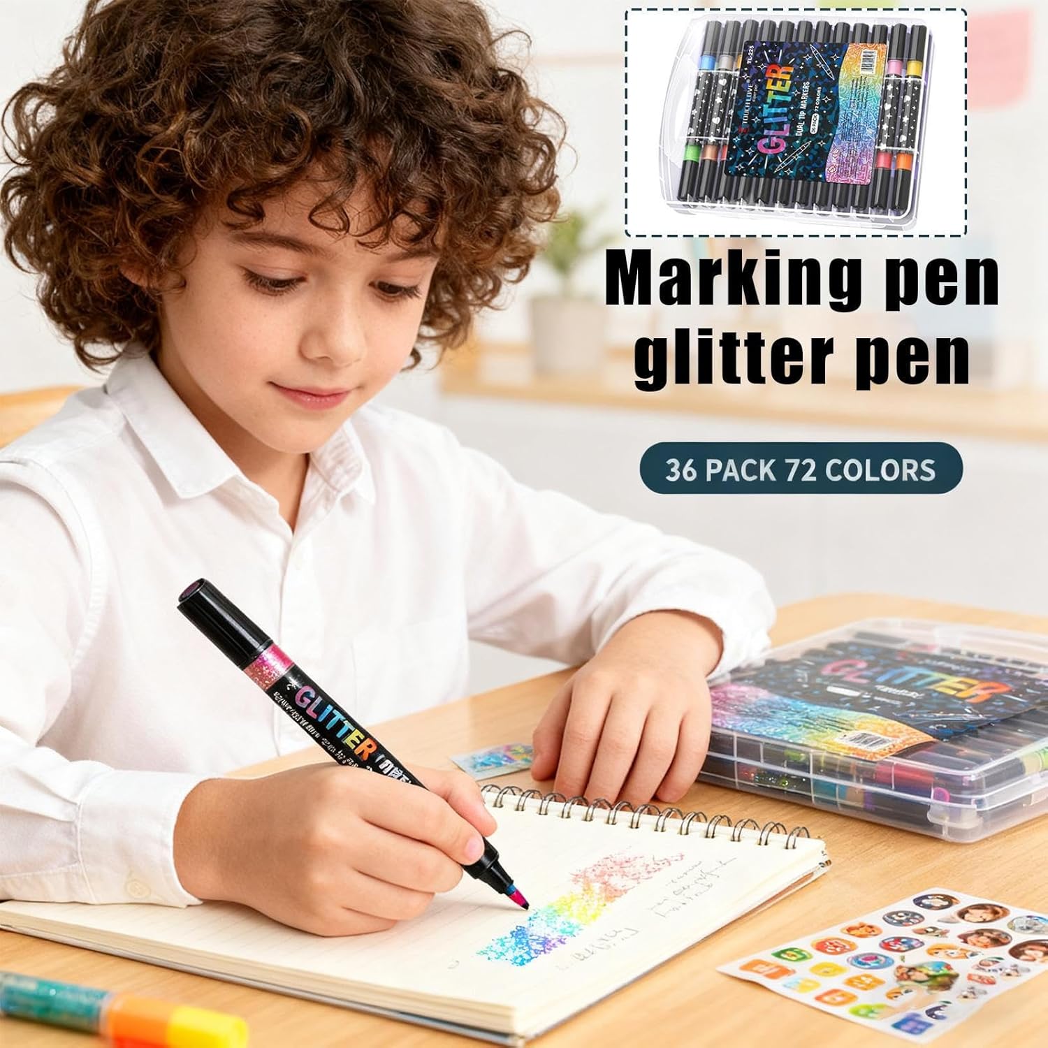 Flessibilità artistica a due punte: le penne glitterate offrono un design scintillante a due punte che supporta riempimenti ampi e dettagli fini, consentendo agli utenti di creare opere d'arte vivaci senza sforzo; ideali per creare biglietti e pagine di scrapbooking con un fascino visivo abbagliante Effetto lucido accattivante: realizzate con eccellente inchiostro acrilico ad alta purezza e particelle riflettenti, le nostre penne gel glitterate offrono una finitura coerente e vibrante che resiste allo sbiadimento, adatte per abbellire decorazioni per feste o scelte di personalizzazione Formula ad asciugatura rapida: le penne gel scintillanti sono progettate con inchiostro liscio ad asciugatura rapida per eliminare sbavature e sbavature di carta, fornendo funzionalità per l'uso quotidiano a scuola, lavoro aziendale o attività artistiche Creatività di lunga durata: queste penne glitterate per artigianato sono costruite con un robusto fusto in PP e punte di precisione progettate per resistere a cadute e vibrazioni, rendendole ideali per attività artistiche dettagliate come decorazione di diari o progetti fai da te senza interruzioni dovute all'usura Ampie applicazioni: le penne glitterate offrono un'eccellente copertura e brillantezza, perfette per educazione artistica, confezioni regalo e oltre, consentendo ai creatori di aggiungere dettagli accattivanti a biglietti fatti a mano, progetti scolastici o decorazioni stagionali con un'applicazione fluida e risultati coerenti