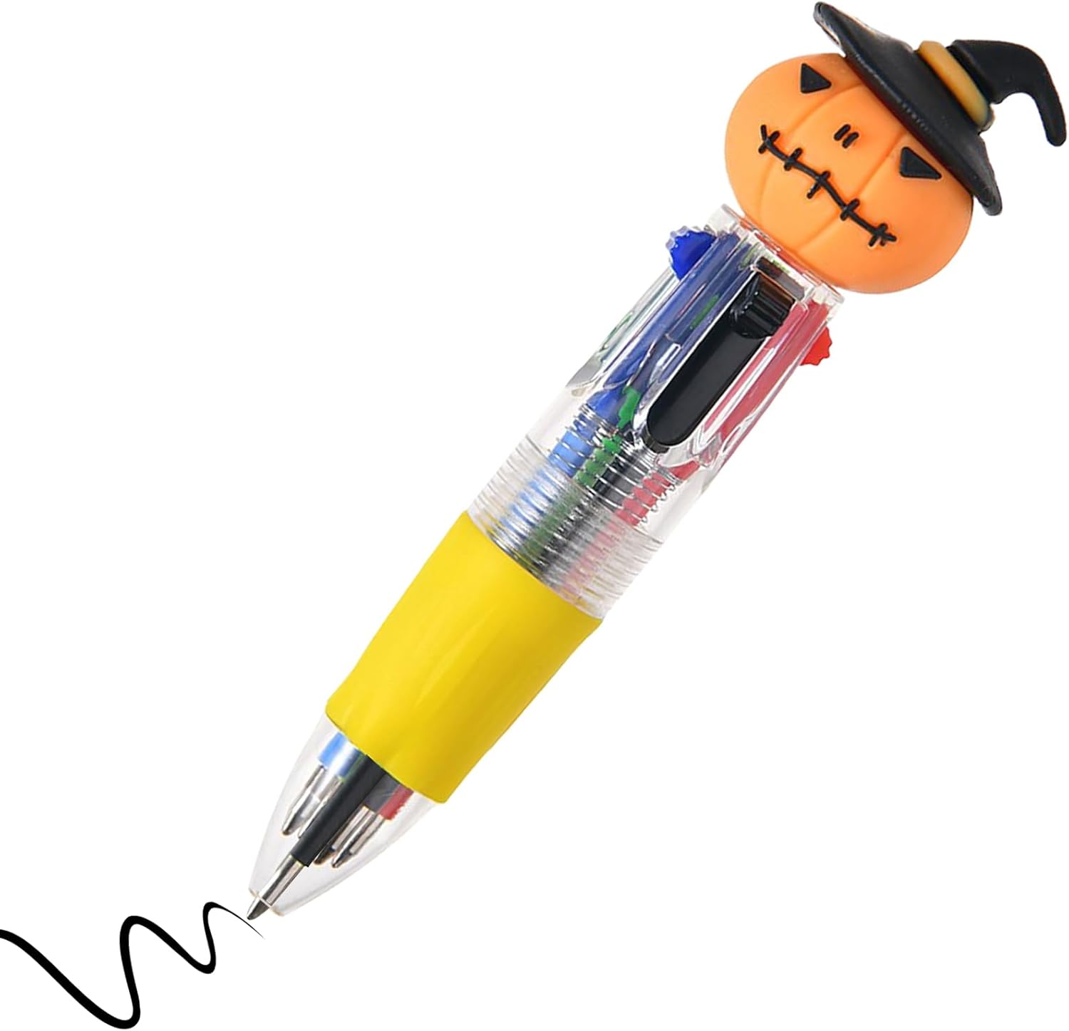 Design festivo della penna: adorabili motivi di zucca e fantasma combinati con colori vivaci e giocosi portano uno spirito allegro di Halloween, offrendo uno strumento di scrittura divertente e coinvolgente perfetto come regalo per i bambini durante le festività natalizie Penna multifunzione: combinando scrittura e disegno, questa penna a colori 4 in 1 aumenta l'efficienza di apprendimento con una facile rotazione del colore per un uso senza interruzioni come strumento di cancelleria multiuso Design ergonomico e confortevole: incoraggia una presa corretta con superfici ruvide antiscivolo, riducendo l'affaticamento di scrittura per bambini e adulti, garantendo al contempo un equilibrio leggero e una facilità d'uso a misura di bambino Prestazioni affidabili: design resistente agli urti e alla pressione, abbinato a un involucro rinforzato, supporta transizioni multicolore fluide e resiste a frequenti manipolazioni per lunghi periodi Elegante regalo ricordo: con il suo design elegante su misura per la presentazione, questa penna multicolore si distingue come un regalo caldo e significativo, rendendolo adatto per compleanni, pietre miliari scolastiche e opportunità memorabili allo stesso modo