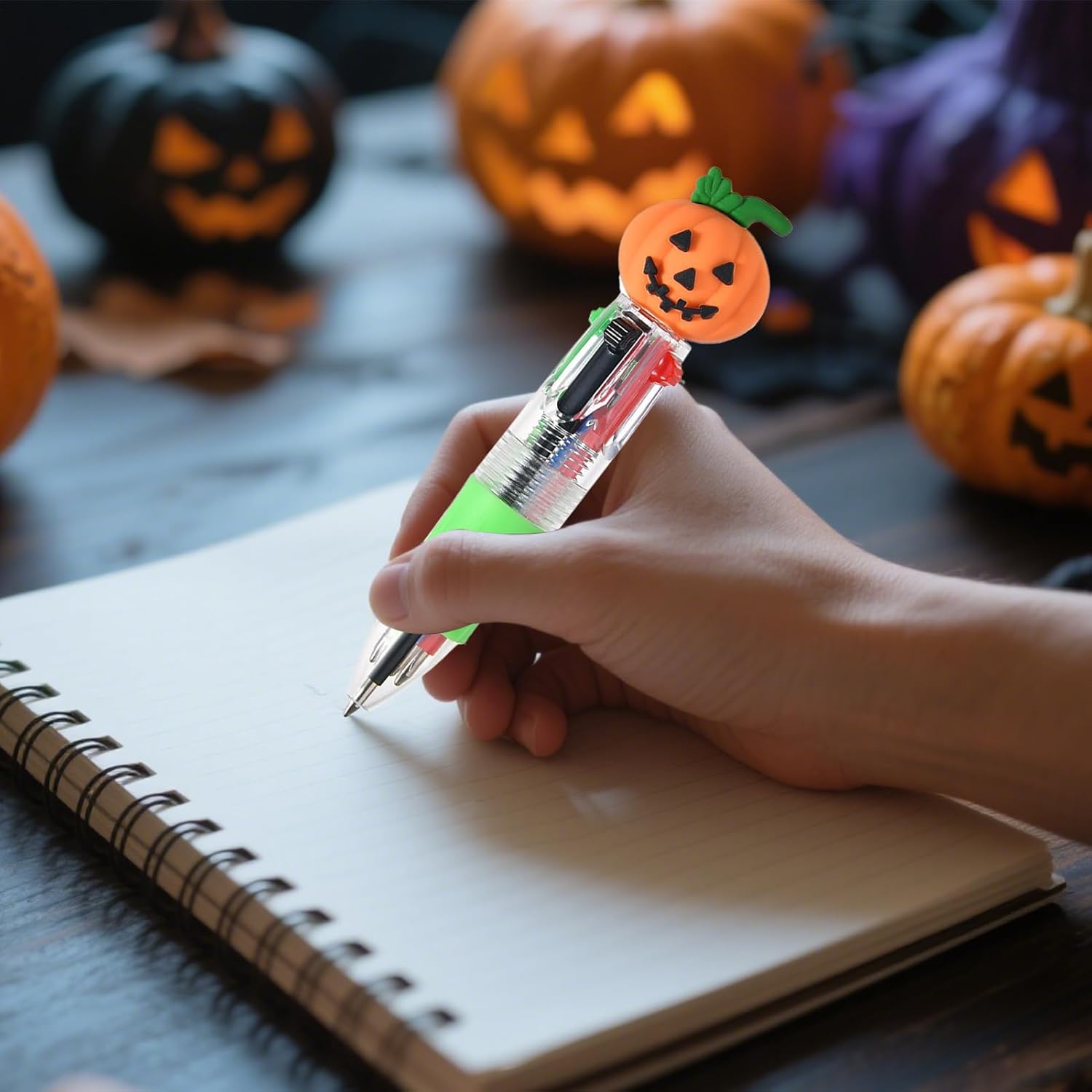 Prestazioni affidabili: il design resistente agli urti e alla pressione combinato con un guscio rinforzato consente transizioni di colore fluide e una lunga durata nonostante la manipolazione ripetuta. Penna creativa di Halloween: vivaci disegni di zucca e fantasmi in colori giocosi. Questa penna multicolore cattura l'atmosfera vacanziera, offrendo un regalo rinfrescante per chi ama le forniture creative. Ideale per disegnare e scrivere. Impugnatura antifatica: texture antiscivolo e design ergonomico adatti a garantire una corretta presa della penna, offrendo comfort e riduzione del disagio durante lunghi periodi di scrittura. Scelta significativa: perfetta come regalo, questa penna multicolore incarna un'attenzione sincera. Pensato per compleanni, eventi scolastici o qualsiasi occasione che meriti un ricordo elegante, il suo design raffinato riflette il pensiero delicato dietro il gesto del donare. Aiuto didattico: strumento di cancelleria che migliora l'efficienza dell'apprendimento attraverso la selezione integrata di 4 colori e l'uso intuitivo.