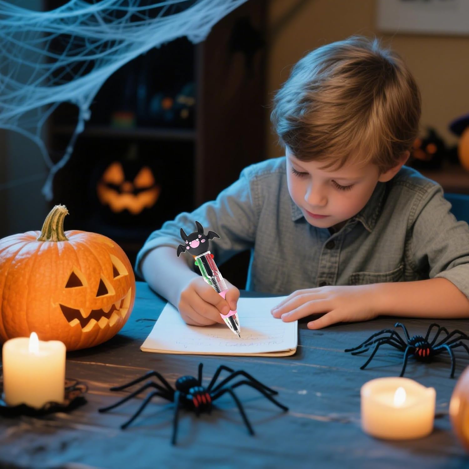 Design a tema Halloween: evidenziata da simpatici dettagli di zucca e fantasma in audaci colori giocosi, questa penna incarna la natura di Halloween, fornendo un'esperienza di scrittura gioiosa e un regalo ideale per i bambini che celebrano l'occasione Aiuto all'apprendimento migliorato: uno strumento di cancelleria multiuso che supporta sia la scrittura che il disegno, migliorando l'efficienza dell'apprendimento attraverso una funzionalità di selezione dei colori 4 in 1 fluida Impugnatura che riduce la fatica: la struttura antiscivolo e il design ergonomico a misura di bambino favoriscono una corretta presa della penna, offrendo comfort e riducendo il disagio dovuto alla scrittura prolungata Maggiore durata: l'involucro rinforzato della penna garantisce una lunga durata, resistente agli urti e alla pressione, per una commutazione uniforme del colore durante l'uso intenso, pur mantenendo prestazioni di precisione del meccanismo a molla Scelta regalo significativa: ideale per fare regali, questa penna multicolore funge da regalo caldo e significativo, perfetta per compleanni, eventi scolastici o qualsiasi occasione che richieda un elegante design regalo ricordo che riflette cura e premurosità