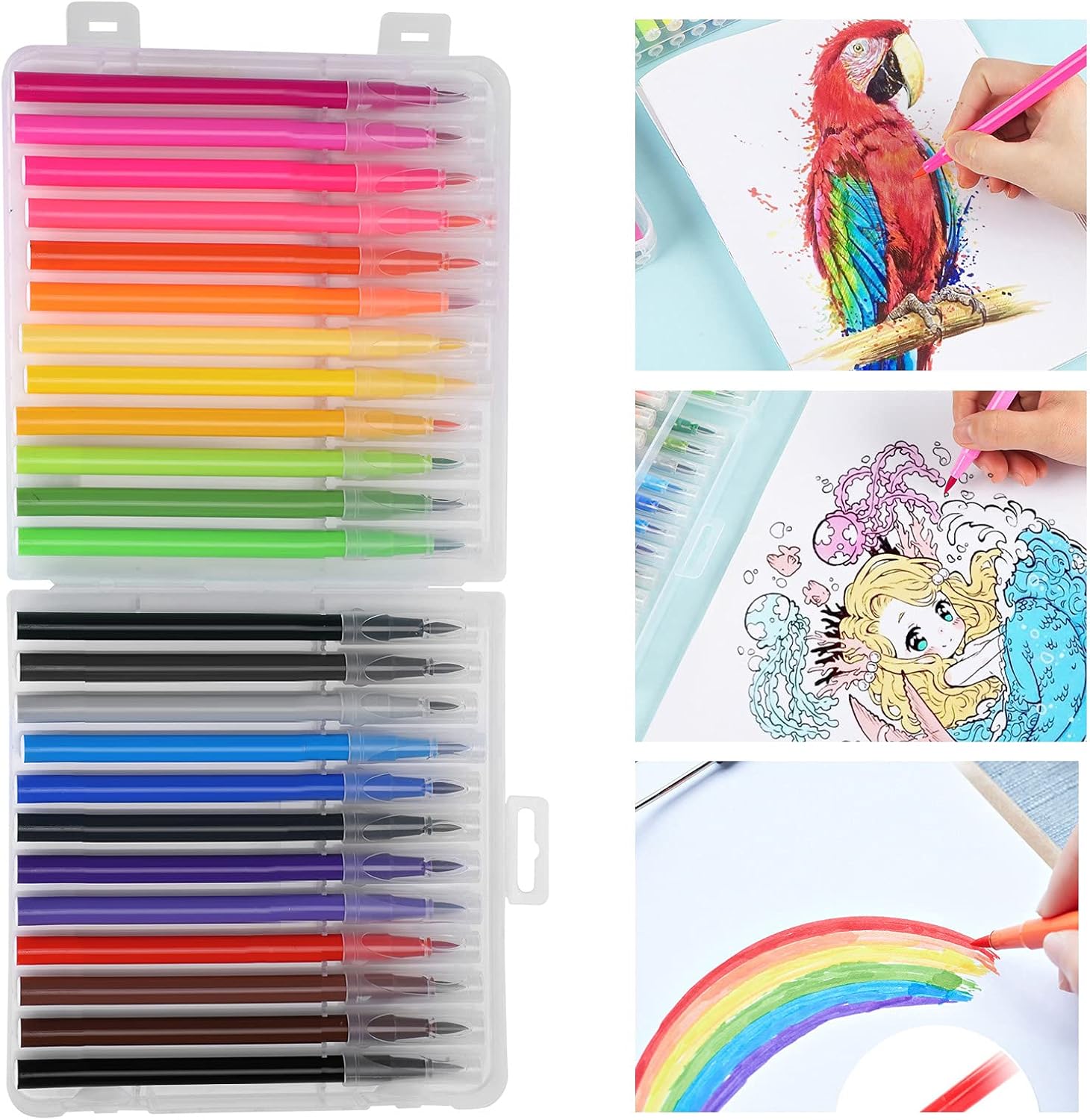 Sicuro e lavabili: queste penne ad acquerello sono strettamente non lavabili, rendendole ideali per l'uso da parte di bambini e adulti. L'inchiostro ha meno probabilità di terreno rispetto ai tradizionali set di vernici ad acquerello, garantendo un'esperienza di pittura più pulita e piacevole. Spolvera: la testa a penna ad acquerello a punta morbida ripristina la sua forma come un vero pennello, fornendo un'esperienza di pittura liscia. Il punto affusolato consente un controllo preciso di vari tratti di pennello spessi e sottili, consentendo di creare dettagli intricati con facilità. Applicazioni versatili: queste penne possono essere utilizzate per una vasta gamma di applicazioni, da dipinti ad acquerello e elegante calligrafia a illustrazioni complesse e decorazioni di finitura. Sono adatti a tutti i livelli di abilità, rendendoli un'ottima scelta sia per i principianti che per i professionisti. Assicenza rapida e portatile: le penne sono asciugate, compatte e portatili, permettendoti di portare la tua creatività in movimento. Producono un effetto di vernice senza perdere colore e vitalità, garantendo che le tue creazioni rimangano vibranti e di lunga durata. Colori vibranti: il tono unico di colore brillante di queste penne ad acquerello crea uno splendido effetto acquerello, dando vita alle tue opere d'arte. Con i colori assortiti tra cui scegliere, puoi lasciare che la tua immaginazione si scatena e crea bei pezzi che sicuramente impressiranno.