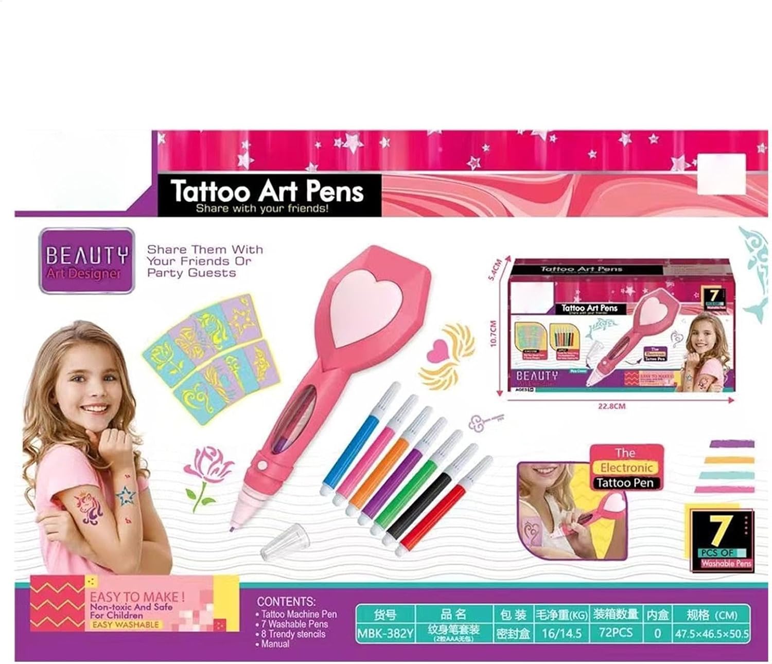 Facile divertimento artistico: queste penne giocattolo per body painting per bambini, adatte per decorare braccia, gambe e spalle, sono dotate di inchiostro lavabile e carte modello di pittura di varie forme, garantendo un facile divertimento artistico Ispira l'immaginazione: potenzia la creatività di tuo figlio con le mie penne per body art giocattolo per bambini. Il materiale ABS utilizzato per realizzare queste penne, con colori tenui, garantisce durata senza sbiadimento, irritazione della pelle o deformazione. Inoltre, sono facili da rimuovere in modo che tuo figlio possa esplorare varie forme d'arte in sicurezza Facile da trasportare: leggere e portatili, queste penne per body art sono facili da trasportare e utilizzare sempre e ovunque. Dai vita alla tua visione artistica, in spiaggia o al parco, con queste penne che stanno comodamente in tasca Bellissimo regalo: migliora la celebrazione di compleanni, Halloween, Natale e vacanze con il nostro set di penne per body art giocattolo per bambini, offrendo alle bambine un divertimento sicuro e lavabile nella creazione dei propri capolavori di body art Divertimento creativo in famiglia: le nostre penne per body art giocattolo per bambini sono lo strumento ideale per creare ricordi indimenticabili attraverso giochi interattivi genitore-figlio. Una scelta ideale per le attività familiari, questi recinti possono migliorare l'intimità e creare un'atmosfera familiare e divertente
