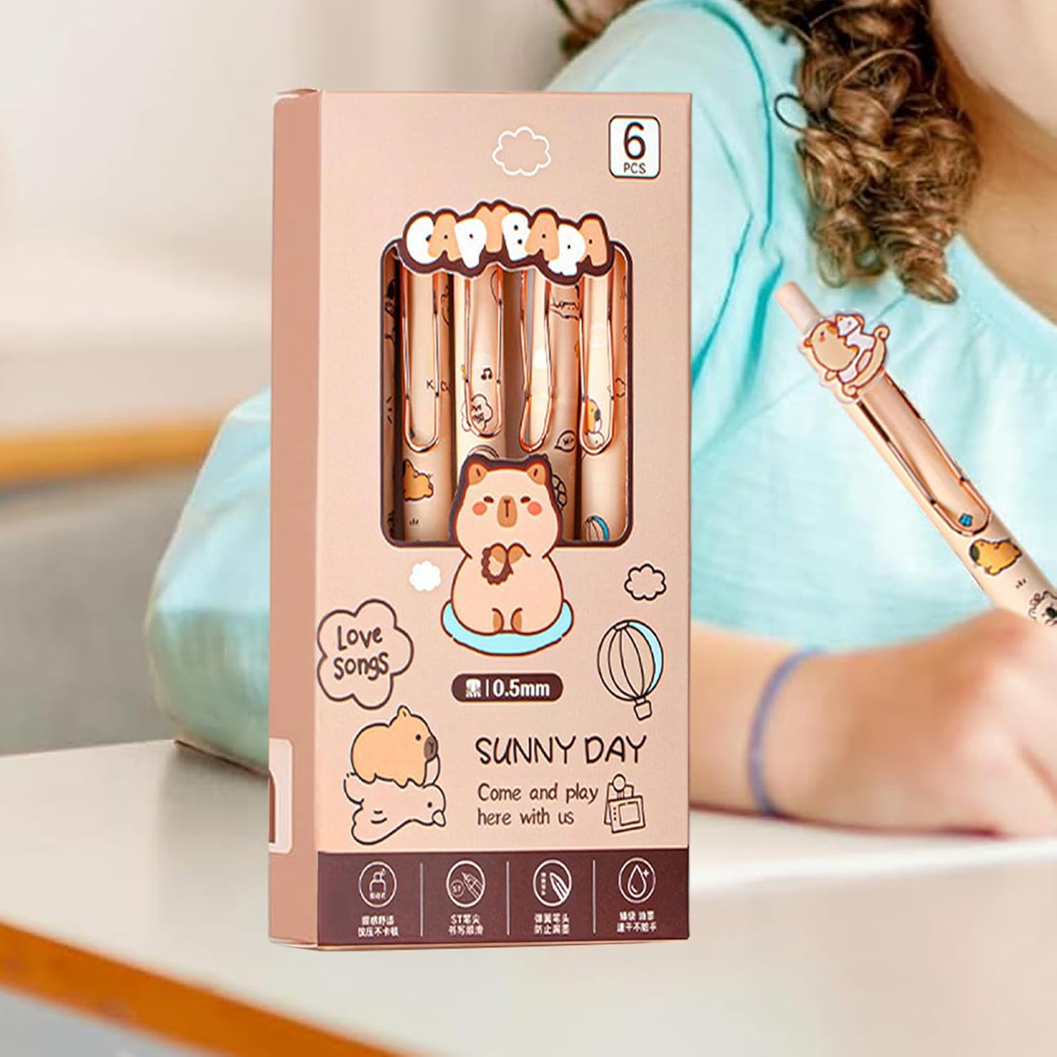 MULTIUSO - Perfetto per prendere appunti, scrivere su quaderni e firmare documenti ufficiali. Pratico formato portatile che entra facilmente in ogni tasca grazie alla sua forma compatta ed ergonomica. Inchiostro fluente: le penne Animal dal design morbido offrono un'esperienza di scrittura fluida ad ogni utilizzo con una punta da 0,5 mm con asciugatura istantanea e flusso di inchiostro senza sforzo. Motivi vivaci: combinazione di PP resistente e vivaci stampe ecologiche per prestazioni di scrittura di lunga durata, soddisfa le tue esigenze creative in modo sicuro e inodore. Controllo della pressione: fornisce una portabilità protetta grazie al meccanismo retrattile e al design sagomato anti-intoppo per le borse. La conservazione della punta a scatto consente una rimozione rapida e senza sforzo. Soluzione giocosa alla fatica: una funzione antistress con affascinanti motivi di capibara, questa penna offre un modo divertente per ridurre la tensione fornendo allo stesso tempo una presa comoda per esercitarsi nella scrittura facile e senza sforzo.