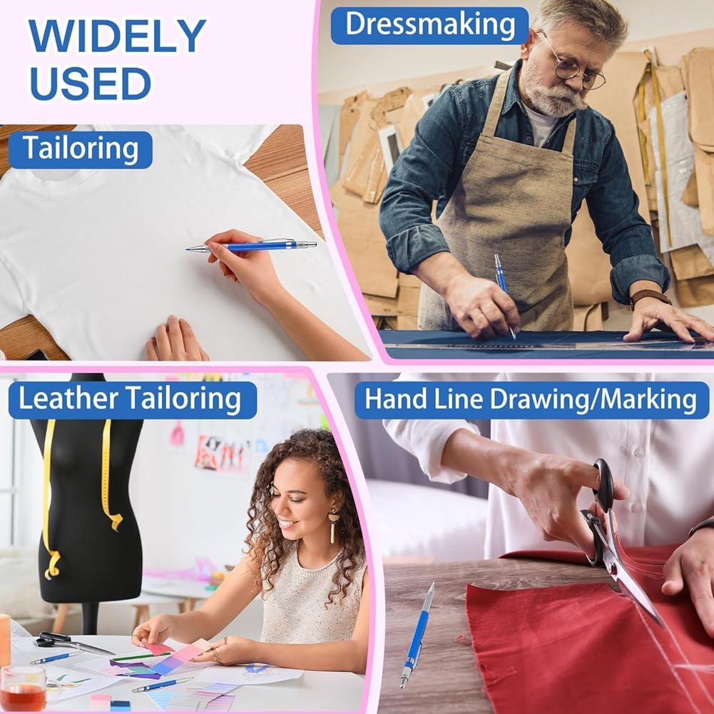 Le nostre ricariche in tessuto sono dotate di tappo di sicurezza e scatola in plastica. Il gesso ricaricabile può essere premuto per proteggere bene la punta della penna. Ciò protegge il prodotto quando non viene utilizzato e garantisce una marcatura precisa, movimenti fluidi e un disegno più fluido, chiaro e dritto. Questo gesso per tessuti è il tuo compagno perfetto quando cuci e disegna senza sforzo linee chiare e sottili su tessuti e altri materiali. Funziona bene per il buio e i vestiti. È anche molto utile quando si delinea il contorno dello stencil. Riceverai una penna per gesso da 2 mm e quattro mine per gesso in tessuto nei colori rosso, blu, giallo e . Più pratico del necessario, set ricco, sufficiente per molteplici usi. I nostri gessetti ricaricabili possono essere facilmente rimossi dalla maggior parte dei tessuti strofinandoli delicatamente con un panno umido o lavandoli. Proteggi il tuo tessuto dallo sporco, non lasciare segni sul tessuto durante la marcatura e nessuna macchia sulle mani. I nostri pennarelli per tessuti possono essere utilizzati sulla maggior parte dei capi di abbigliamento. Hanno colori chiari, sono facili da contrassegnare con una leggera pressione e sono adatti per la maggior parte dei tessuti come cotone, pelle, feltro, ecc. Usa i pennarelli a vernice da applicare ai tuoi progetti creativi.