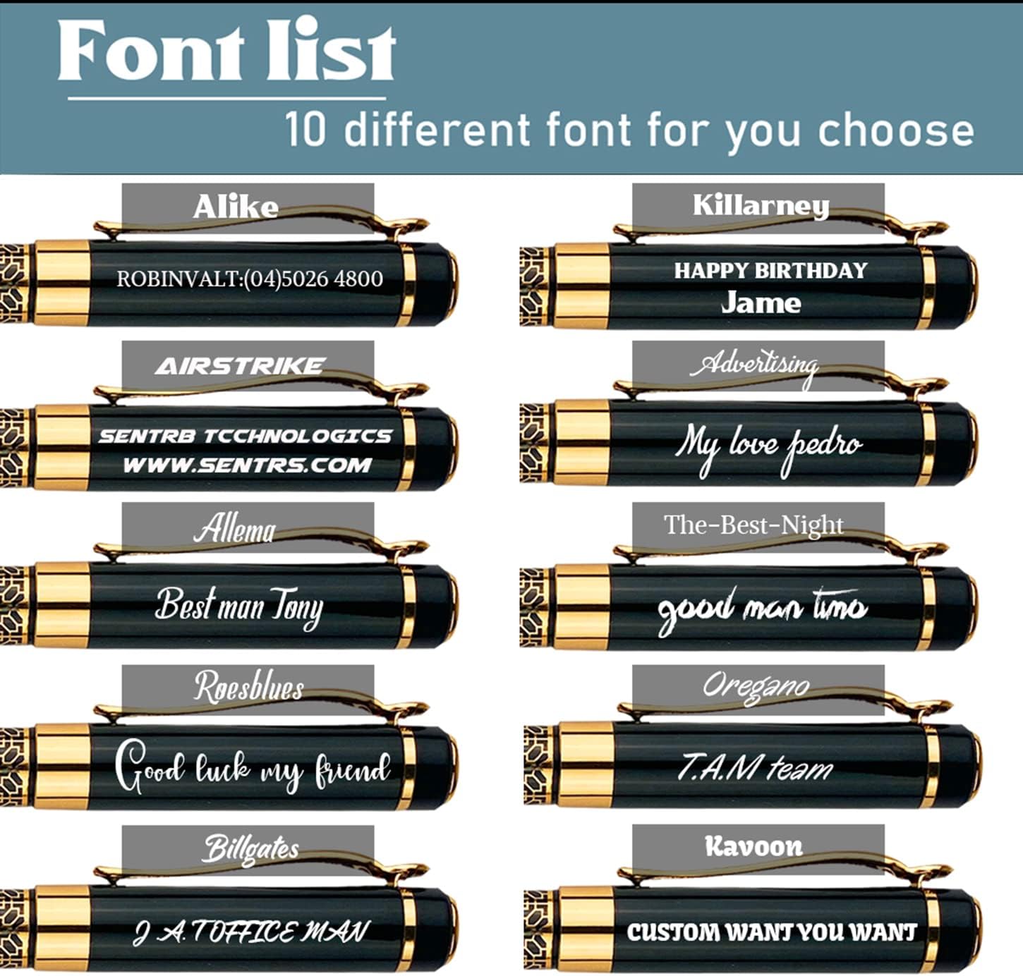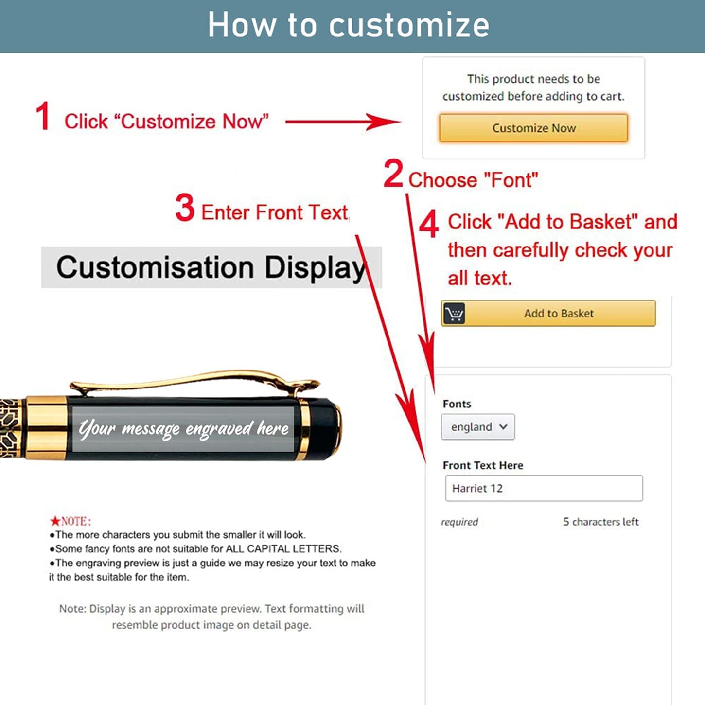 Penne per fontana moderne ★ Personalizziamo ogni ordine di penna in casa. Tutte le nostre penne sono garantite per scrivere bene e avere un bell'aspetto. Le penne personalizzate metalliche Legacy lasceranno sicuramente un"impressione duratura su coloro che le ricevono; tempo che è il nostro capo, famiglia, amici, marito o moglie. Ogni penna ha un'azione clip reattiva, un barilotto finito luminoso e inchiostro nero ultra liscio. Personalizzazione gratuita ★ Puoi avere fino a 50 caratteri (spazi inclusi) su ogni riga, fino a 2 linee personalizzate sono gratuite. usiamo la tecnologia dell'incisione laser per incidere il testo sulla penna senza sbiadire. Finché fai clic sull'opzione "Personalizza", puoi facilmente personalizzarla. Bellissimo aspetto, adatto per regalo. Regalo straordinario: questa penna è perfetta per ogni occasione, festa o evento. Fai un grande regalo accattivante per i tuoi colleghi, le tue infermiere, tua moglie, tua figlia, convenzioni e altro ancora Corpo in metallo di QUALITÀ Moderno, elegante e funzionale. Cartuccia di scrittura a inchiostro nero ultra liscia garantita con una struttura in metallo resistente, brillante e finitura colorata. Ottieni la nostra penna in metallo resistente con un prezzo economico. Servizio clienti★ Spediremo le penne entro un giorno lavorativo dalla ricezione dell'ordine. Il tempo di consegna è di 8 -14 giorni. Se la penna è danneggiata durante il trasporto o ha problemi di qualità. Ci contatti per favore. Risolveremo il problema per te il prima possibile finché non sarai soddisfatto.