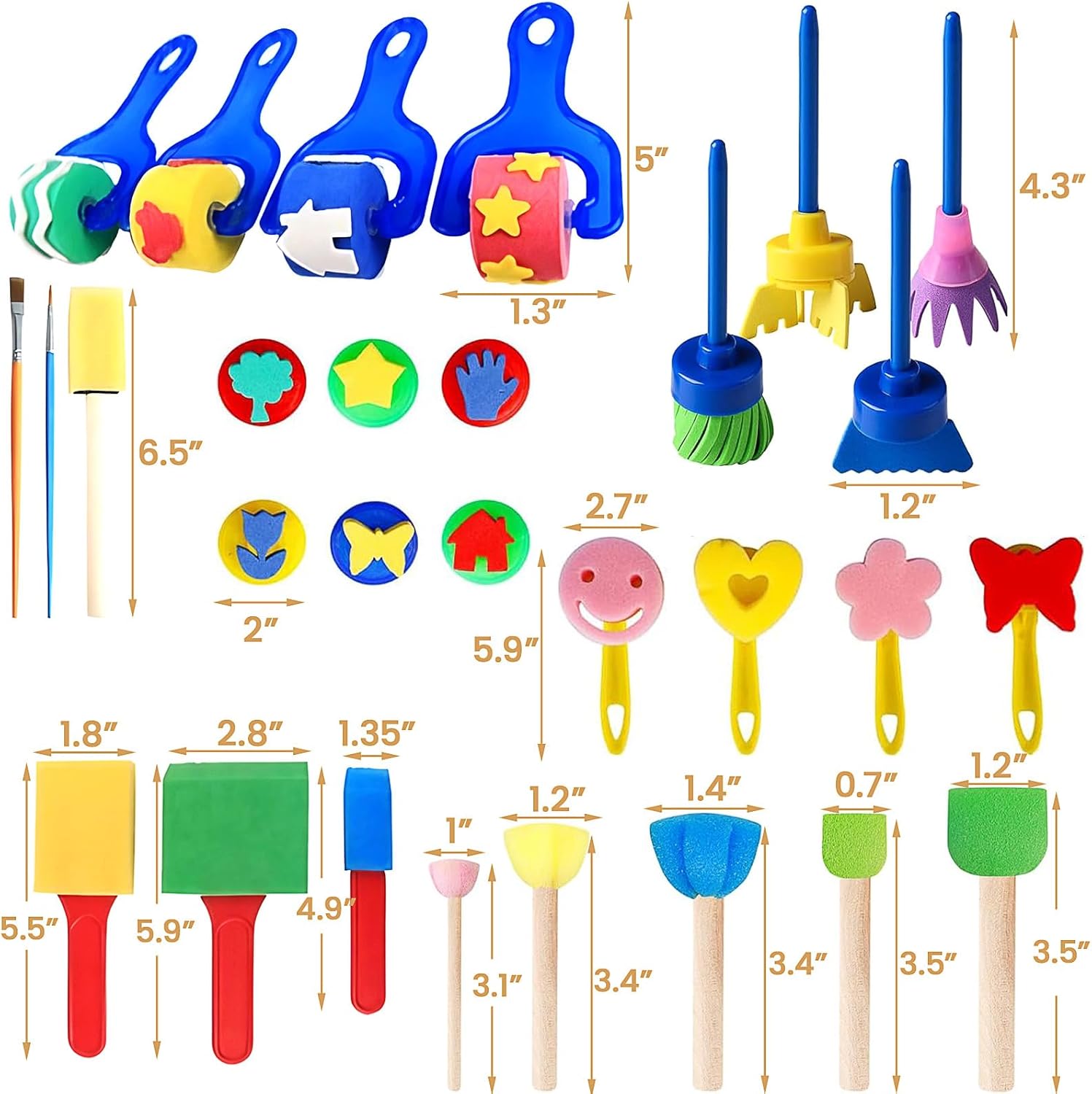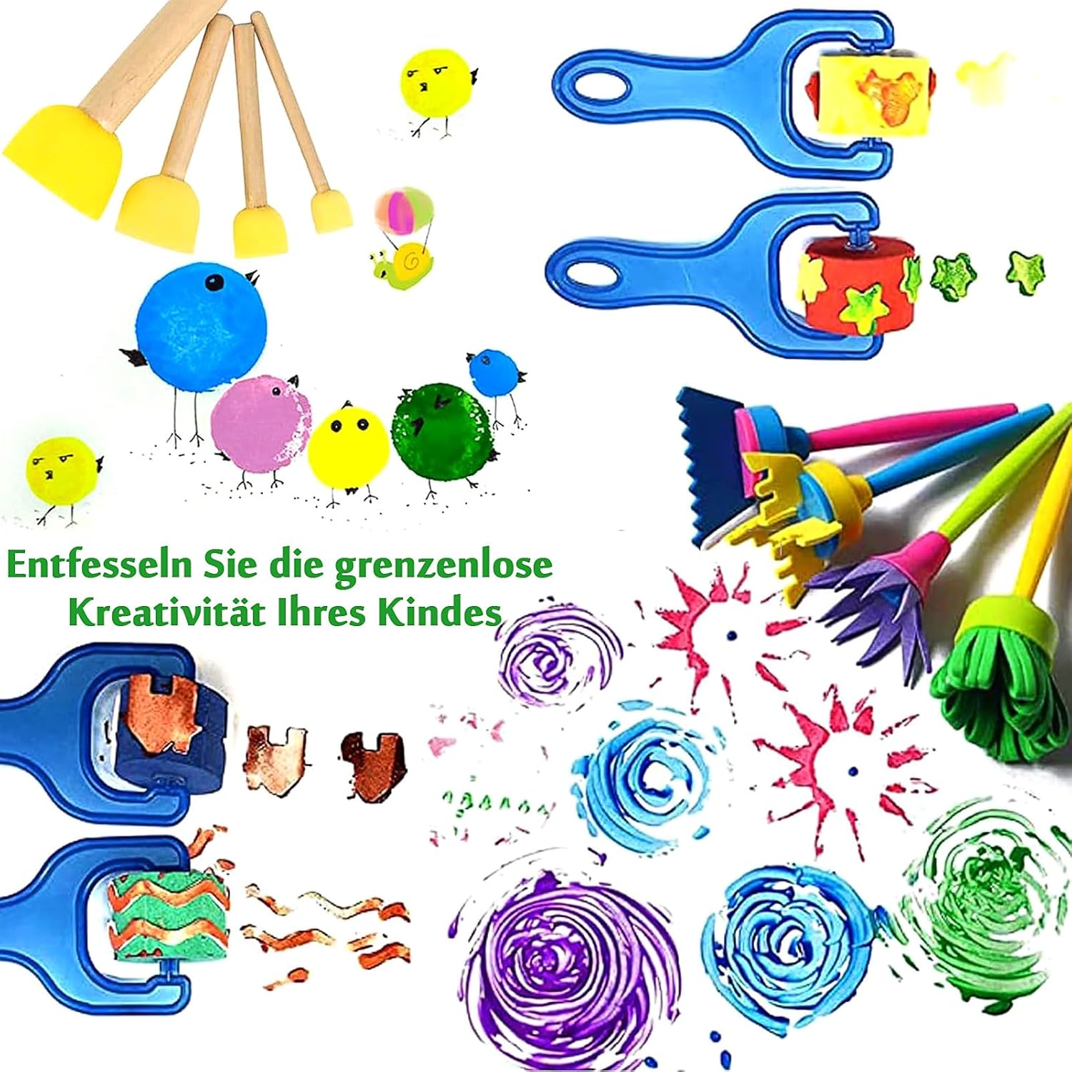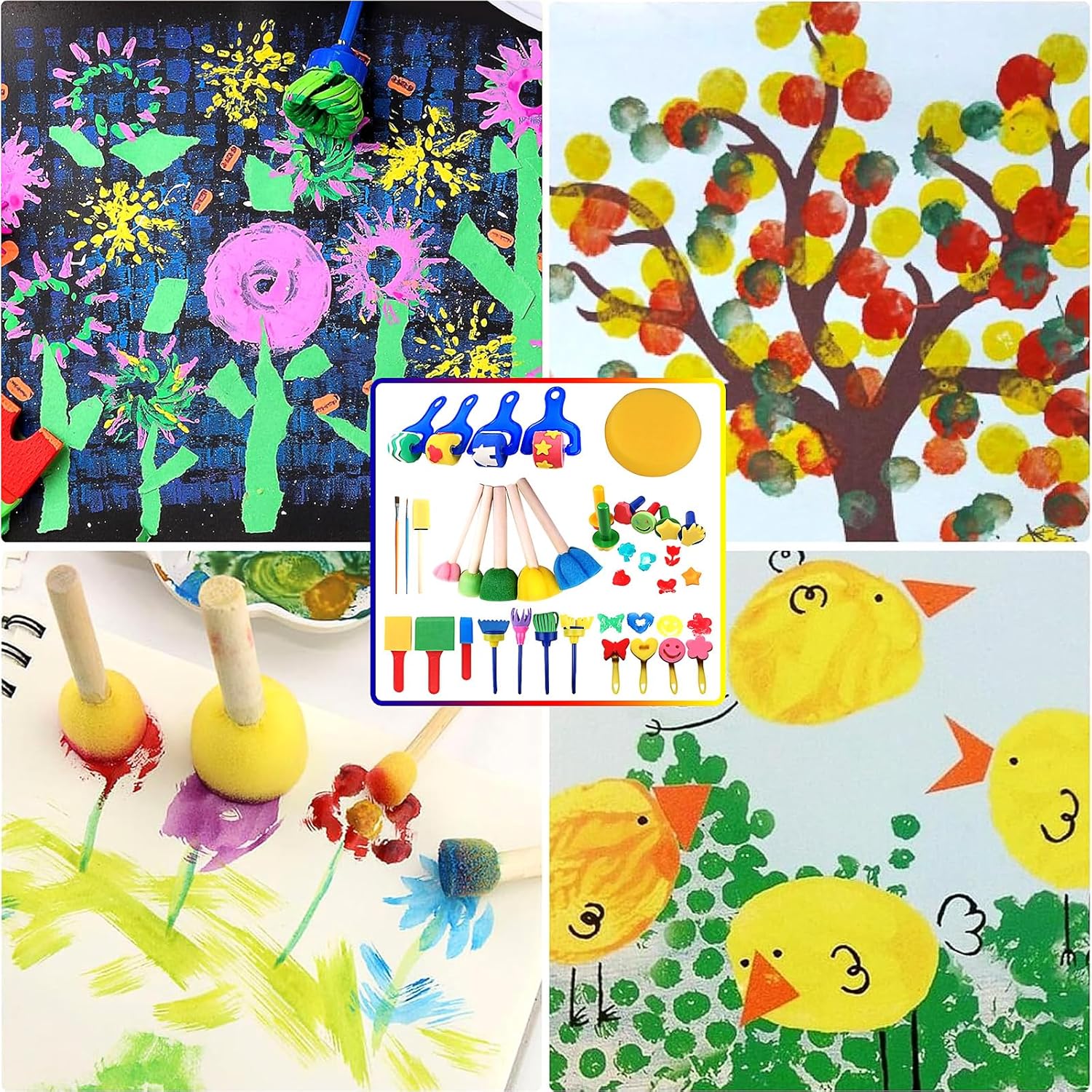 Materiale: i nostri strumenti di vernice sono realizzati in plastica e schiuma con manici, sono ben fatti e leggeri. I colori vibranti delle spugne di vernice ispireranno la creatività e l'immaginazione nel bambino mentre esplorano diverse tecniche di pittura. Pacchetto incluso: riceverai 30 pezzi di bambini dipinti e strumenti di disegno, perfetti per l'apprendimento precoce dei bambini e lo sviluppo creativo. Varietà di strumenti: strumenti di pittura da 30 pezzi, tra cui 10 pennelli a spugna da cartone animato, pennello da spugna a 4 rotoli, pennello a spugna a testa rotonda con manico in legno, 2 spazzole, pennello da 4 scopa, pennello a spugna a 4 quadrati e 1 spugna rotonda. I colori dei motivi di spugna sono casuali. Riutilizzabile e lavabile: i divertenti pennelli di pittura sono facilmente lavabili, puoi lavare le spugne e usare ancora e ancora. Set d'arte adatto adatto a bambini e bambini piccoli e possono anche essere utilizzati nelle attività di asilo nido a casa Ampia applicazione: i bambini possono usare questi strumenti per dipingere, disegnare, realizzare progetti artigianali fai -da -te e così via. Ci sarà un sacco di divertimento e i bambini saranno felici, il set di pennelli contribuirà a incoraggiare l'immaginazione e la creatività dei bambini
