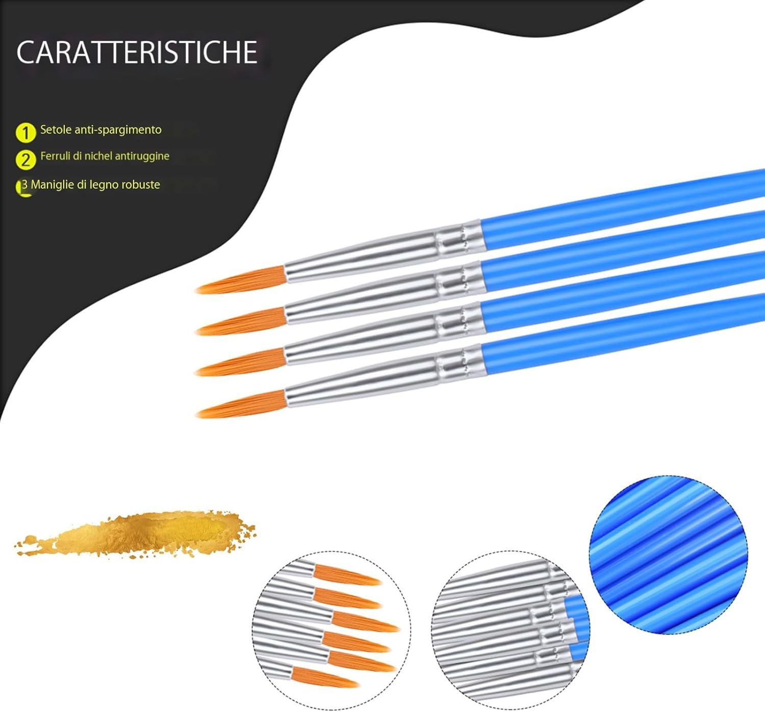 Ben fatto: realizzato con setole di nylon sintetiche, i nostri pennelli ad garantiscono un flusso di vernice liscio e opere d'arte che durano; Sono progettati per durare senza perdita di setola. Facilità d'uso: i nostri pennelli ad sono progettati con una maniglia di circa 170 mm/6.7 pollici, fornendo una presa comoda per un facile controllo e manovrabilità senza sforzo. per artisti, studenti e bambini. Regalo : un regalo per bambini, adolescenti e principianti, questi pennelli ad ti mostrano cura durante la giornata per bambini, Halloween e altre occasioni speciali. Promuove la crescita artistica e la creatività. Multi Applicazioni: queste pennelli ad sono ampiamente utili, adatti a corpo, pittura del viso, arte artigianale, ceramica e pittura rocciosa. Diventa creativo con facilità usando questi pennelli progettati per , olio, gouache e pittura acrilica. Conveniente da pulire: ottenere un'esperienza senza stress pulendo e rimodellando comodamente e rimodellando i pennelli ad con acqua calda insaponata dopo l'uso. Quindi, conservare verticalmente la testa per una manutenzione senza problemi.