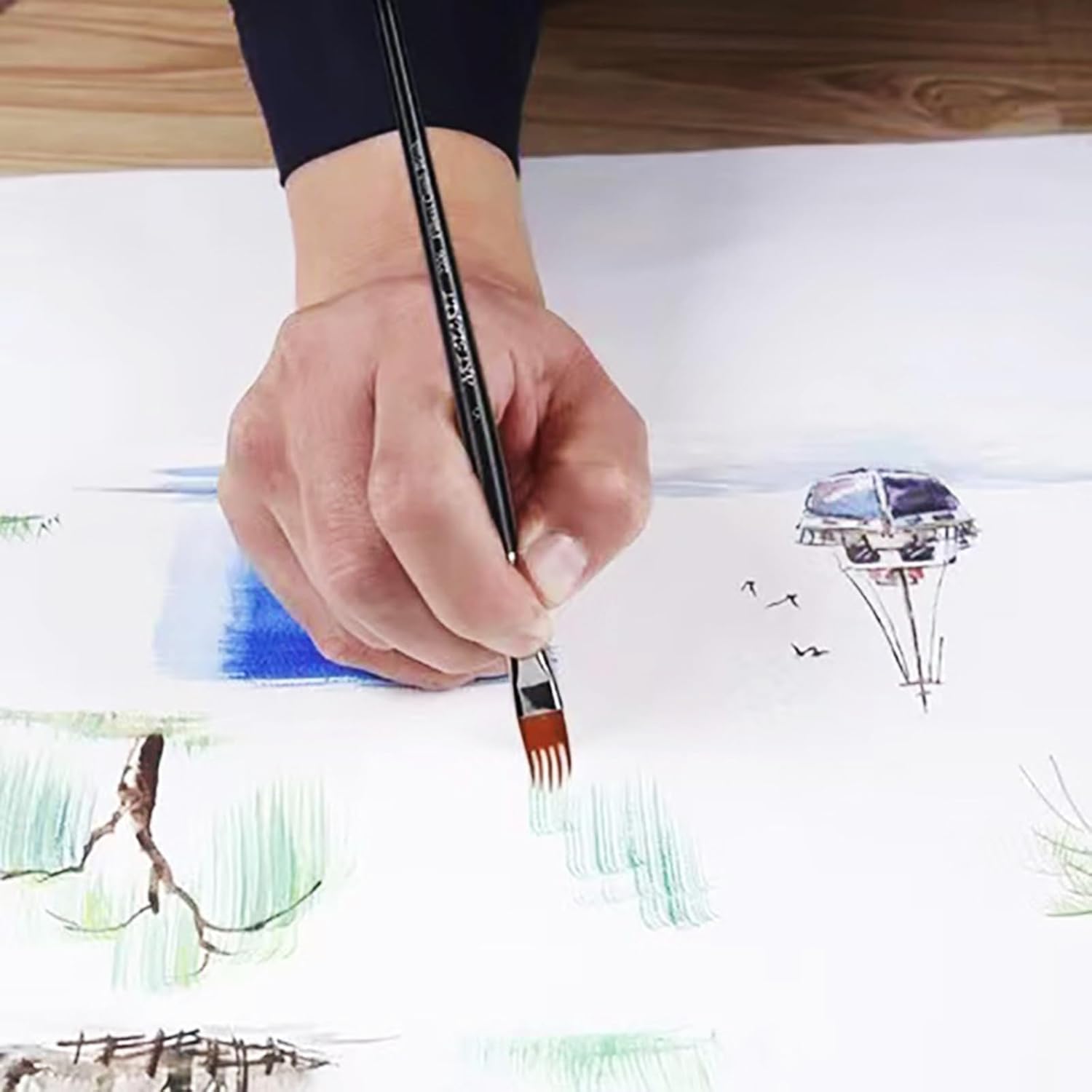 Le setole asciugatura rapida mantengono la forma dopo ripetuti lavaggi, garantendo lunga durata per la pratica artistica quotidiana Adatto per artisti, studenti e hobbisti specializzati nella pittura con inchiostri tradizionali o nelle moderne opere d'arte acquerello che richiedono uno strumento pittura professionale e multifunzionale Crea senza sforzo paesaggi montani a strati, dettagli pittura con inchiostro cinese, pittura paesaggi, miscele e texture delicate in ambienti studio o progetti schizzi all'aperto design professionale della testina piatta consente tratti multiuso per dettagli intricati e lavaggi ampi, ottimo per pennelli da acquerello e tecniche pittura paesaggistica cinese Realizzato con setole sintetiche distribuzione uniforme dei pigmenti e impugnatura ergonomica antiscivolo per ridurre minimo l'affaticamento durante l'uso prolungato
